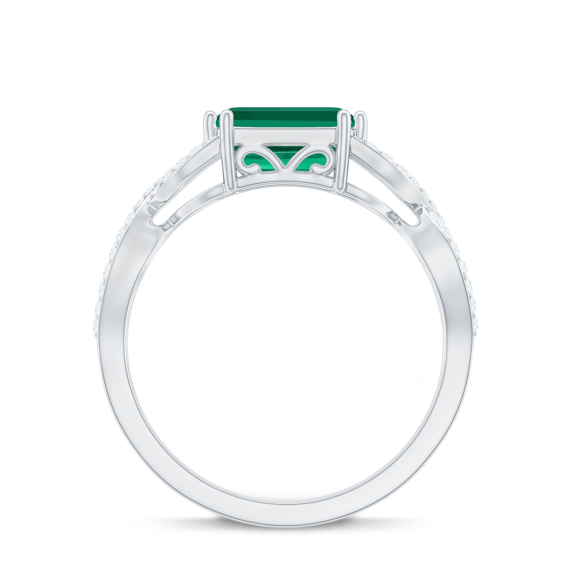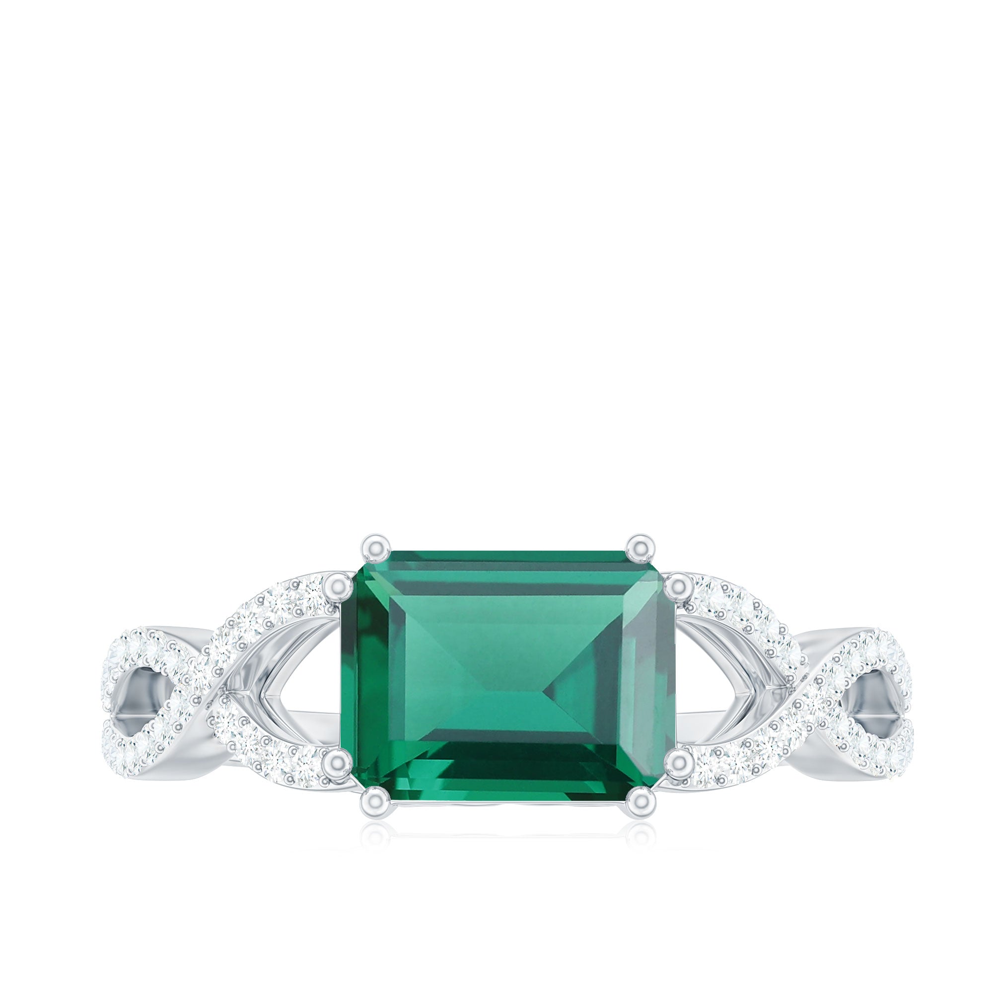 East West Style Lab Grown Emerald Cut Emerald Engagement Ring with Diamond