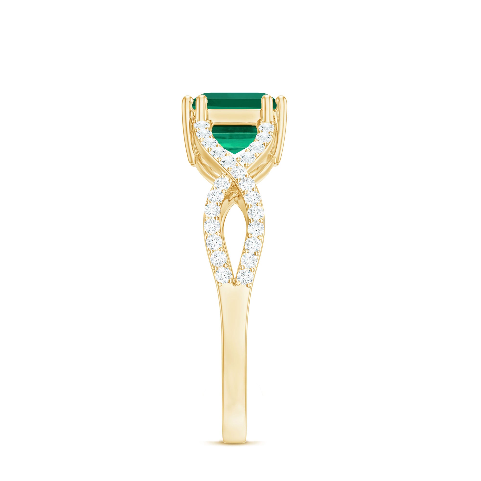 Stand out from the ordinary with this East West Engagement Ring, a modern take on timeless elegance, perfect for your lady love. The striking 6X8 mm Emerald Cut Lab Created Emerald is set horizontally in Double Prong Setting in an East-West Style, giving the ring a contemporary and bold look while showcasing the rich green hue of Lab Emerald. The innovative Crossover Shank wraps gracefully around the center stone, symbolizing two paths merging into one. Adorned with dazzling HI-SI Diamond stones along the shank, it adds extra sparkle and highlights the natural brilliance of AAAA Quality Lab Emerald, creating a sophisticated contrast between vibrant color and shimmering light. This Emerald Cut Engagement Ring is designed for those who appreciate unique style and meaningful symbolism. Its sleek and elegant design offers a fresh alternative to traditional engagement ring, making this Crossover Ring perfect for a modern proposal or a special gift that stands apart. Available in multiple ring sizes and carefully presented in a Jewelry Box, this Designer Engagement Ring is ready to celebrate your love story, bold, beautiful and destined to last a lifetime.