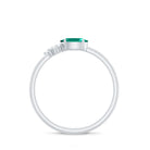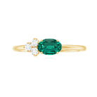 East West Style Oval Lab Grown Emerald Promise Ring with Diamond Trio
