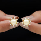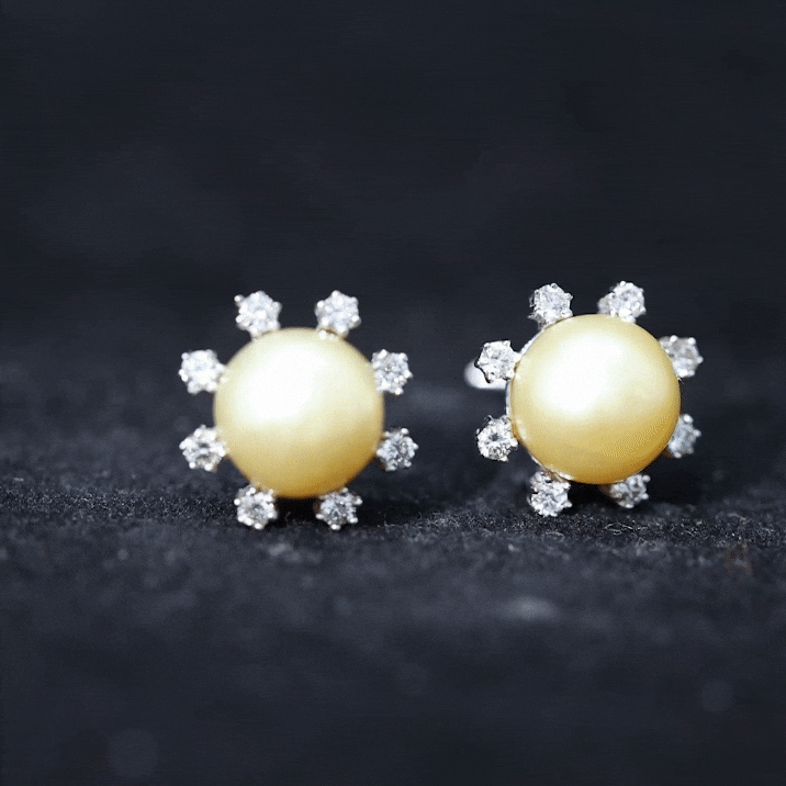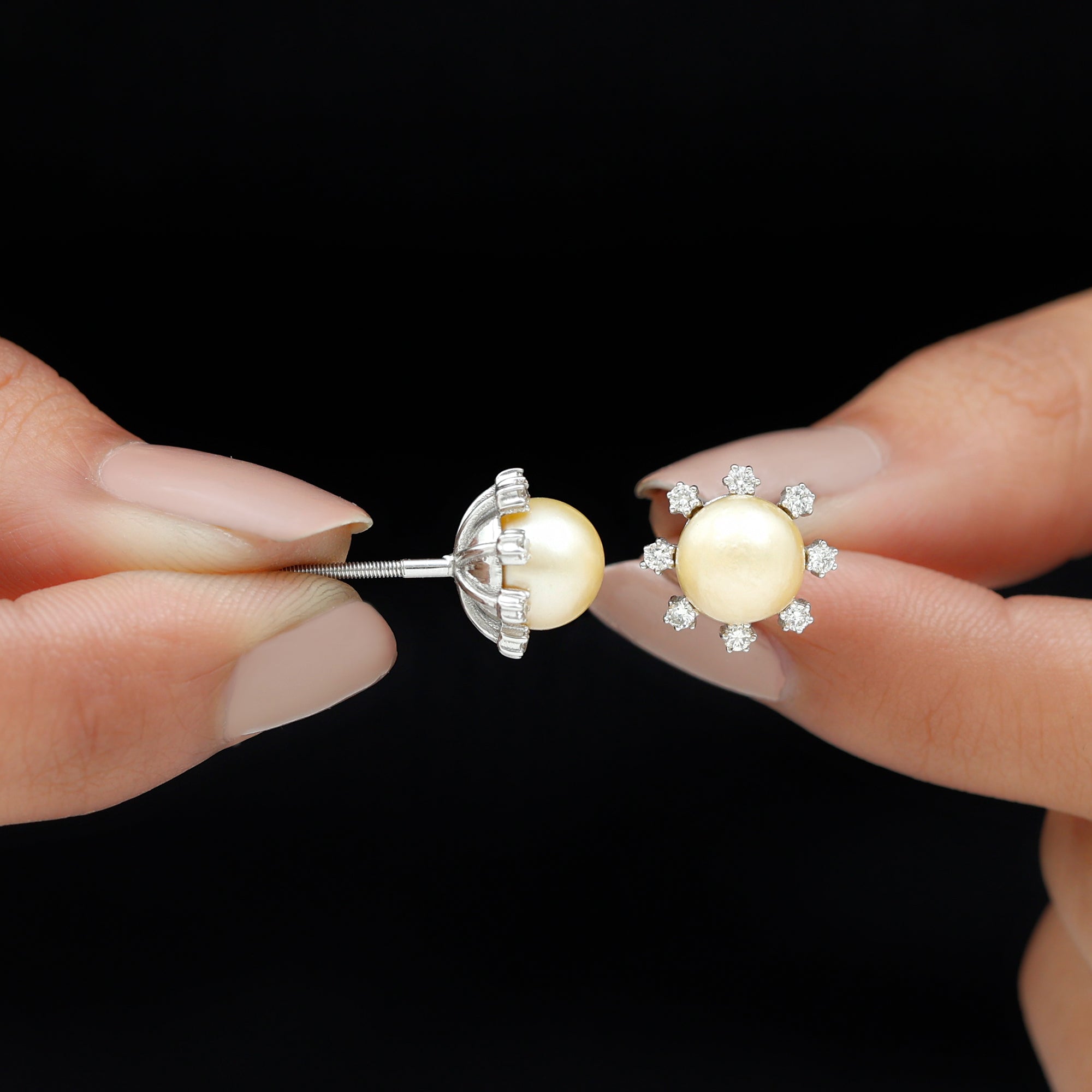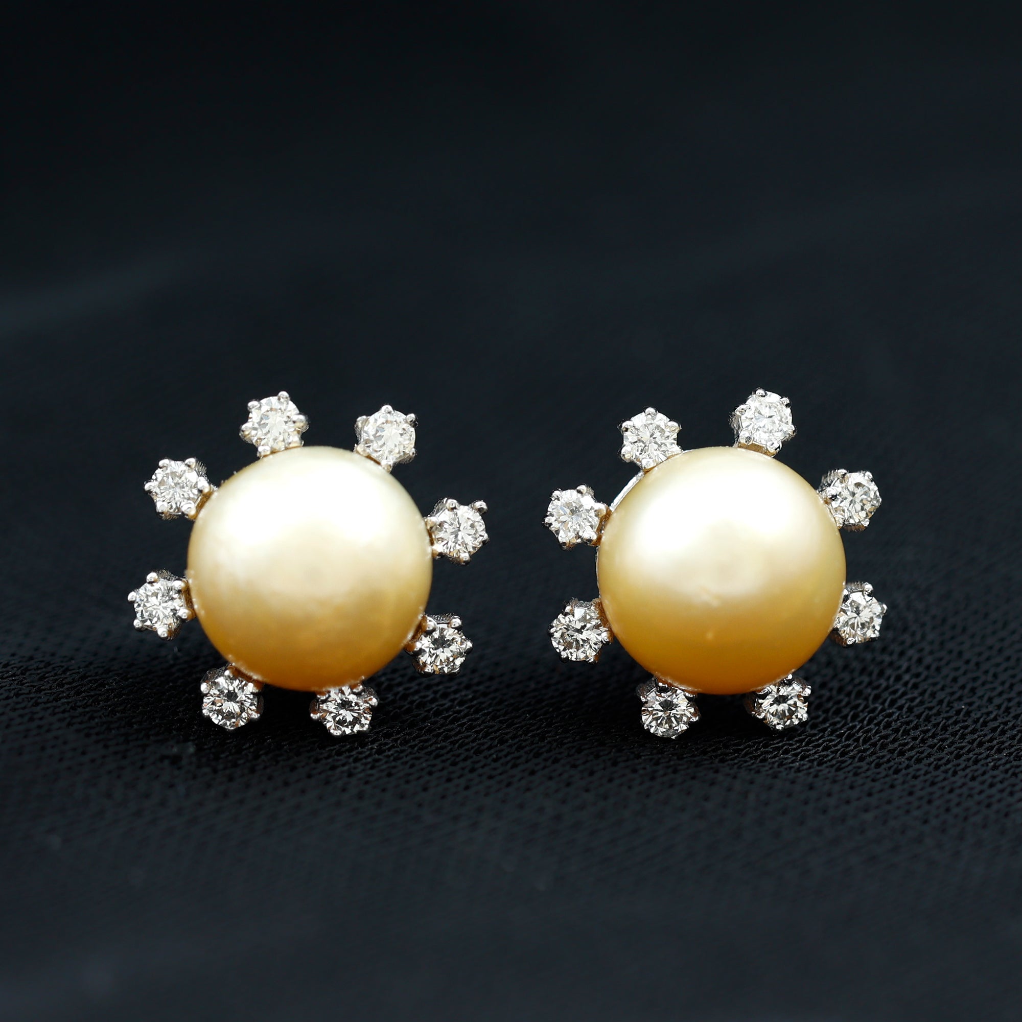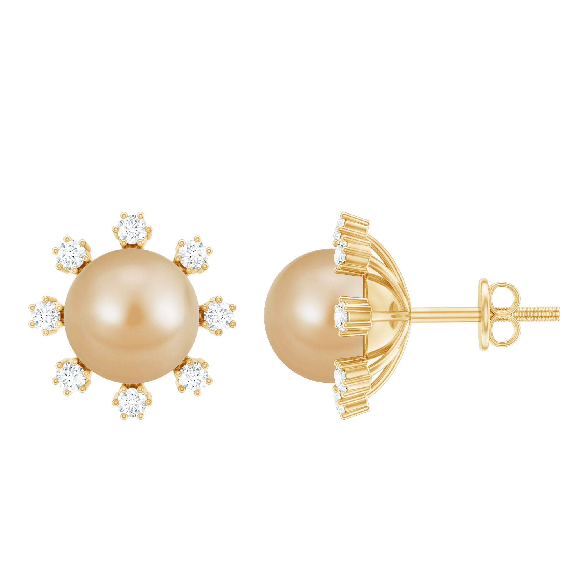 Elegant Floral Inspired South Sea Pearl Stud Earrings with Diamond