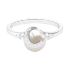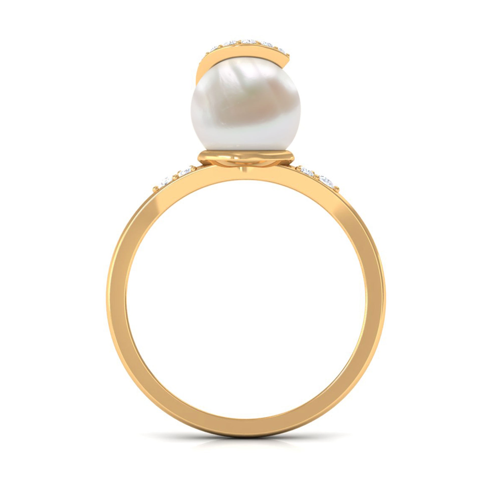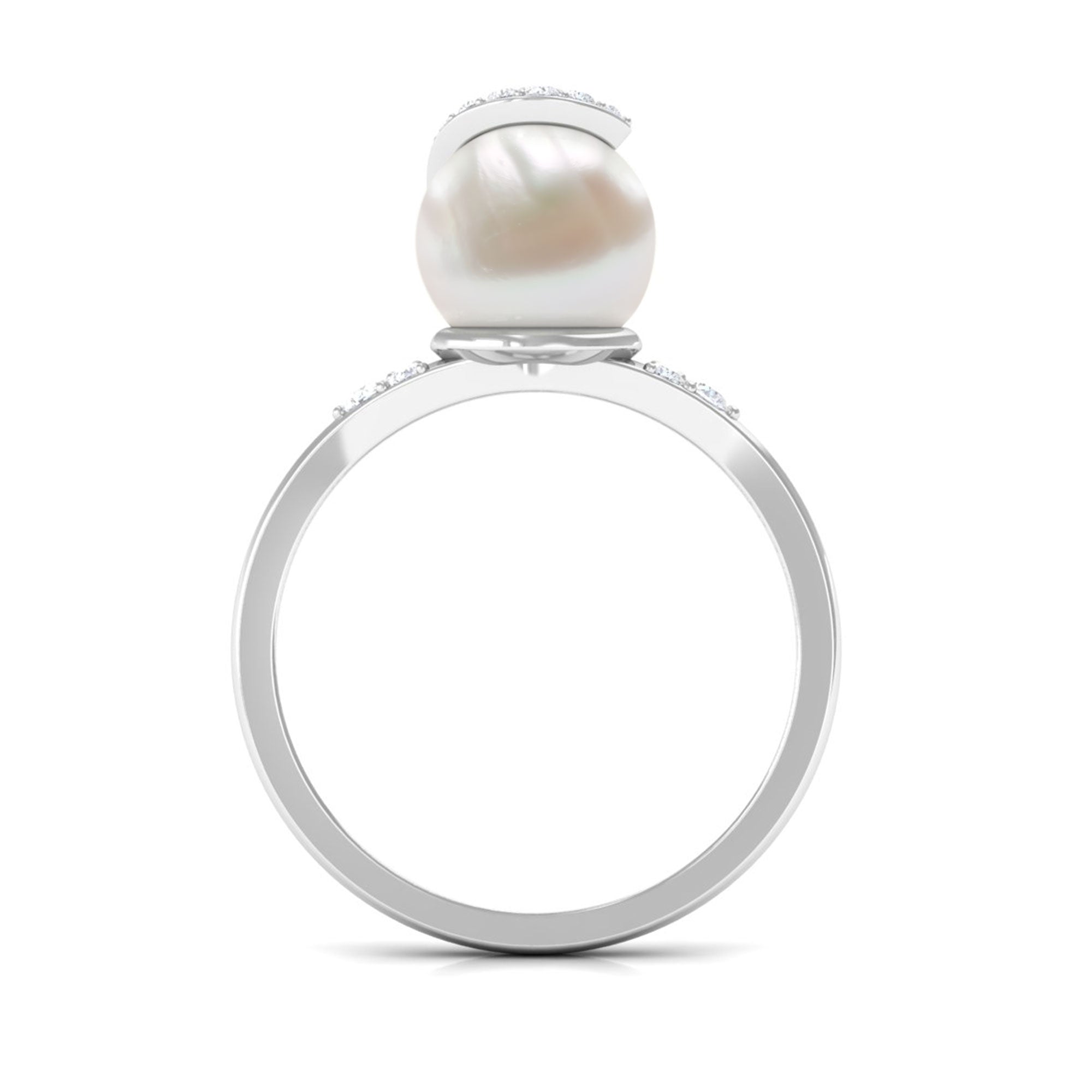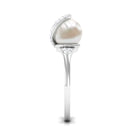 Elegant Freshwater Pearl Solitaire Ring with Diamond Trio