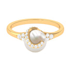 A classic piece with timeless appeal this Pearl Solitaire Engagement Ring is adorned with the brilliant Round Shape Freshwater Pearl with Round Diamond set on Trio and on above the pearl. This Freshwater Pearl Ring is crafted in Gold. This charming White Freshwater Pearl and Diamond Ring make a trendy and elegant choice for your big day.