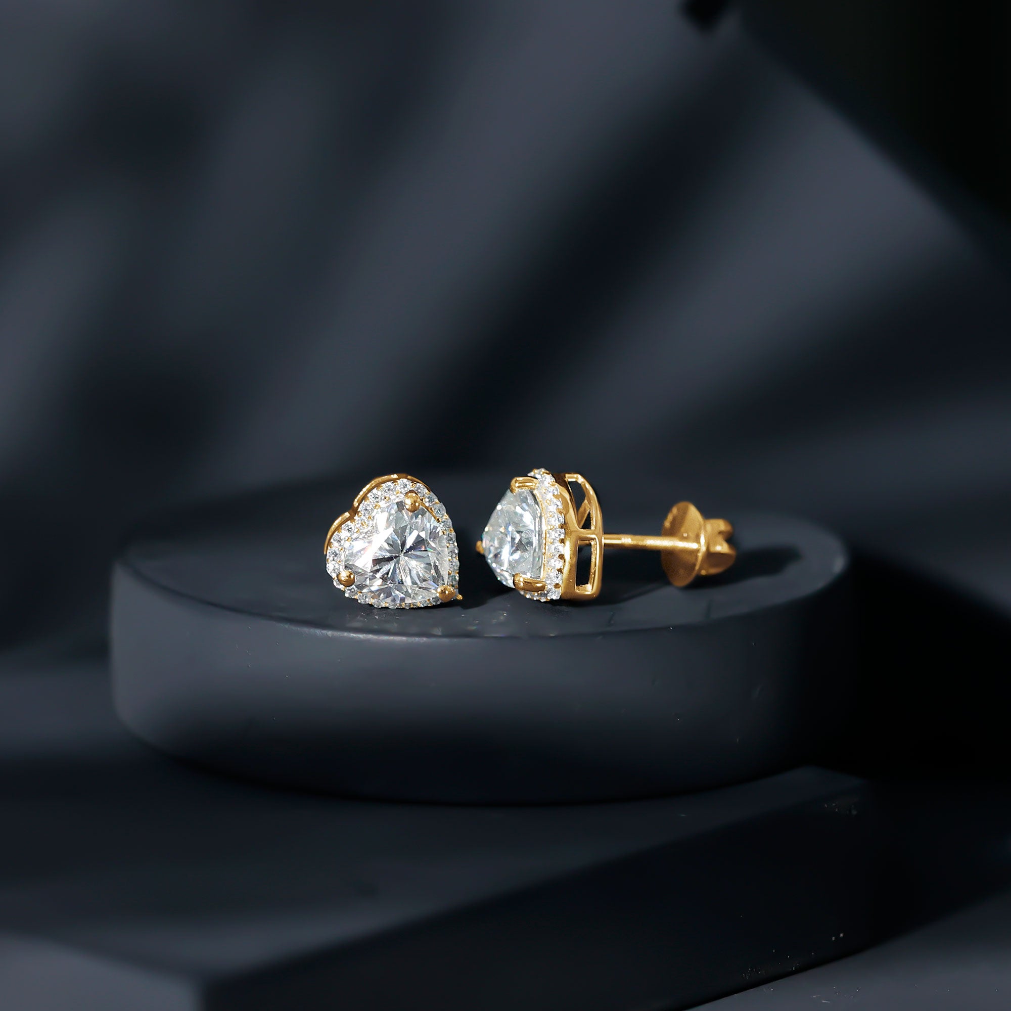 Certified Moissanite Heart Stud Earrings with Halo