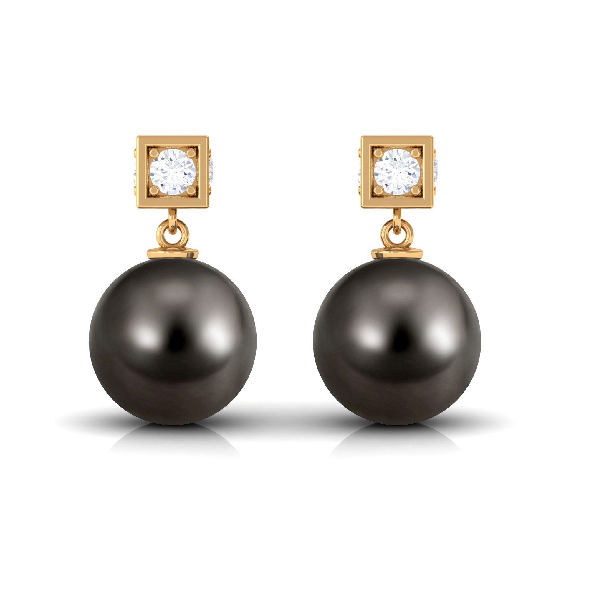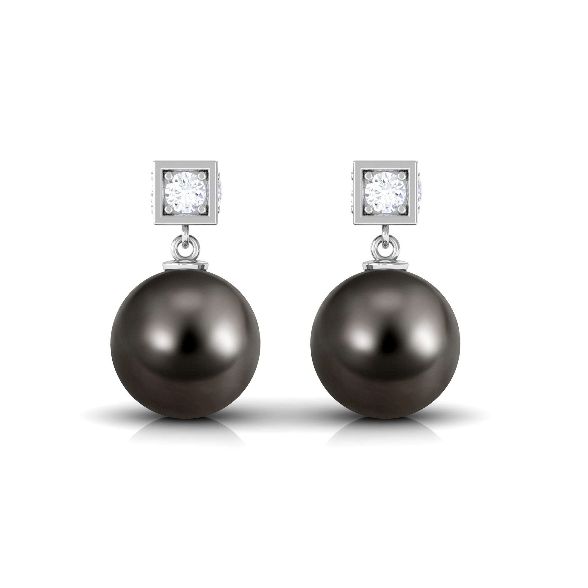 The Tahitian Pearl Drop Earrings are a timeless keepsake that youll be finding reasons to wear again and again. Showcasing Round Shape Tahitian Pearl attached to a square frame dazzling with Round Shape Diamond. Get these Pearl Dangle Earrings for your loved one as they will add sparkle to all her favorite looks.