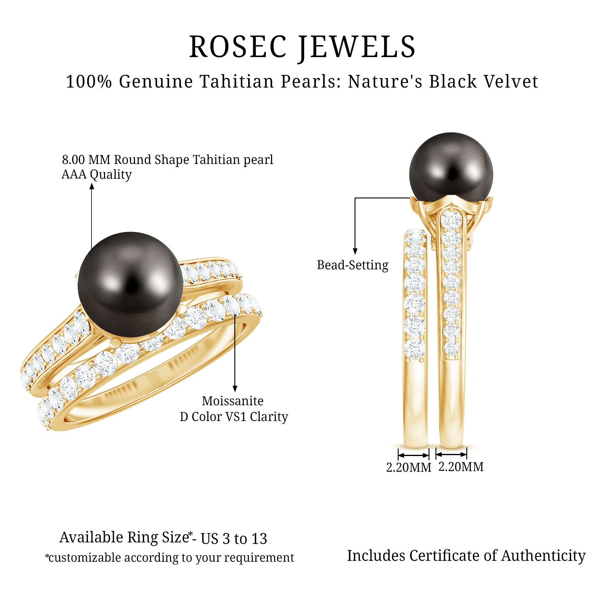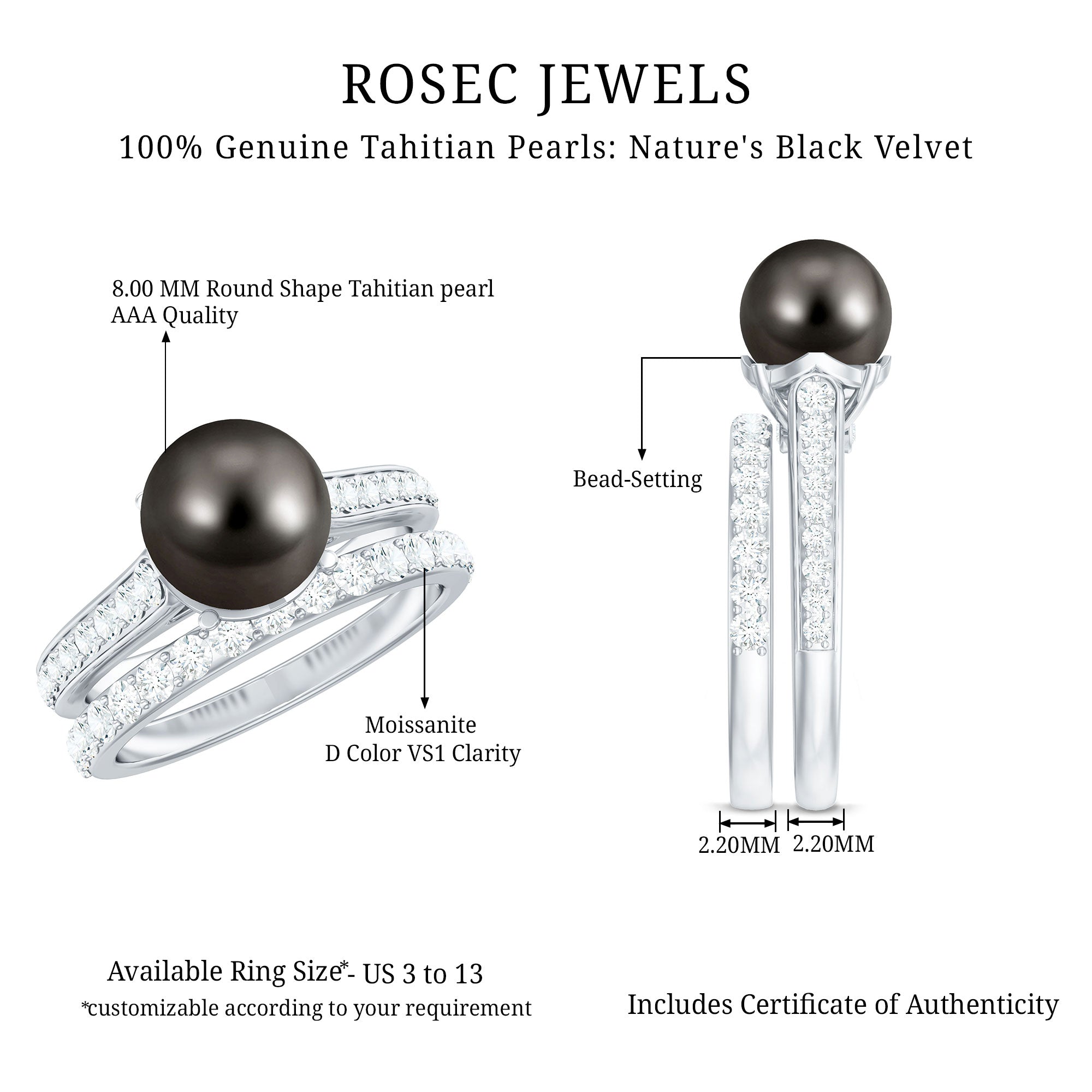 Elegant Wedding Ring Set with 9.75 CT Tahitian Pearl and Moissanite