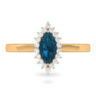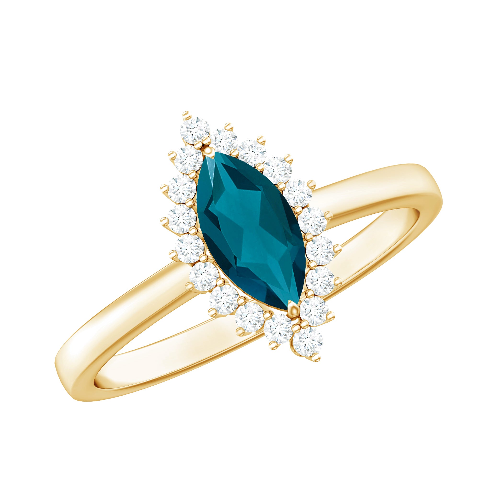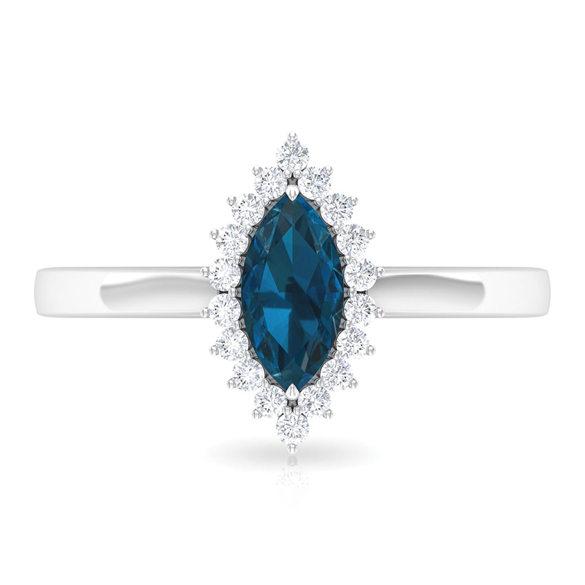 Elongated Marquise Blue Topaz Engagement Ring with Diamond Halo