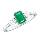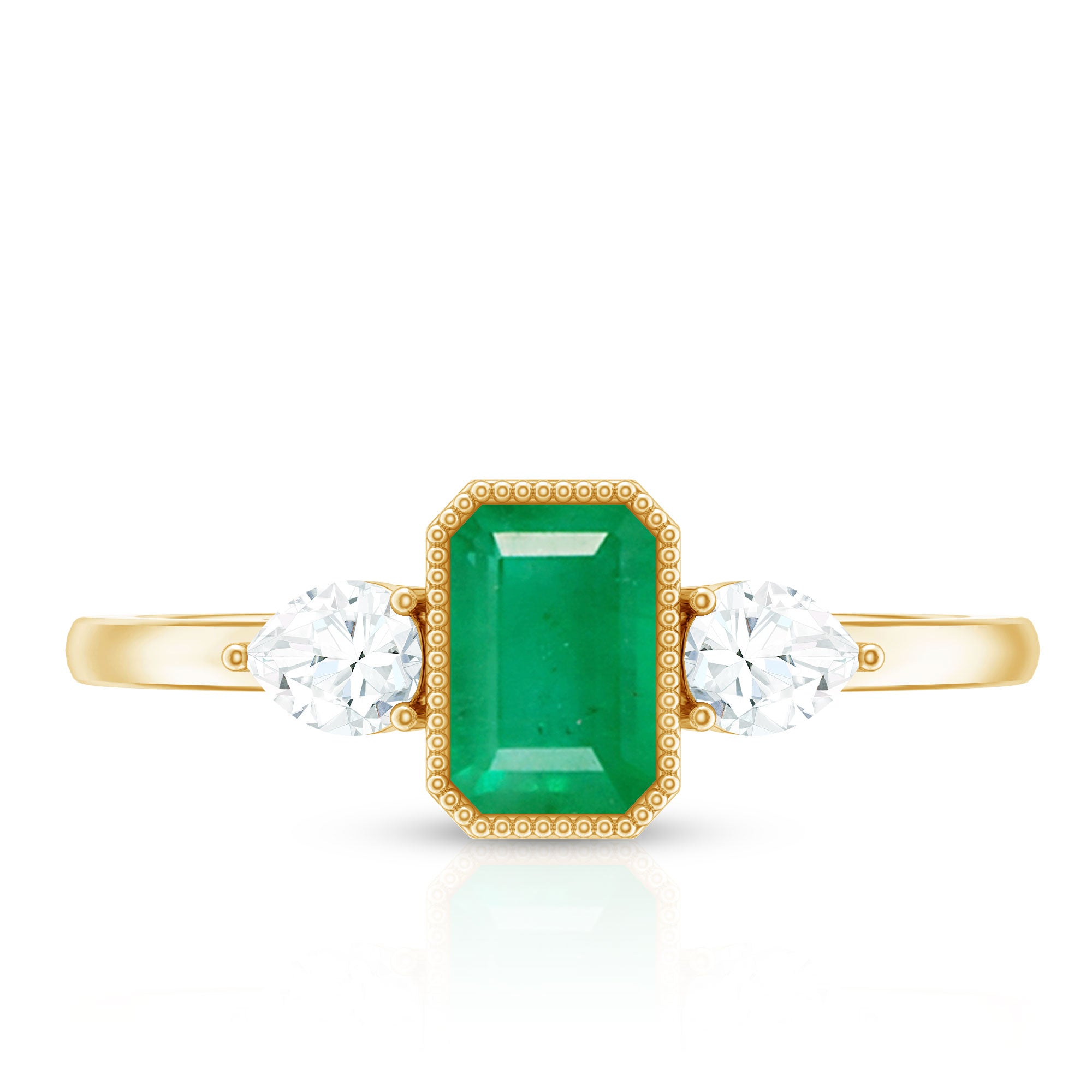 This gorgeous Emerald Engagement Ring features a astonishing 4x6mm emerald cut emerald as its centerpiece. The emerald is elegantly set in a classic yet bezel setting, with breathtaking diamonds adorning the band. This Emerald and Diamond Ring exudate worldliness and timeless beauty, making it the perfect choice for someone who appreciates trendy designs. The rich green hue of the emerald symbolizes love, renewal and growth, making it an ideal choice for an engagement ring or a commitment ring. Verdant hue of the emerald is spotlight by sparkling pear shape Diamond accents, establishing a striking contrast and enhancing this outstanding pieces appeal. This Bezel Engagement ring, which was painstakingly designed and beautifully crafted, is the ideal option for anyone looking for a stylish and one-of-a-kind piece of jewelry that commemorates their love in a very special way. This Emerald Cut Engagement Ring will be treasured for a lifetime due to its timeless yet contemporary charm.