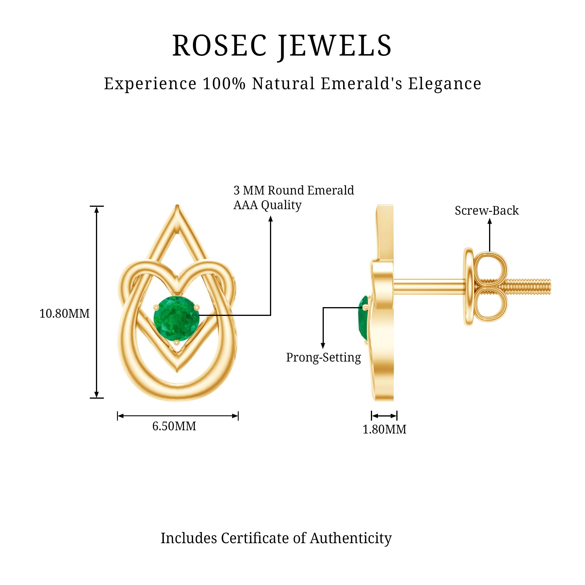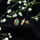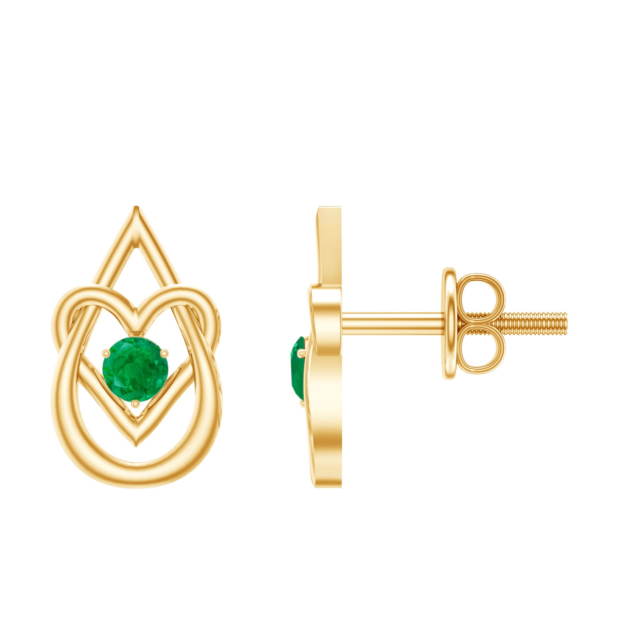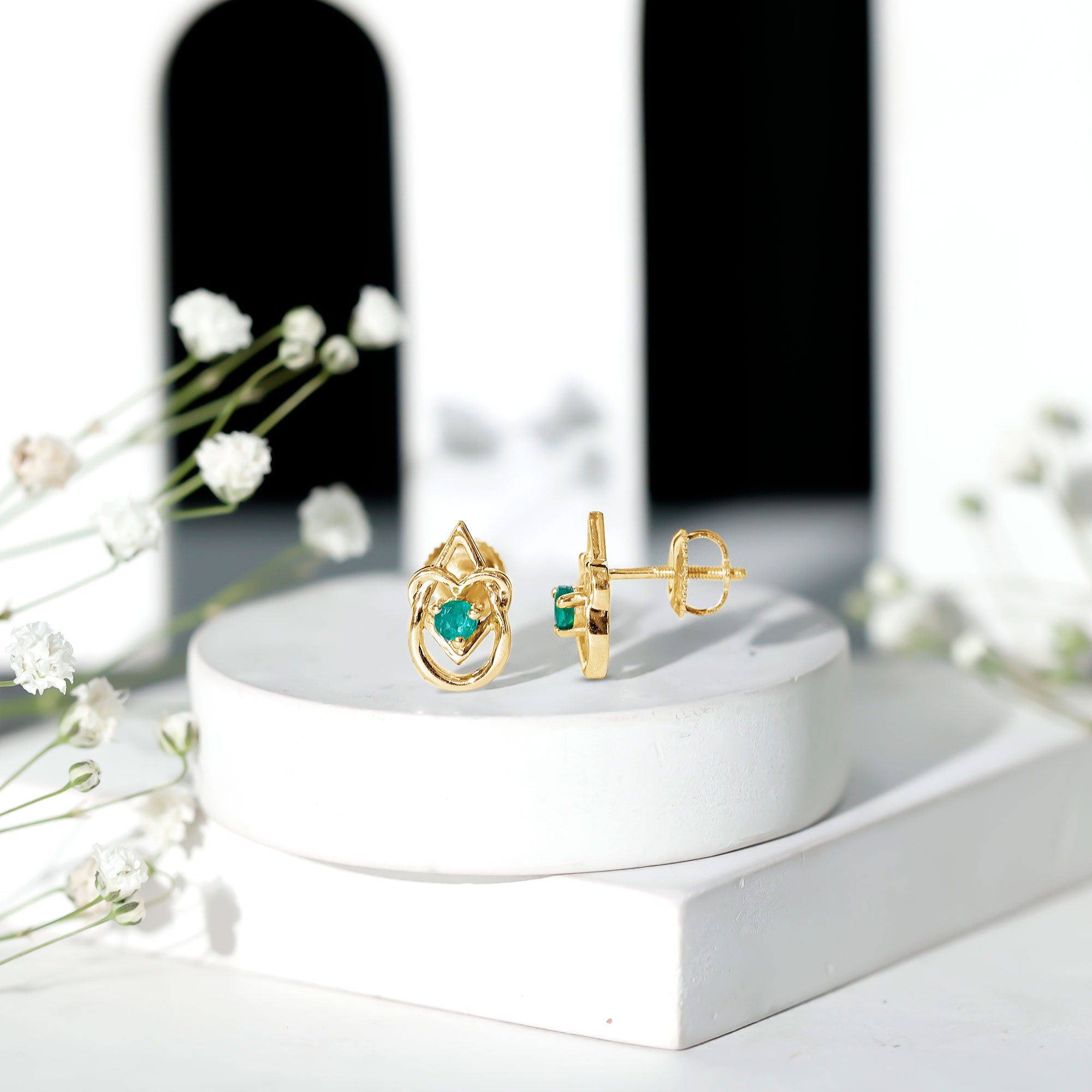 Go trendy with our Teardrop and Heart Stud Earrings for Women adorned in Gold consisting of Round Cut Emerald embellished in Prong Setting.