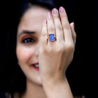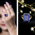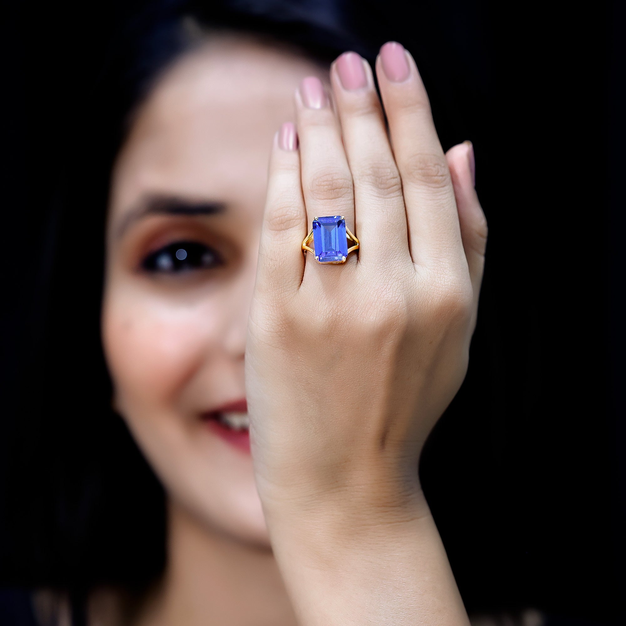 This Tanzanite Engagement Ring is timeless, boasting a unique charm and a striking appearance that makes it truly stand out. With top-notch craftsmanship and rich symbolism, it is always going to be in style. Made from Yellow Gold Plated Silver, this Vintage Style Engagement Ring features a 10X14 MM Emerald Cut Lab Grown Tanzanite set in Basket Setting with a Split Shank design, enhancing the charm of the center stone. Symbolizing loyalty, this Cocktail Ring emphasizes beauty that remains classic throughout every phase of your journey together. Its bold and stunning design resonates with your heart, much like a Big Statement Ring that makes you fall in love again and again. The vibrant hue and the large size of the stone will empower you, making you feel like a boss lady with an unstoppable drive to chase your dreams. So, carry yourself with elegance and grace, while also embracing the inner fire that lights your way.