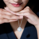 Make your D-Day look perfect with this Moissanite Pendant Necklace that is precisely crafted for your special day. This Statement Pendant features a 7X9 MM Emerald Cut Moissanite of D-VS1 as a center stone and surrounded by a double halo of Round, Pear, and Round Shape Smaller Gemstones that amplify the beauty of the pendant. This Halo Pendant Necklace can be styled as a single statement necklace or can be worn as a stack with minimal necklaces for a layered look. The unique design and breathtaking allure of this Emerald Cut Necklace make it just perfect for the bridal set. Also, you can present it to the bride-to-be to depict your affection towards her.