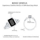 Add a meaningful piece to her collection with this beautiful Black Onyx Engagement Ring, designed to celebrate love, connection, and a little bit of mystery. At the center sits a striking 6X8 MM emerald cut black onyx, set in bezel setting for a secure and elegant look. Just beneath the main stone, there is a surprise - a small HI-SI quality diamond that adds an unexpected sparkle only she will know is there. The real charm lies in the Celtic knot shank, symbolizing eternity, unity, and unbreakable bonds. This Onyx Solitaire Ring is a story of forever, wrapped in a timeless design that blends tradition with modern beauty. Made with AAA quality black onyx, the dark center stone is also the birthstone for December, making it a thoughtful gift for anyone born in that month. The delicate details, rich symbolism, and eye-catching look make this Celtic Knot Engagement Ring a standout piece she will love wearing every day. Available in various metal options and ring sizes, this Emerald Cut Black Onyx Ring also comes beautifully boxed, ready for that unforgettable WOW moment.