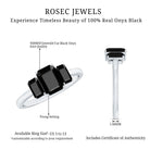 Tell her she is your forever - past, present, and future, with this stunning Three Stone Engagement Ring. Bold and beautiful, this Black Onyx Engagement Ring is made to stand out. It features three eye catching emerald cut Black Onyx stones, each carefully set in secure prong setting. The center stone measures 6X8 MM, while the two side stones are 4X6 MM, adding perfect balance and elegance to the design. What makes this Past Present and Future Ring truly special is its meaning. The three stones represent your journey together, where you have been, where you are, and all that is still to come. It is a ring that speaks without words, making it a perfect gift for a proposal, Valentine’s Day, anniversary, or just a meaningful surprise. The dark black onyx gives off a sleek, modern vibe while still feeling timeless and classy. It is not your typical engagement ring, and that is what makes it even more unique, just like your love story. Made with quality craftsmanship and certified Natural Black Onyx stones, this December Birthstone Ring is a memory in the making. Whether she loves bold statement pieces or is into more unconventional styles, this Emerald Cut Onyx Ring is sure to steal her heart. So go ahead, make the moment unforgettable with a ring that is as meaningful as it is beautiful.