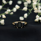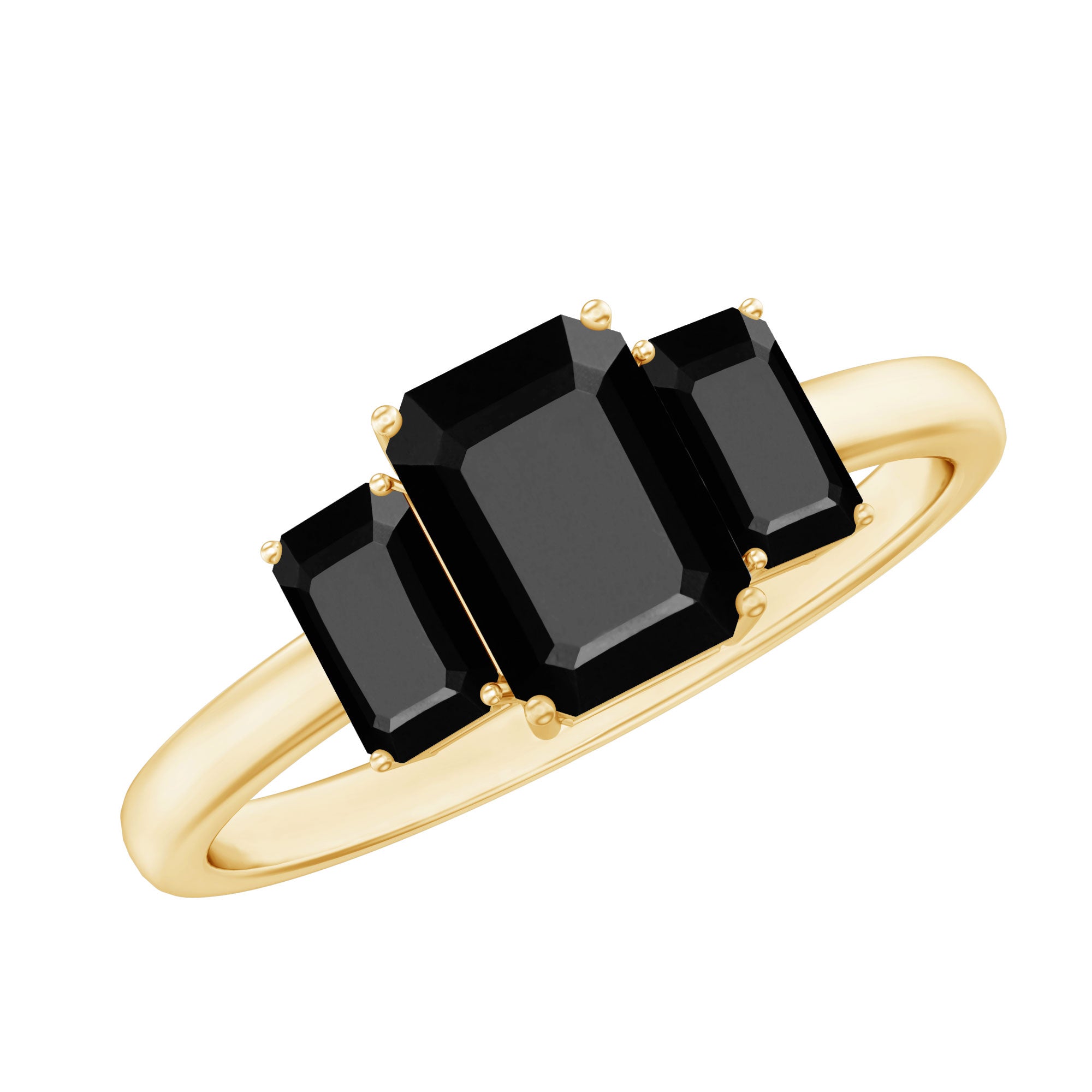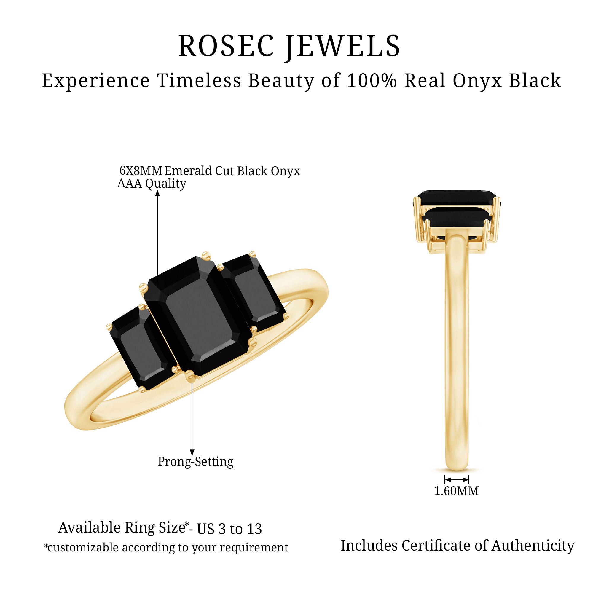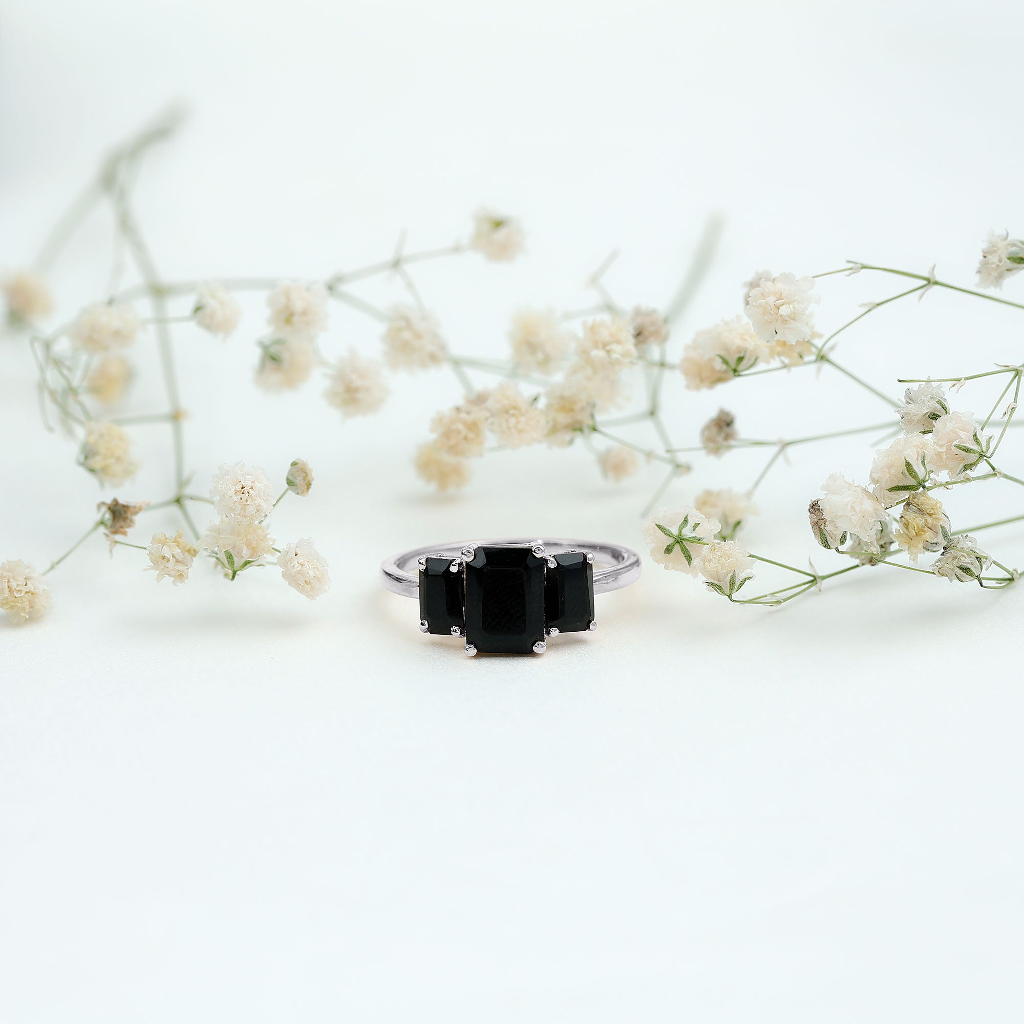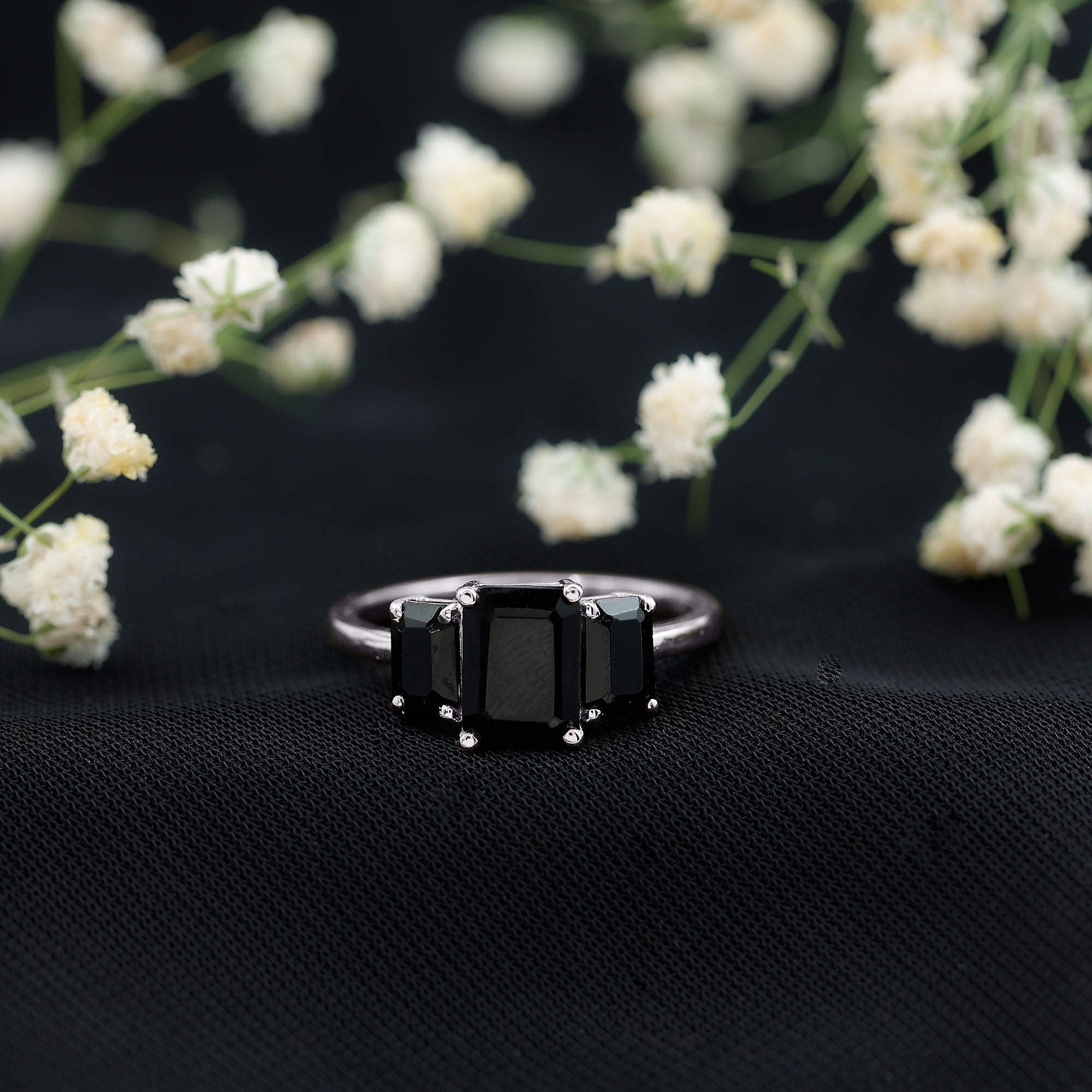Emerald Cut Black Onyx Three Stone Engagement Ring