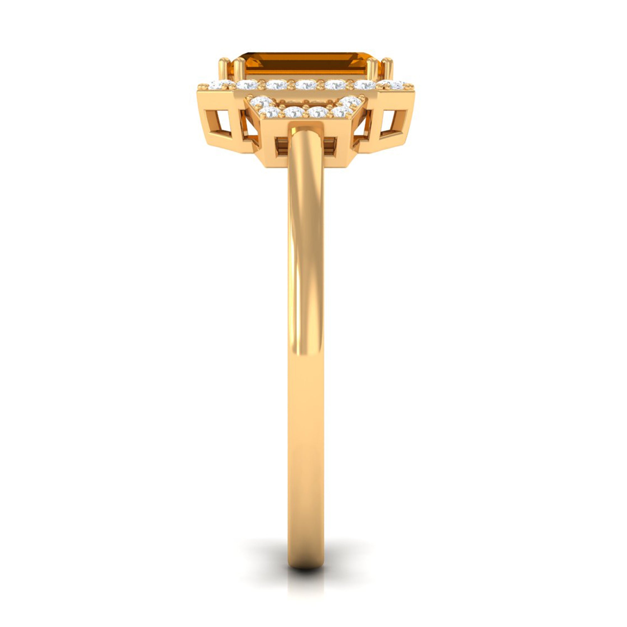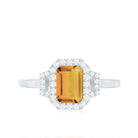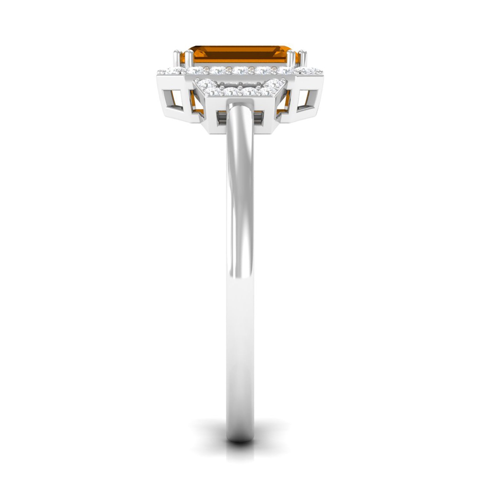 Emerald Cut Citrine and Diamond Statement Engagement Ring