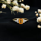 Emerald Cut Citrine Engagement Ring with Diamond Trio in Silver