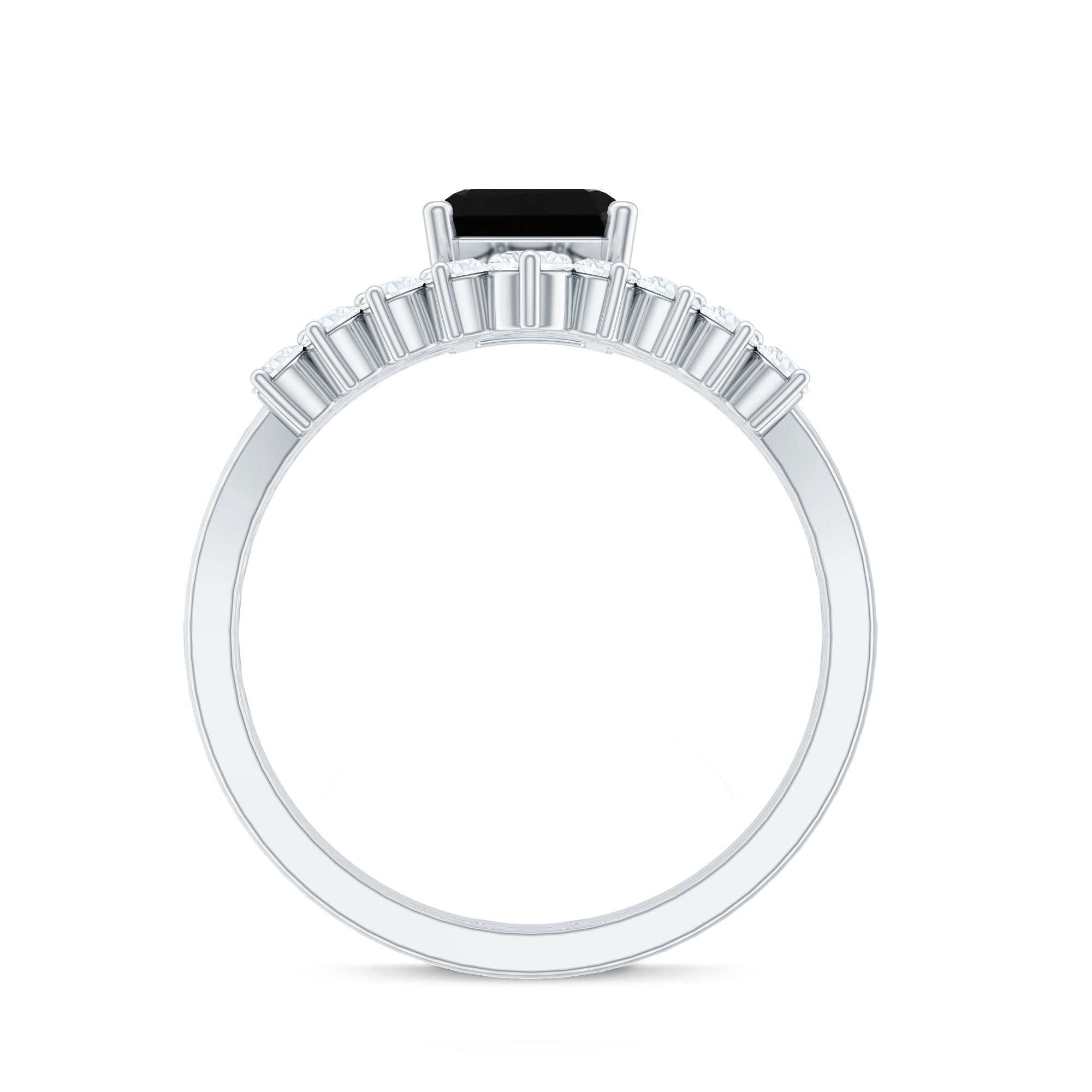 Emerald Cut Created Black Diamond and Diamond Engagement Ring Set