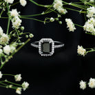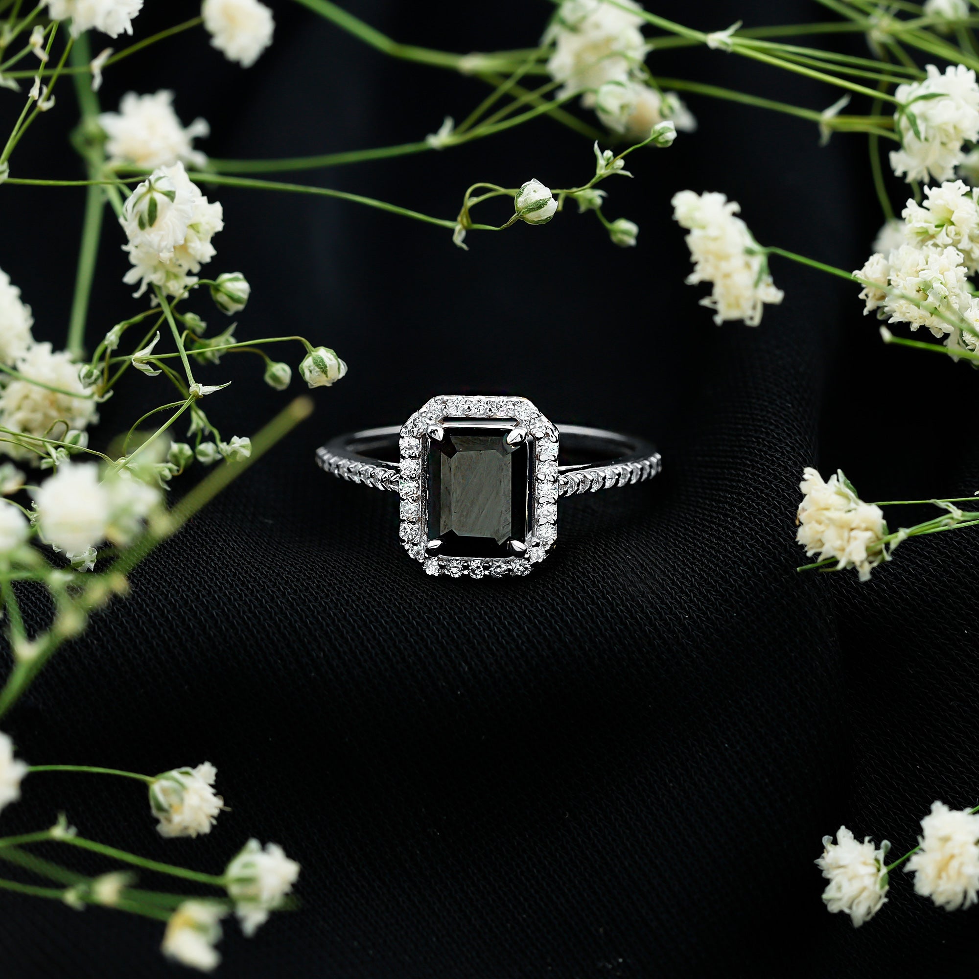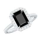 Emerald Cut Created Black Diamond Classic Halo Engagement Ring with Diamond