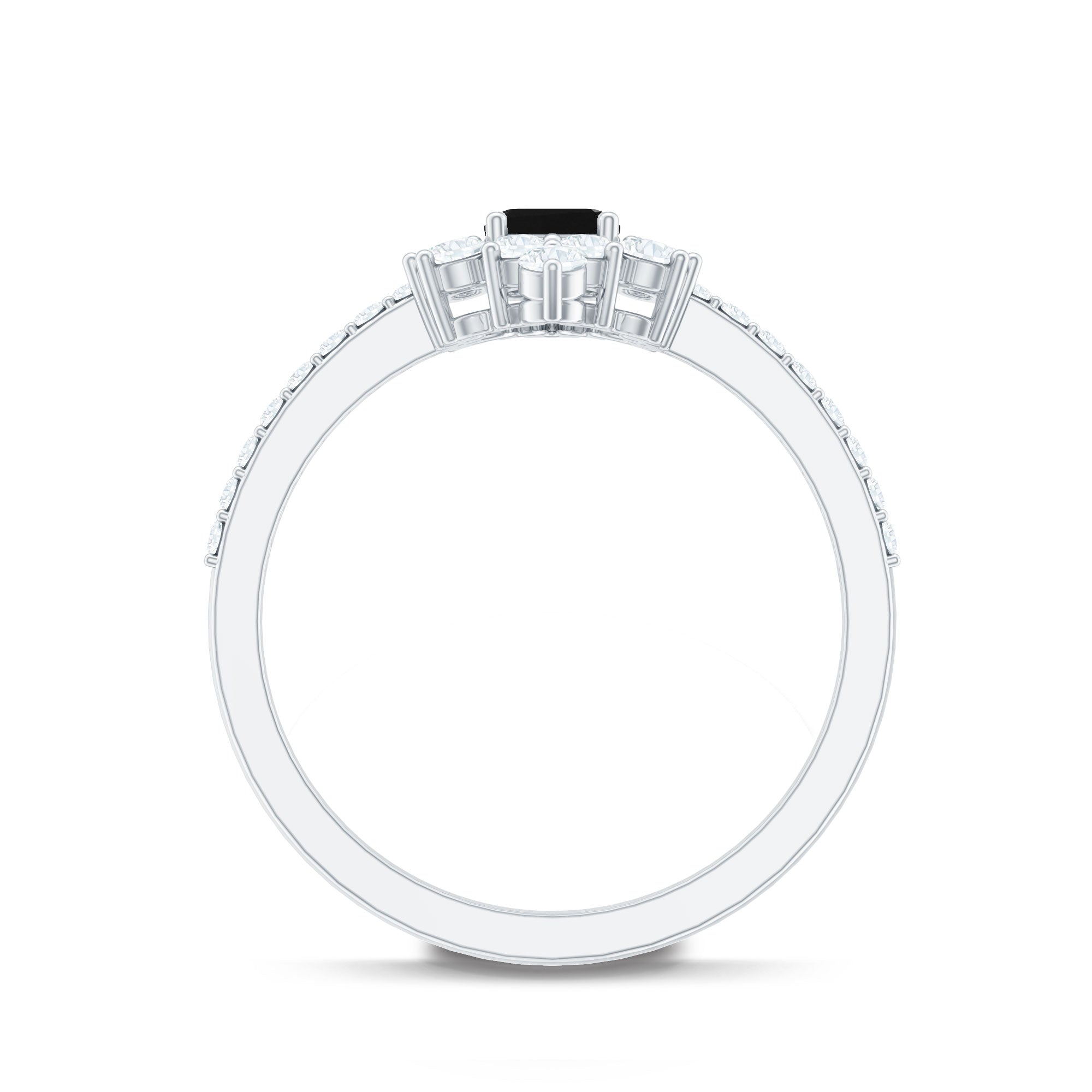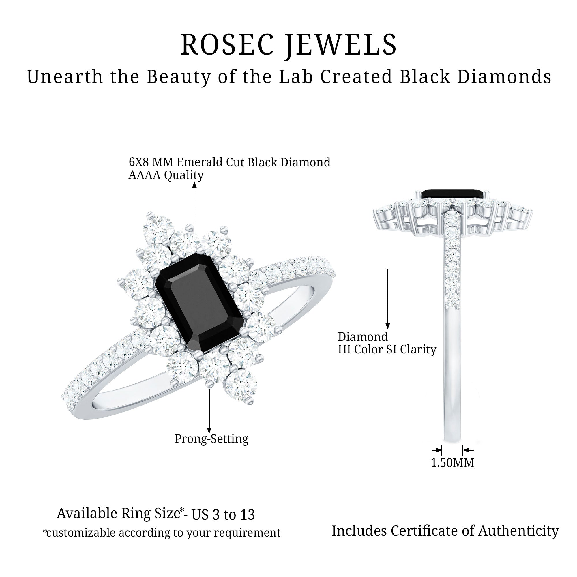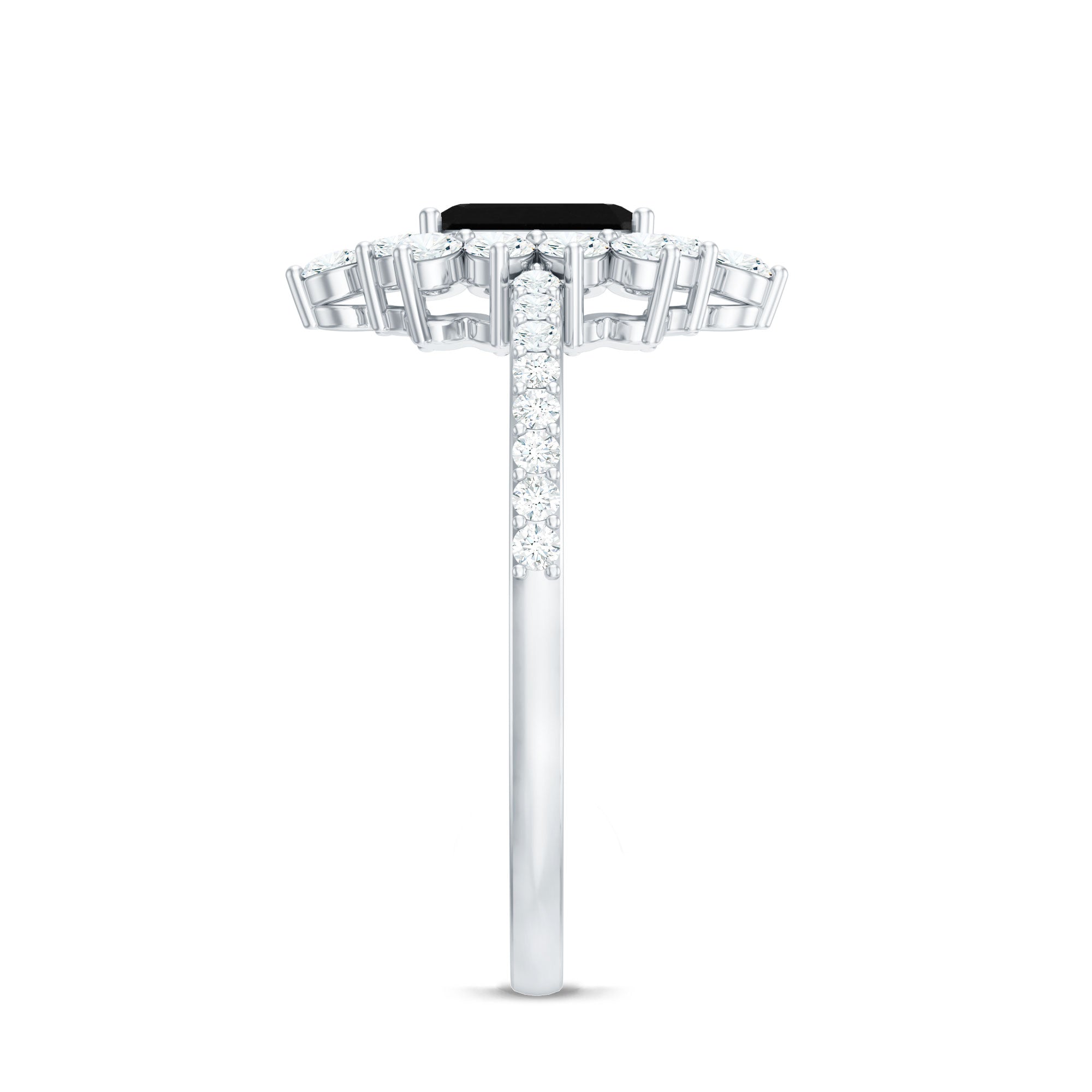 Make your day more special and unforgettable with this alluring Halo Engagement Ring, adorned with Emerald Cut Lab Created Black Diamond secured in 4 Prong Setting while dainty Round Diamonds studded as Halo. So, wear this Created Black Diamond on your big day with your beautiful dress to grab all the attention on your big day.