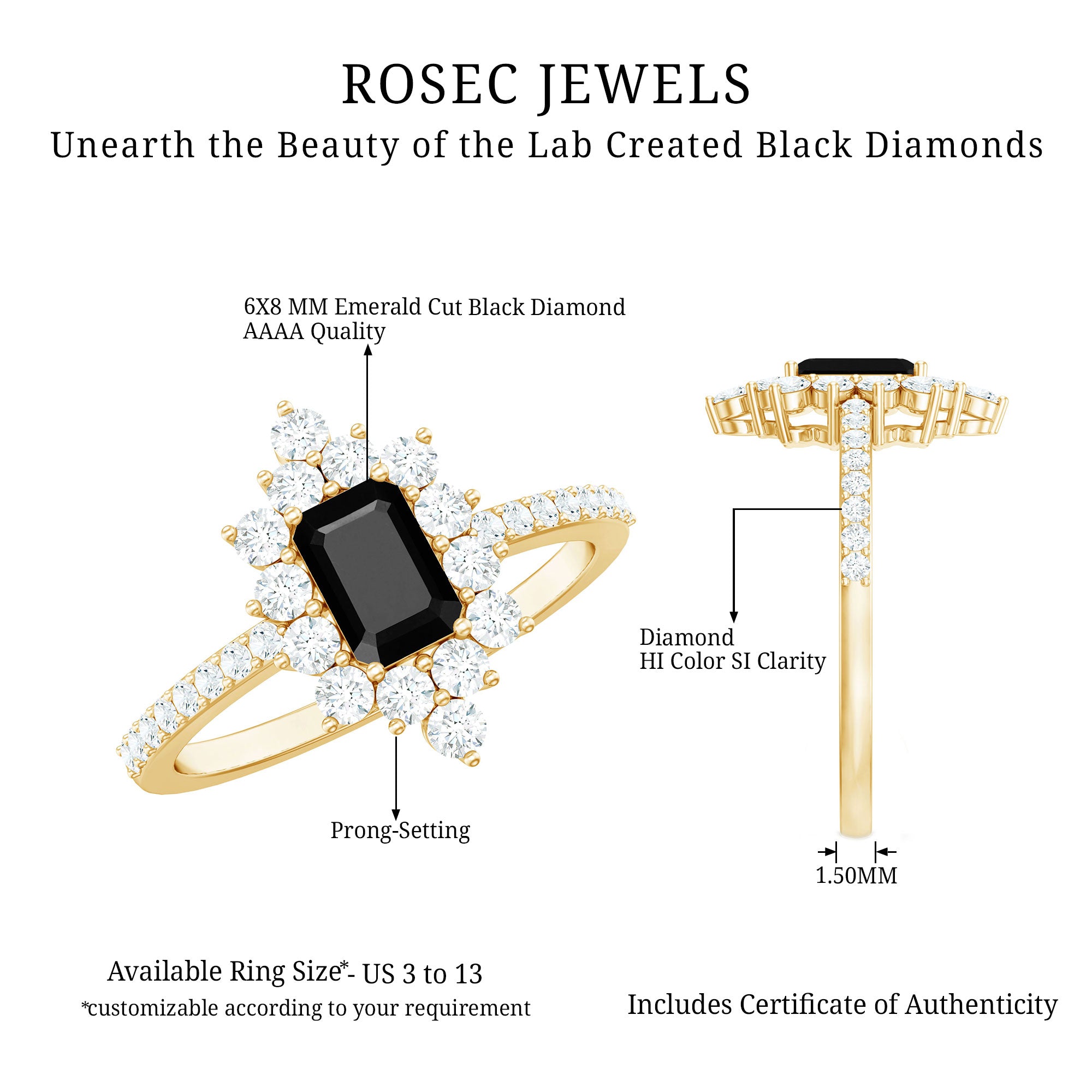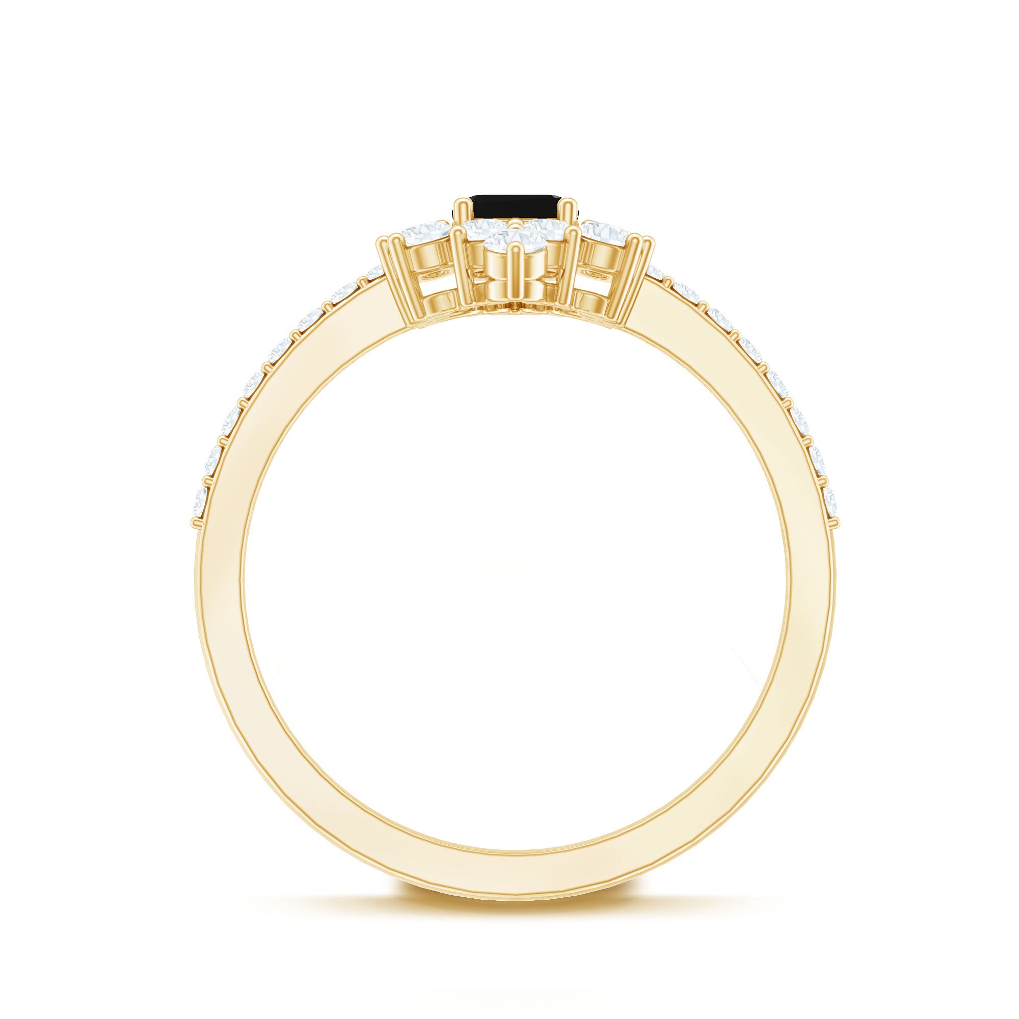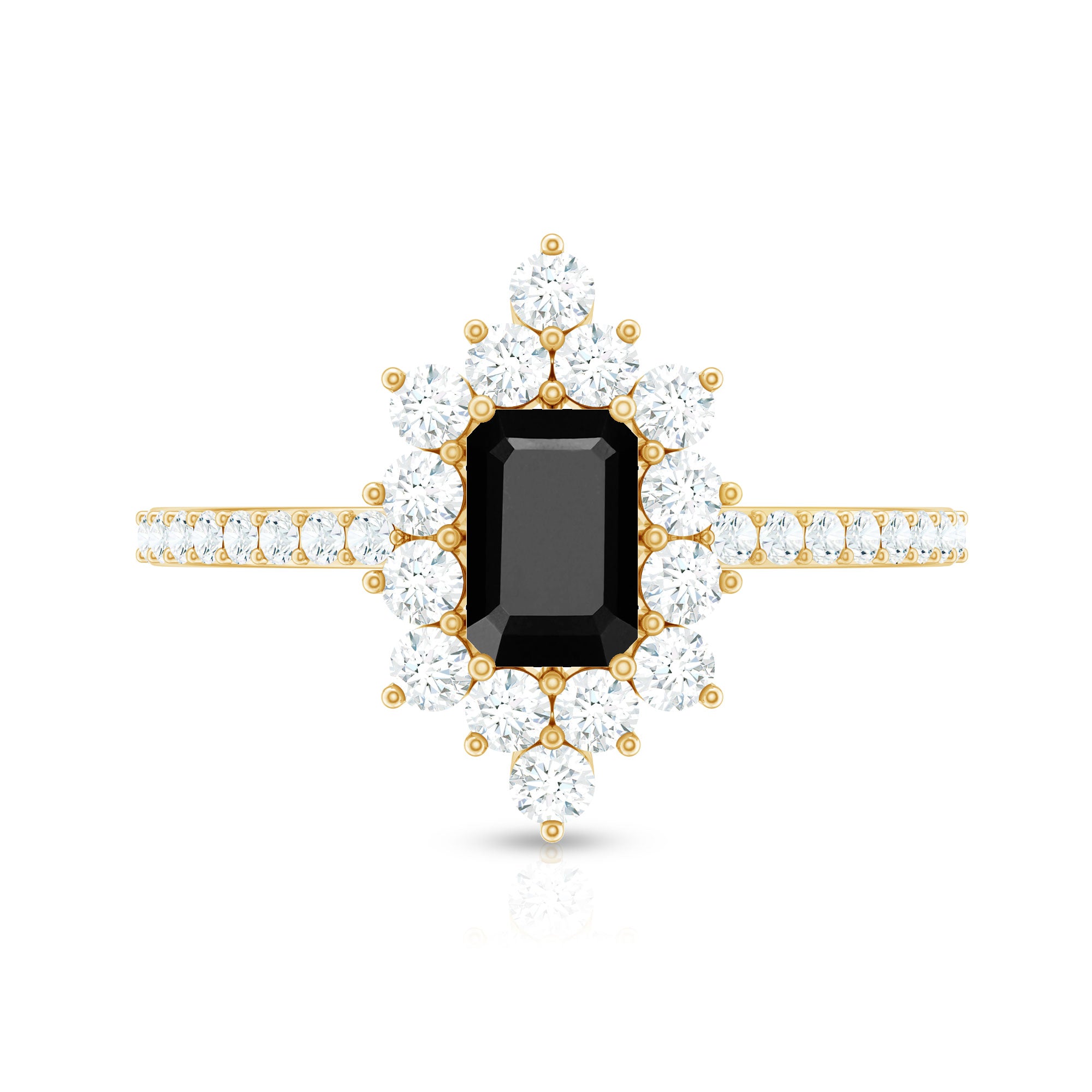 Make your day more special and unforgettable with this alluring Halo Engagement Ring, adorned with Emerald Cut Lab Created Black Diamond secured in 4 Prong Setting while dainty Round Diamonds studded as Halo. So, wear this Created Black Diamond on your big day with your beautiful dress to grab all the attention on your big day.