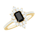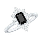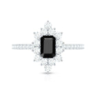 Emerald Cut Created Black Diamond Halo Engagement Ring with Diamond