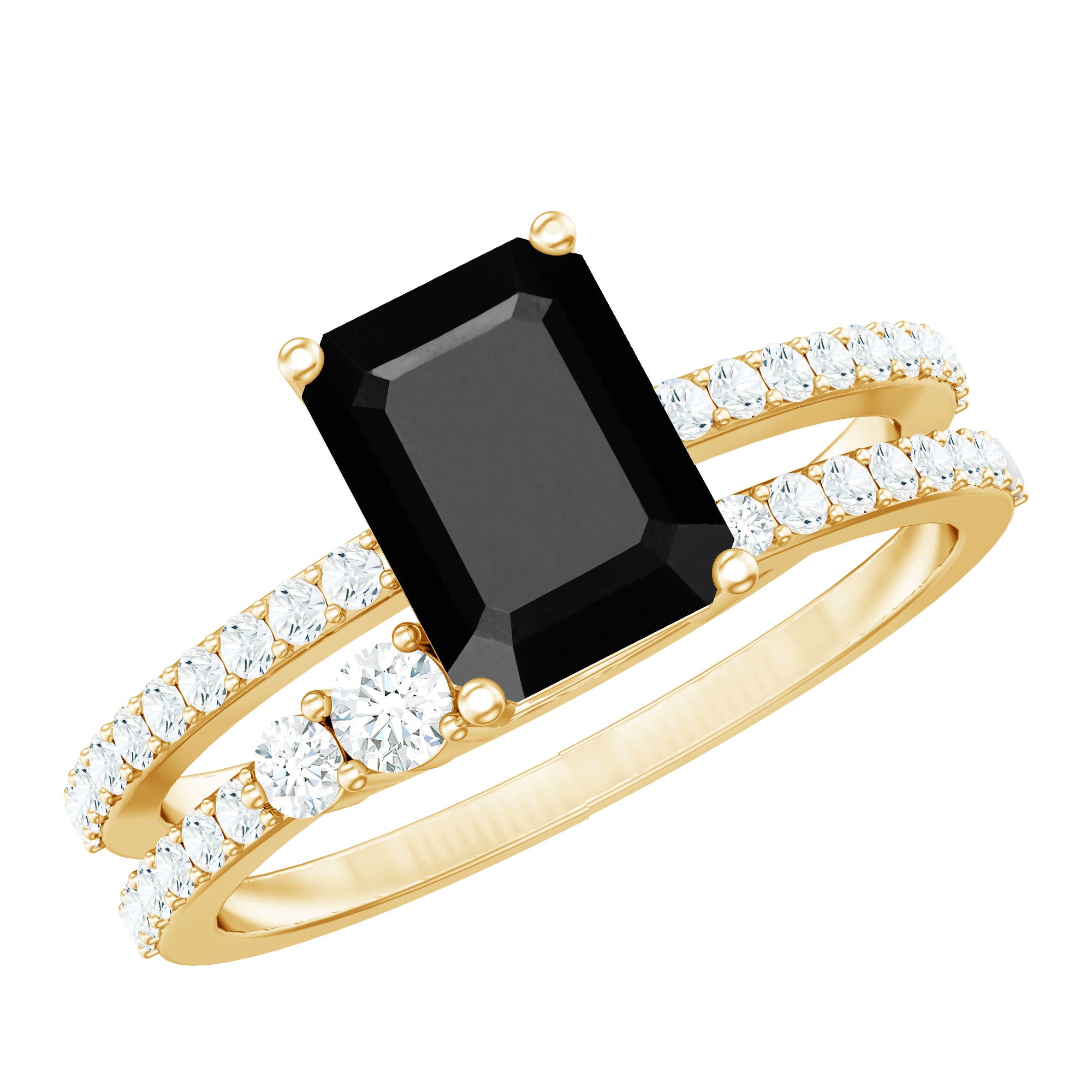 Emerald Cut Created Black Diamond Ring Set with Diamond
