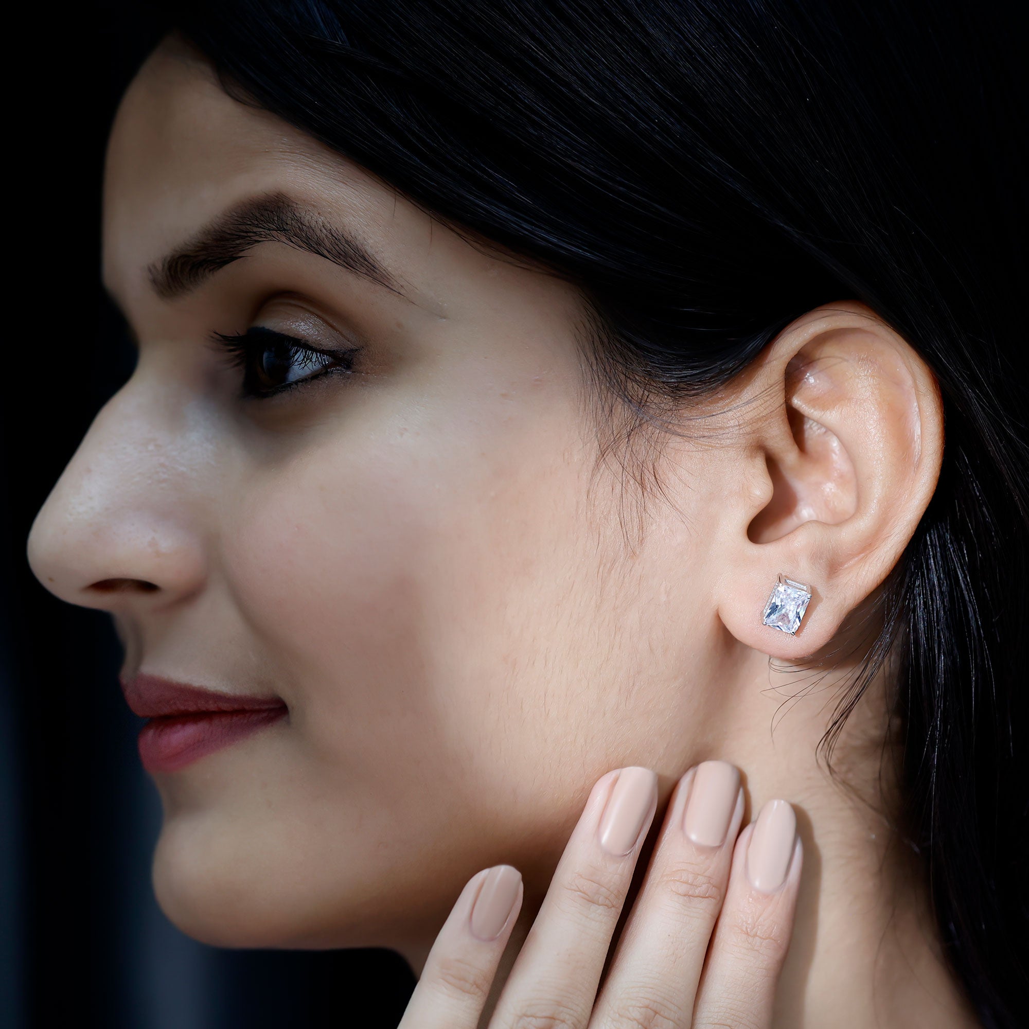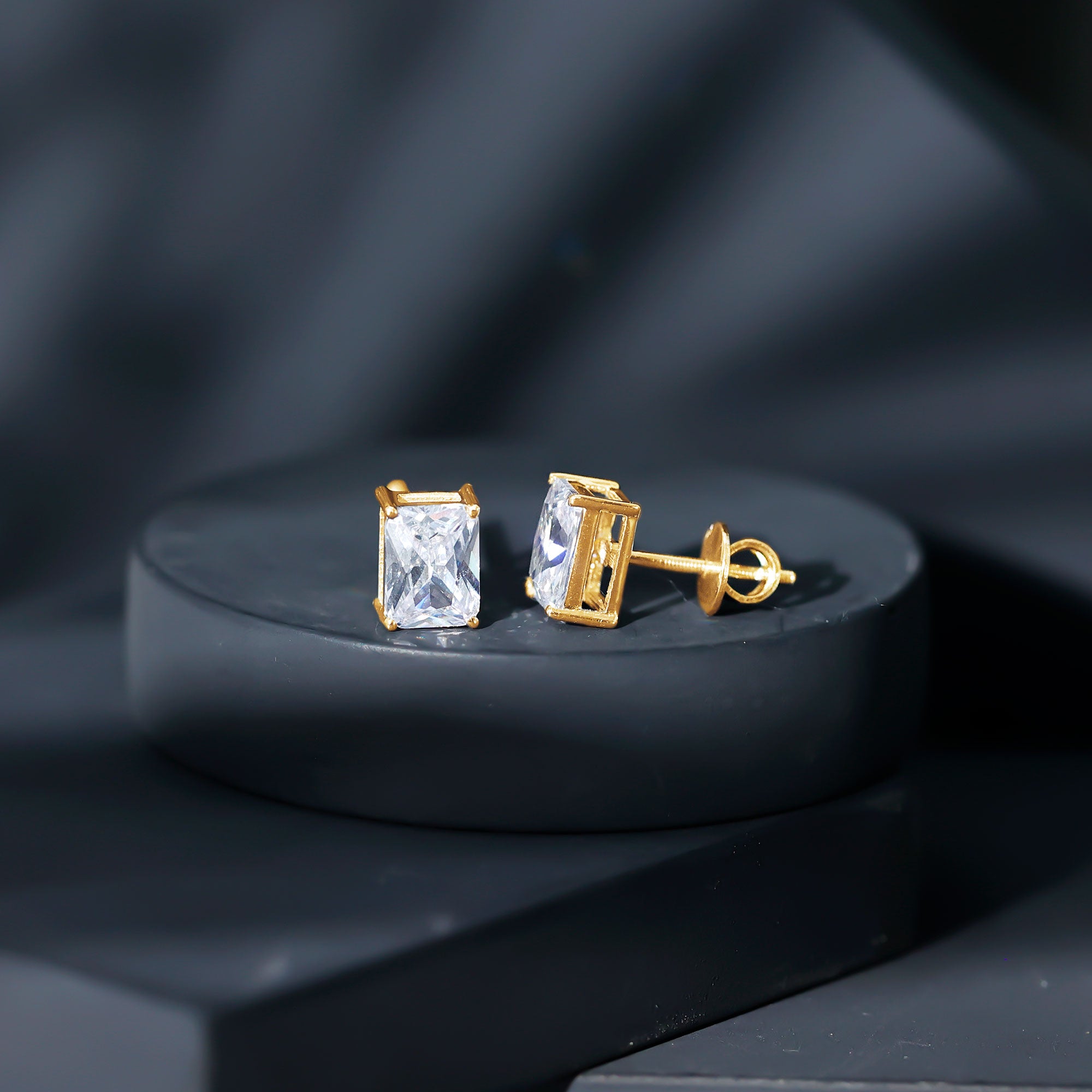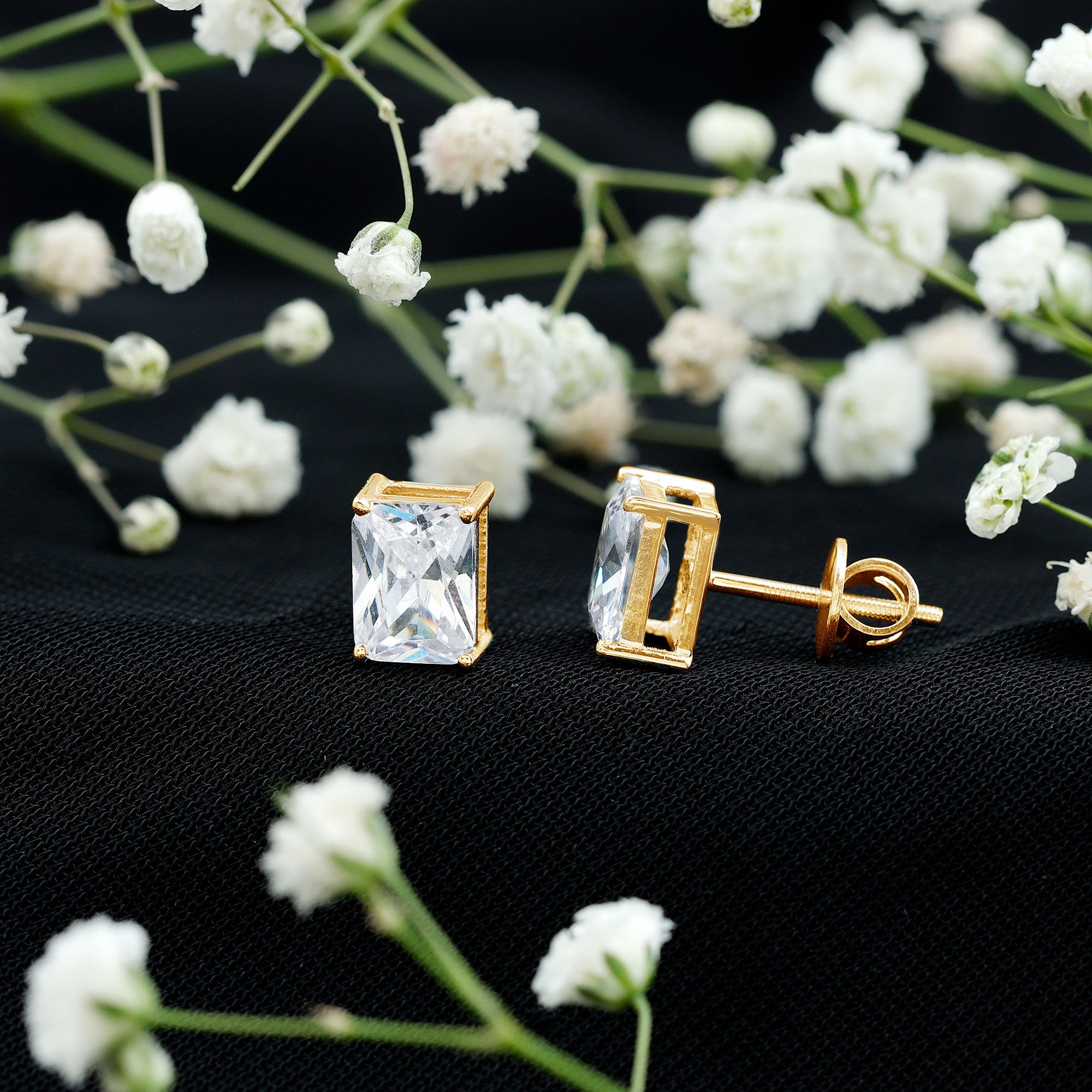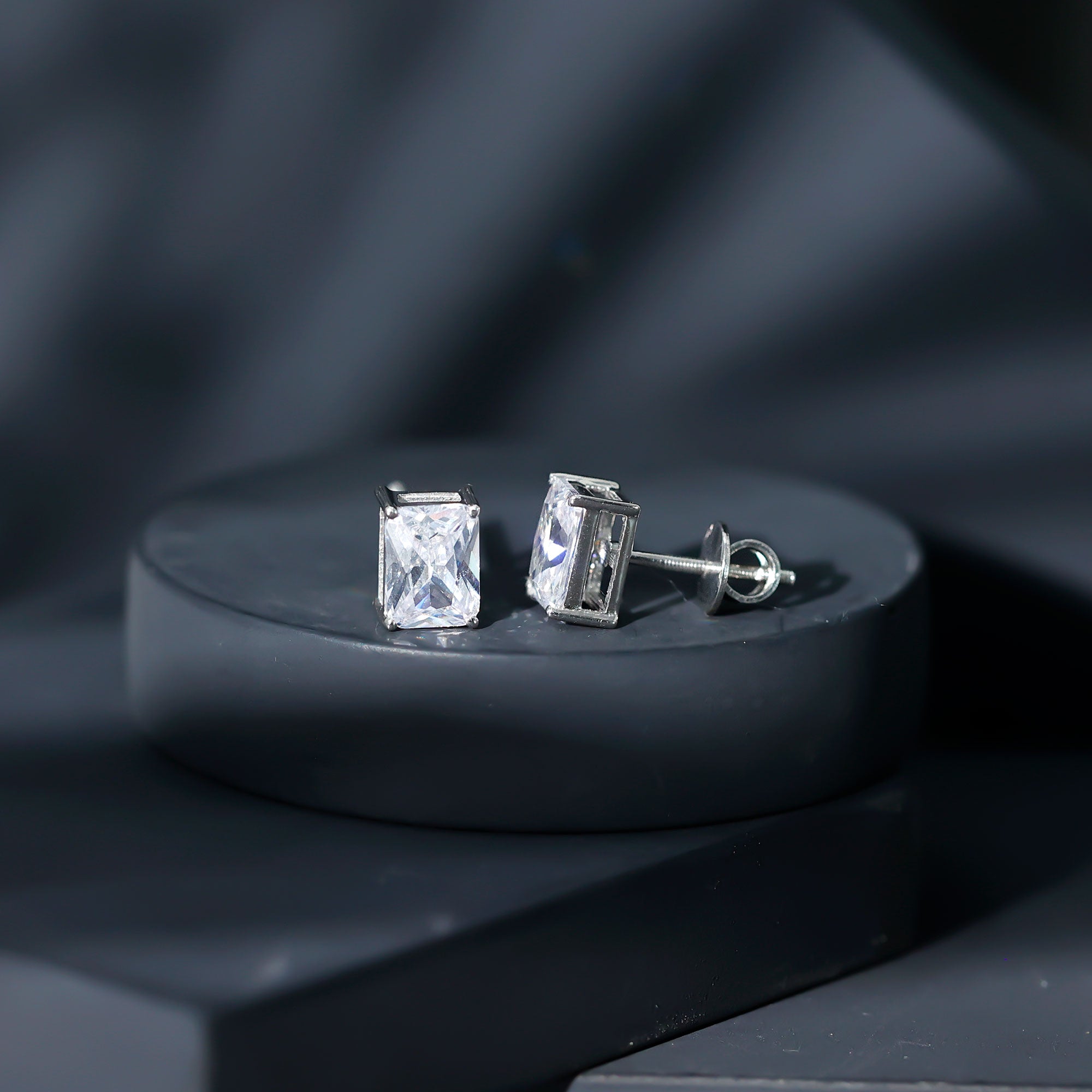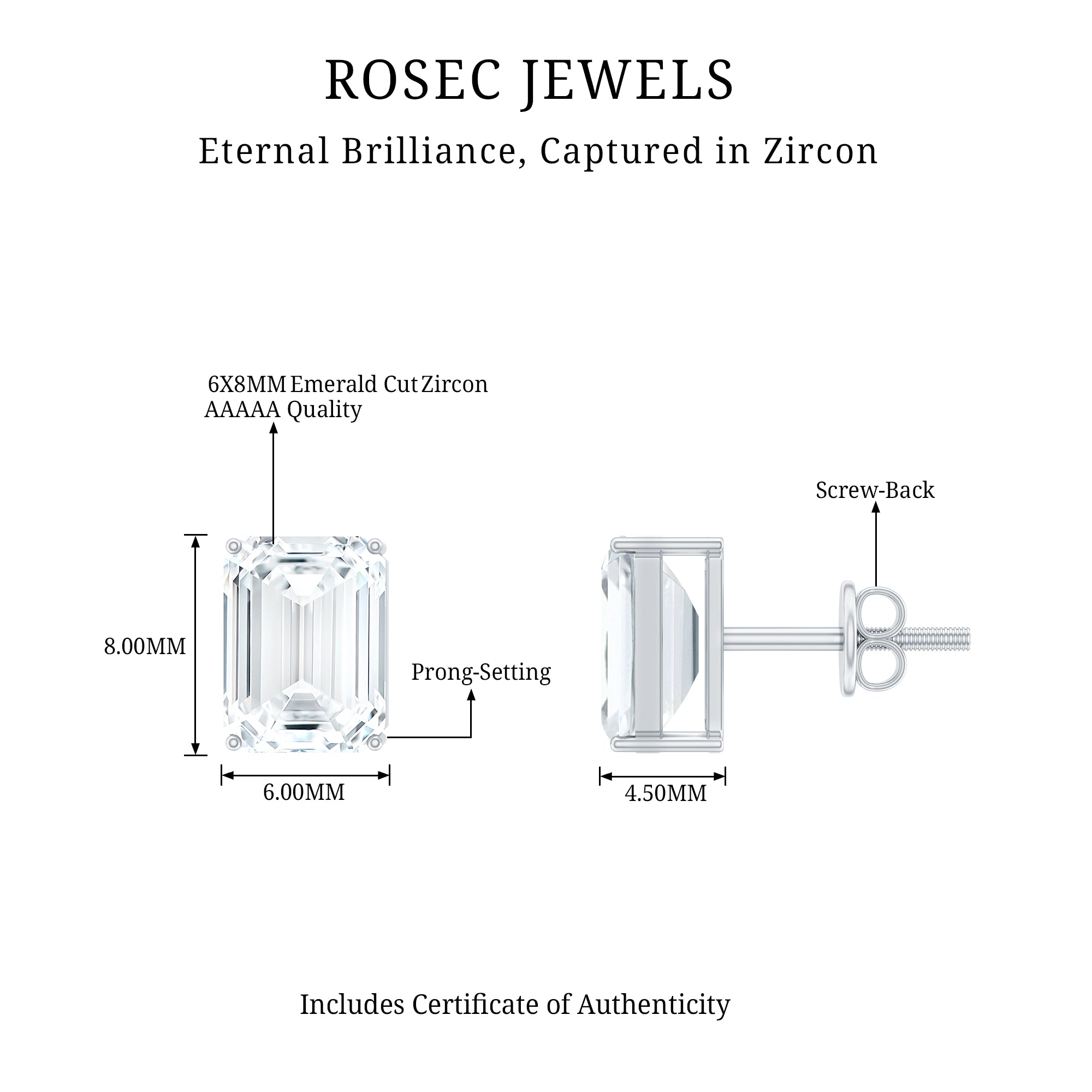Emerald Cut Cubic Zirconia Solitaire Stud Earrings
