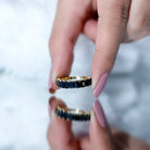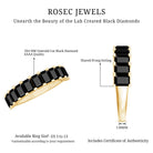 Add a bold twist to your love story with this Black Diamond Eternity Band, a perfect blend of sophistication and statement, designed for those who love minimalism with a modern edge. Crafted in durable 14K yellow gold plated silver, this band features a stunning row of 3X4 MM emerald cut lab grown black diamonds, each held securely in a classic shared prong setting. With its half eternity design, the stones cover the front of the band, offering brilliance and elegance while ensuring comfort for everyday wear. Whether you are marking a special anniversary, celebrating a personal milestone, or simply adding a luxurious touch to your jewelry collection, this Unisex Wedding Band fits the moment, and your style. The lab-created black diamonds not only bring a mysterious, modern vibe but are also an ethical and environmentally conscious choice. Ideal for both men and women, this Wedding Anniversary Band makes a powerful statement of love, commitment, and individuality. Its bold yet refined look pairs effortlessly with other pieces or stands strong on its own. Whether it is worn as an anniversary band, fashion ring, or a daily signature piece, this Black Diamond Band is a meaningful and striking addition to any jewelry box.