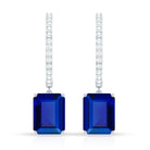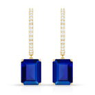 Emerald Cut Lab Created Blue Sapphire and Diamond Hoop Drop Earrings