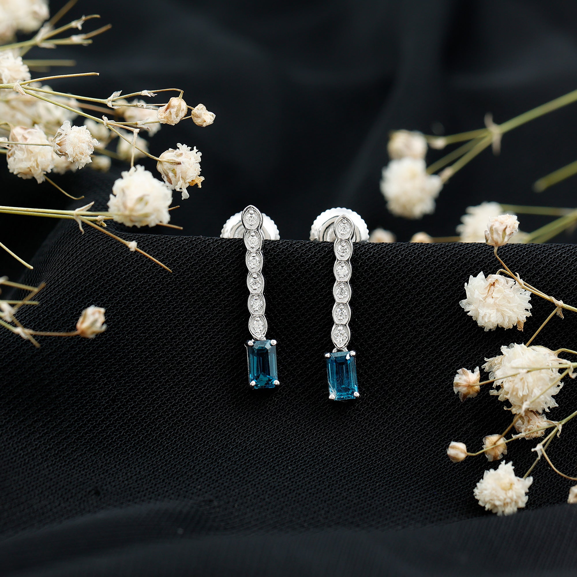Emerald Cut London Blue Topaz and Diamond Dangle Drop Earrings
