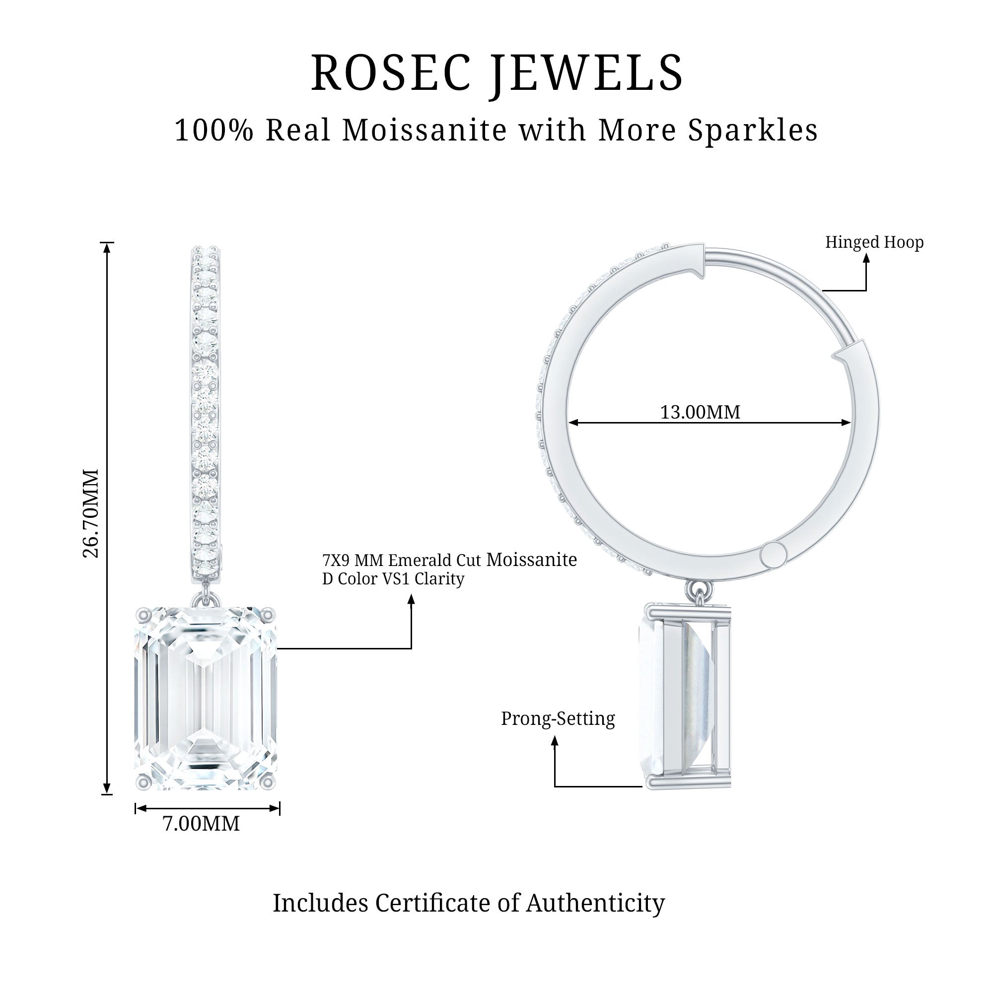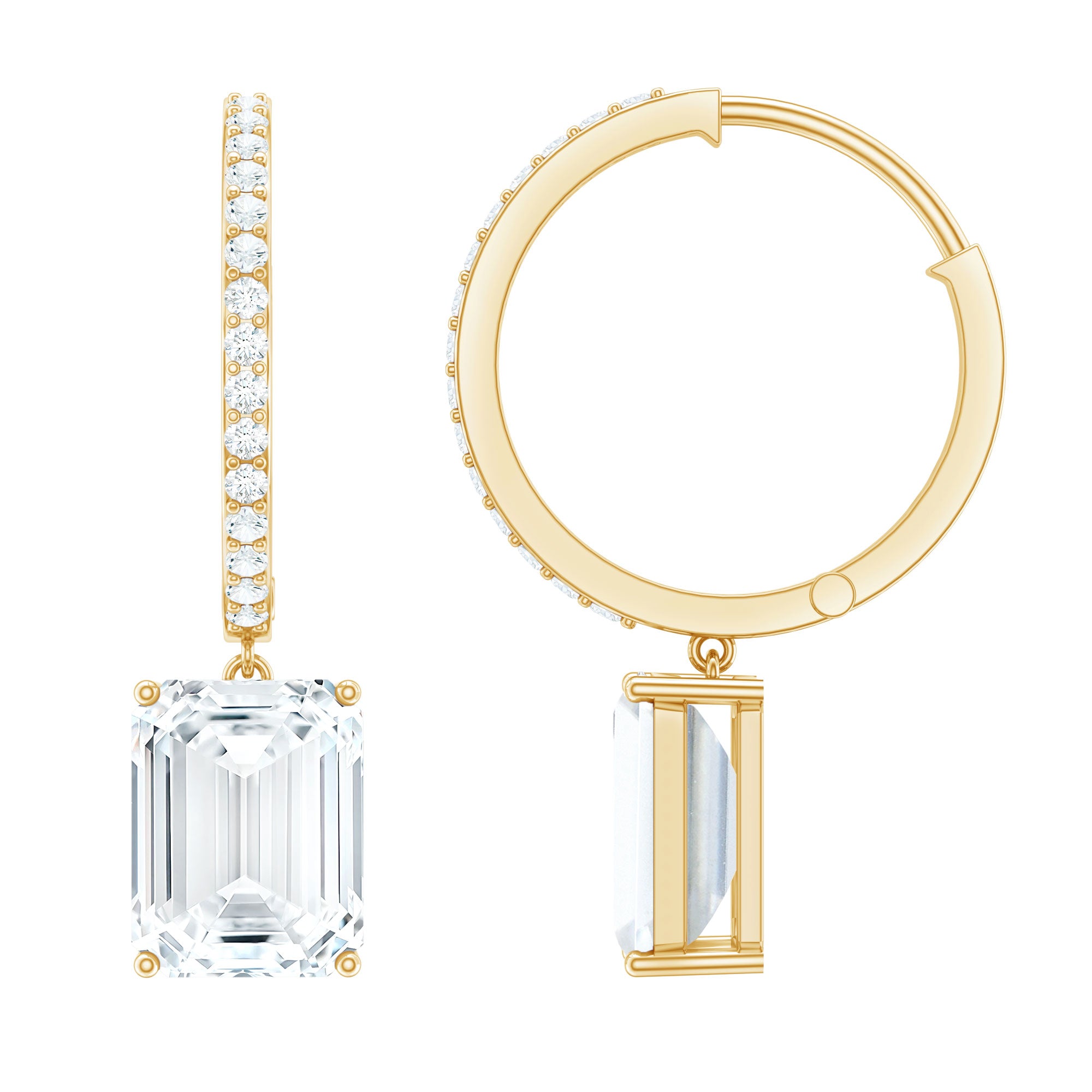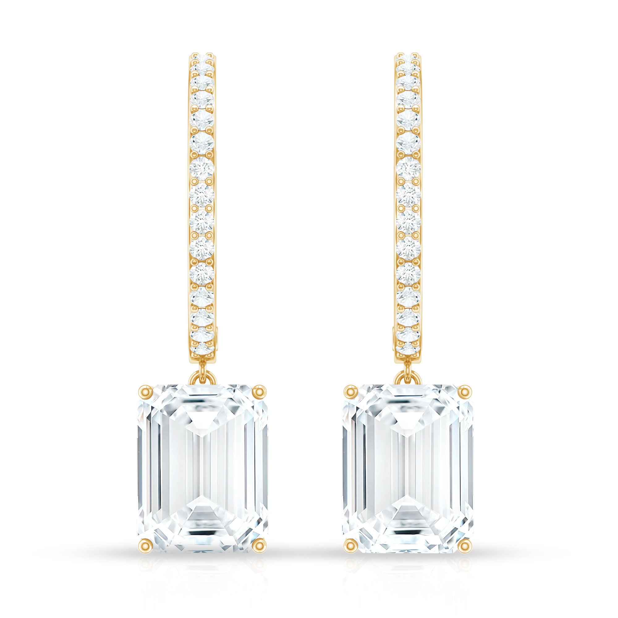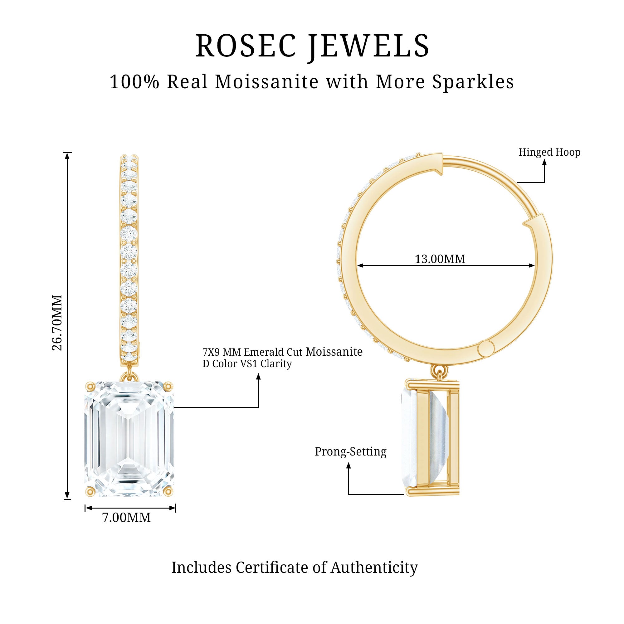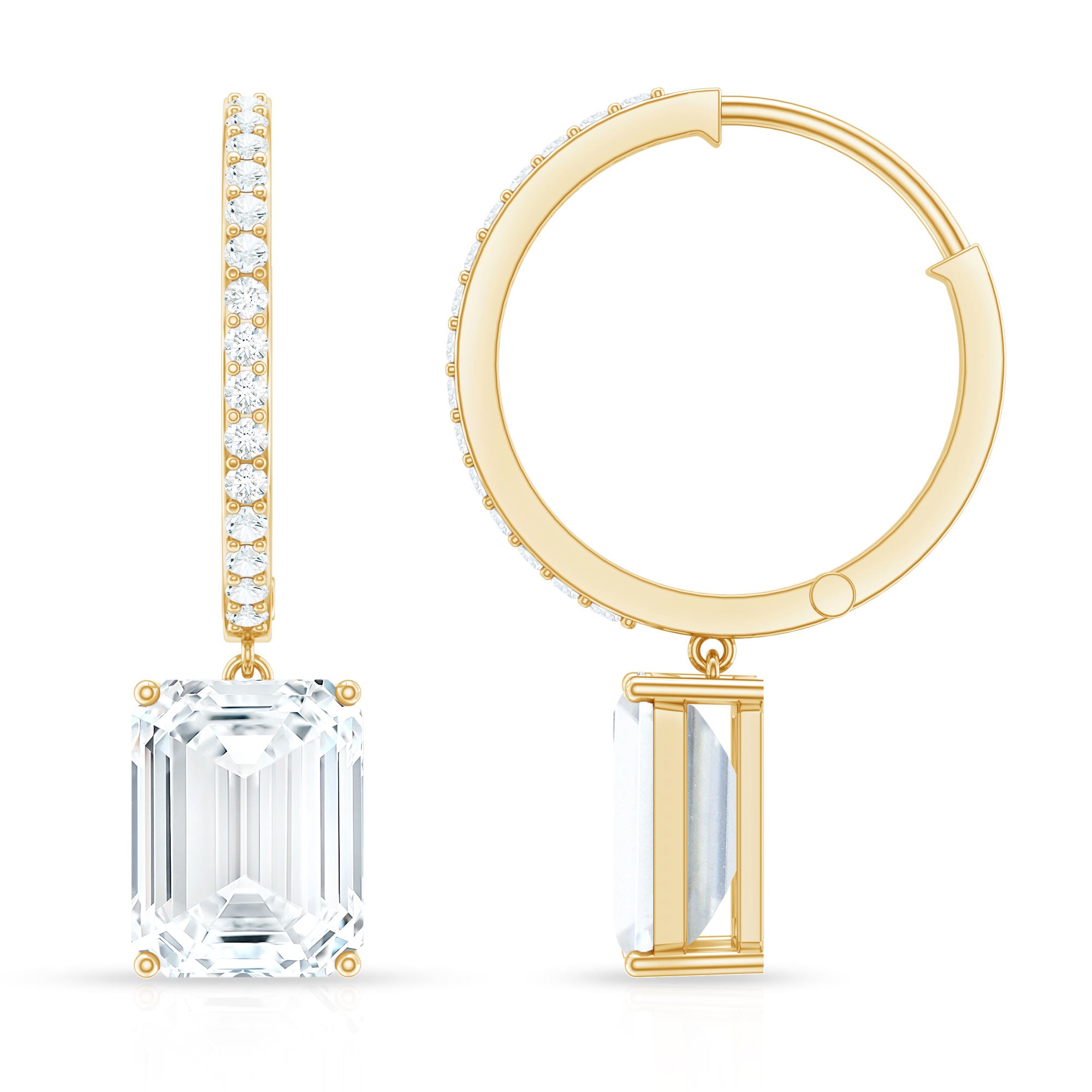 Be the epitome of grace and beauty as you walk down with these Moissanite Drop Earrings. Unveiling the most exquisite choices for every woman, these Drop Earrings are the perfect way to radiate love on her special day. The minimalistic design of these Hoop Earrings are adorned with Emerald Cut Moissanite in Prong Setting ensuring that all eyes are on you. Making these an ideal choice for brides who appreciate simplicity and sophistication. Match these Hoop Drop Earrings with your pendant necklace to look amazing.