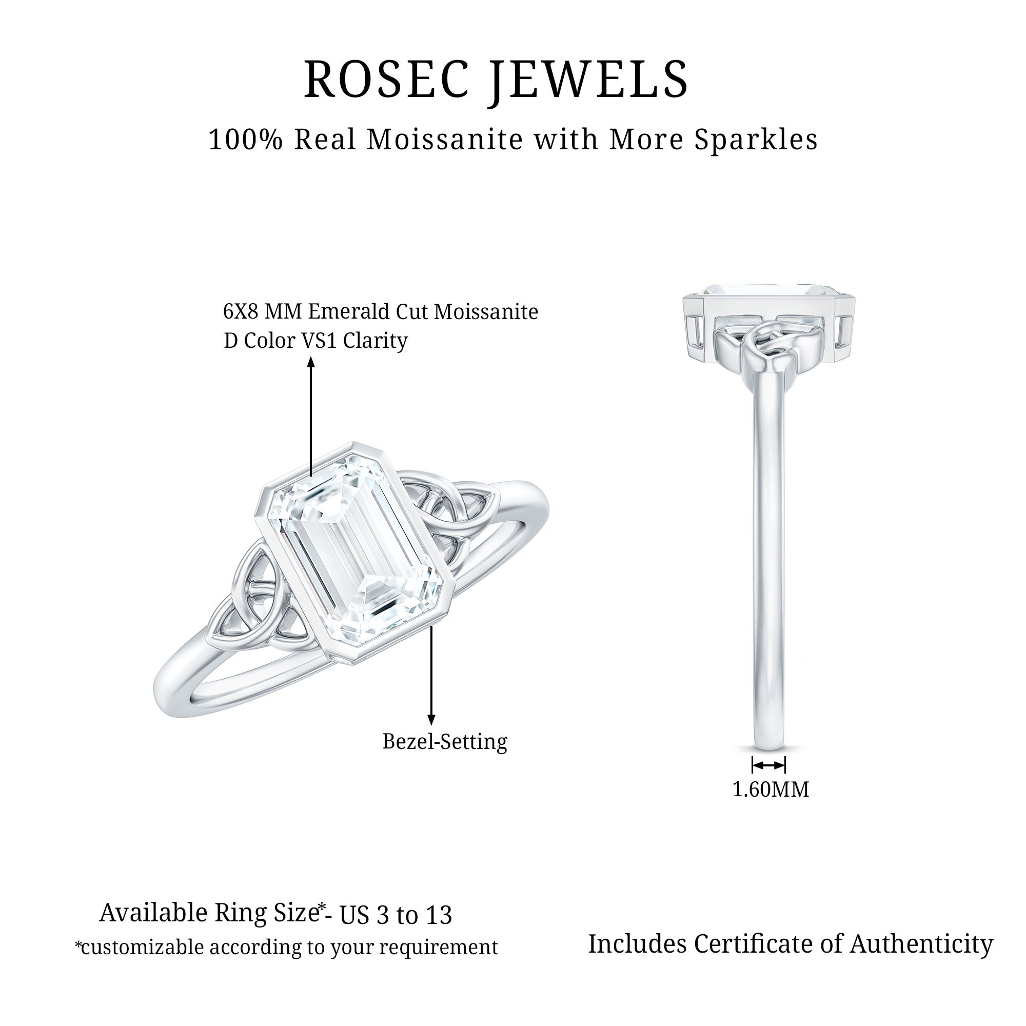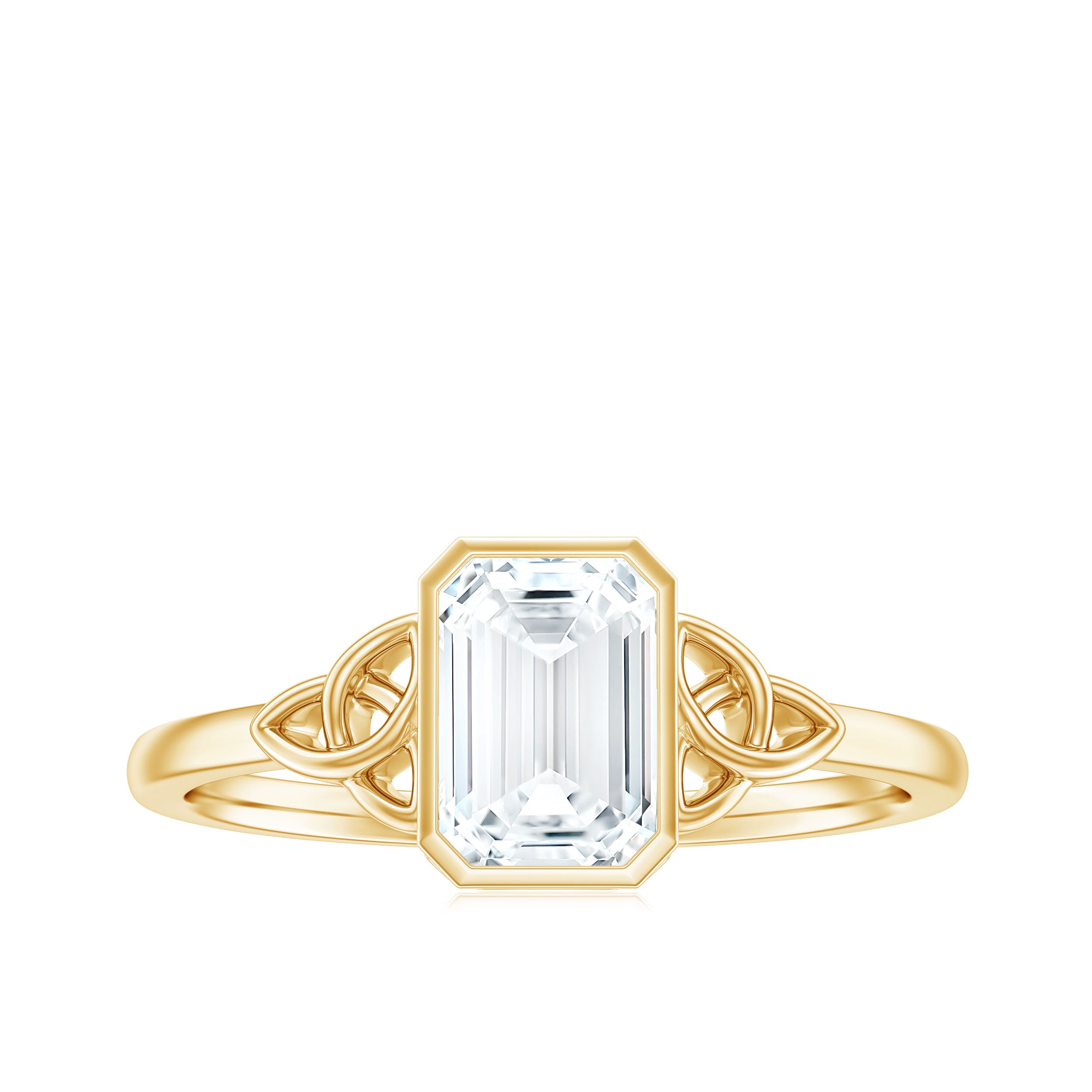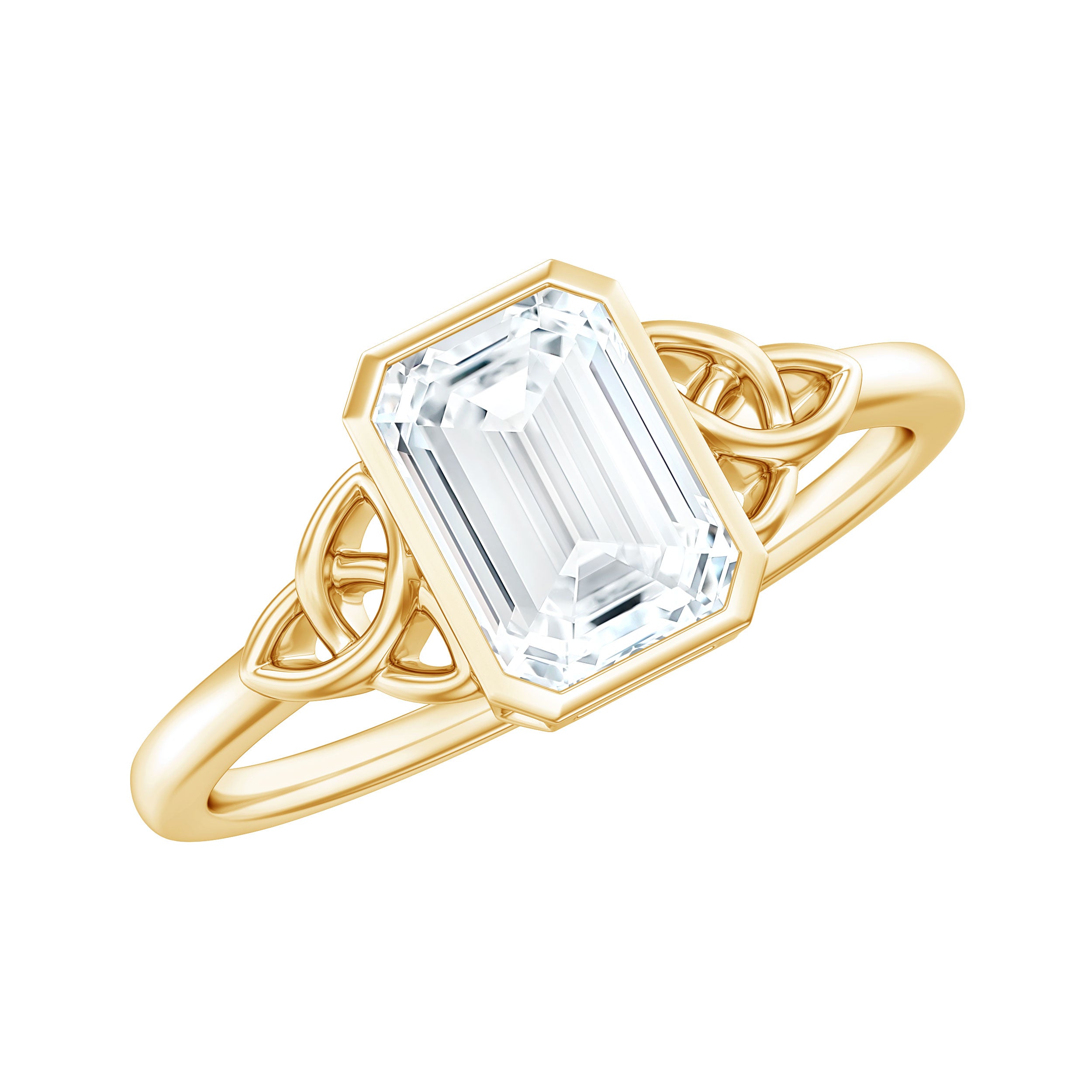 Emerald Cut Moissanite Solitaire Celtic Engagement Ring
