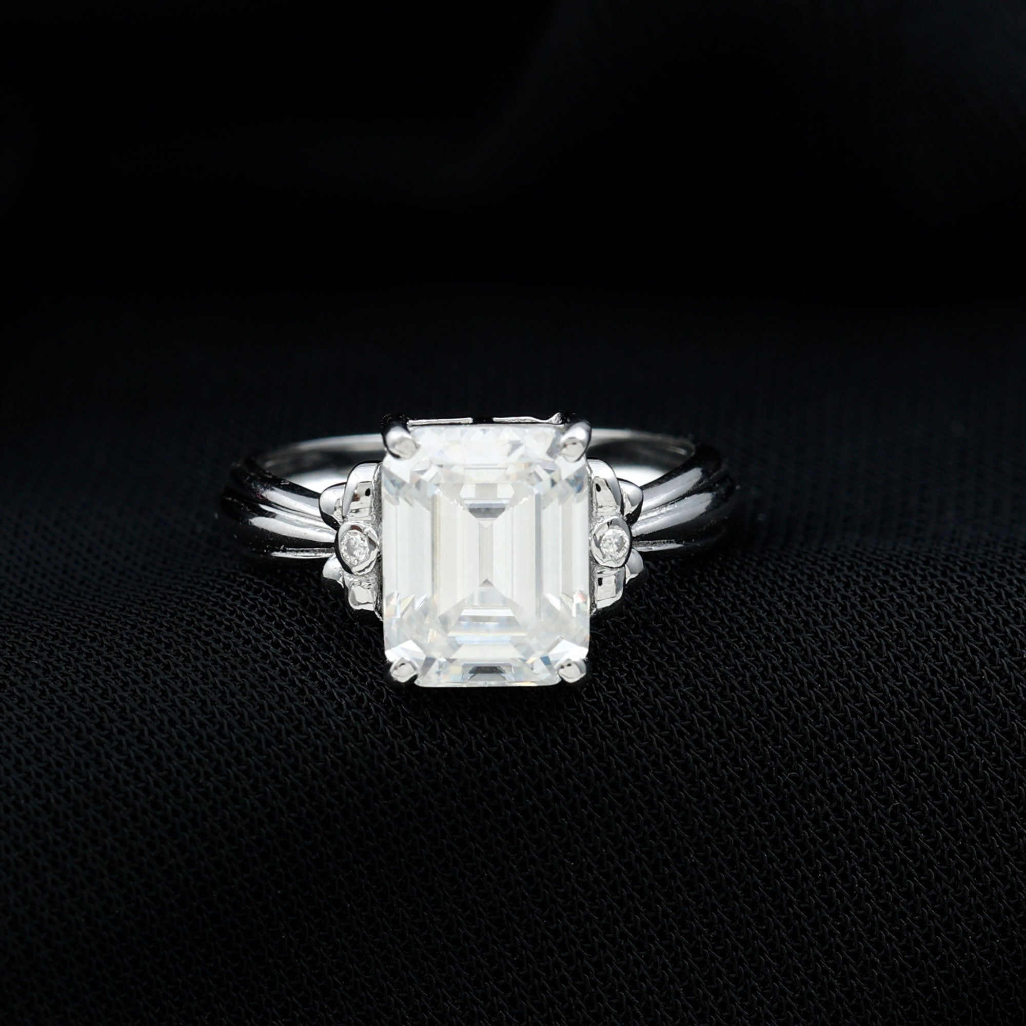 Certified Emerald Cut Moissanite Huge Engagement Ring