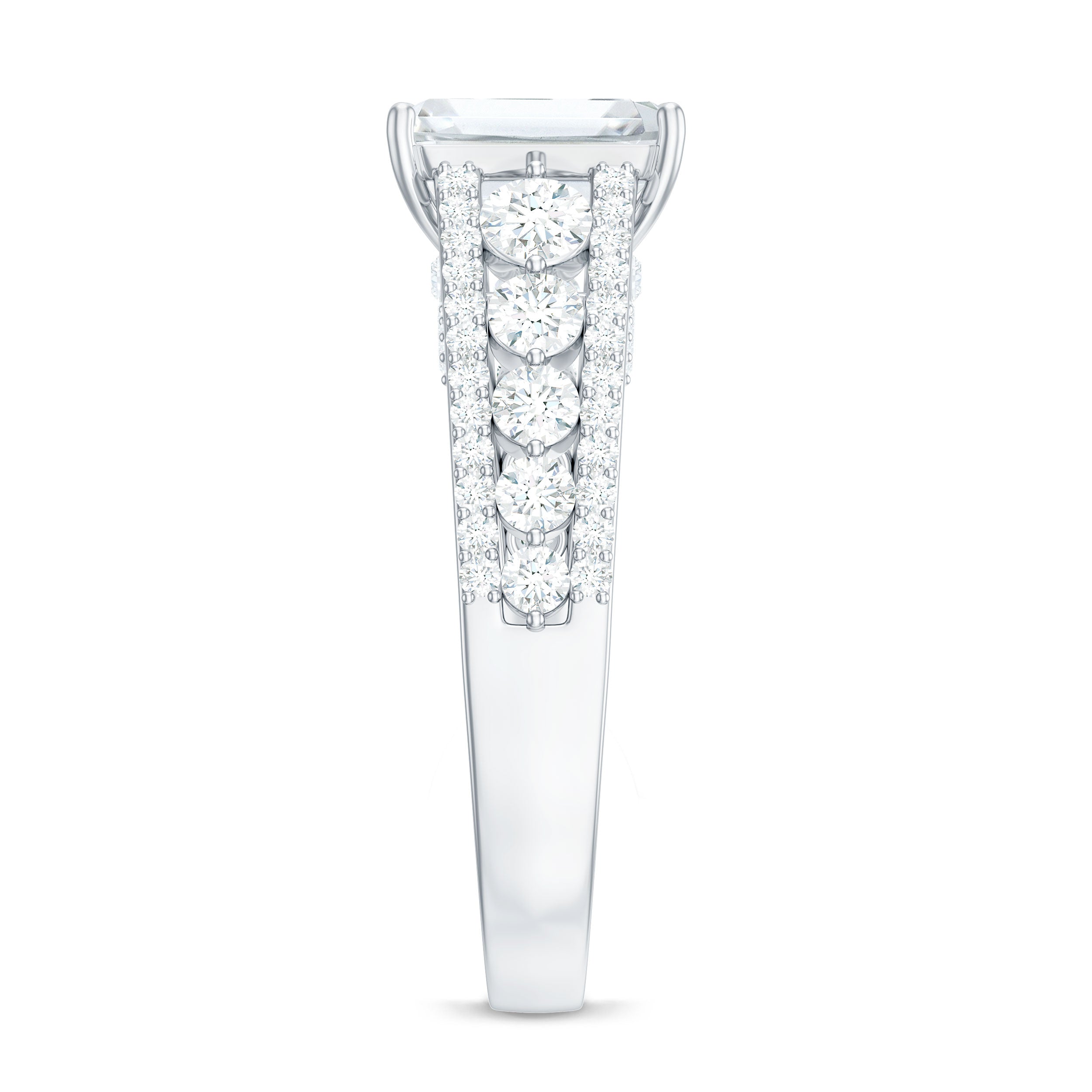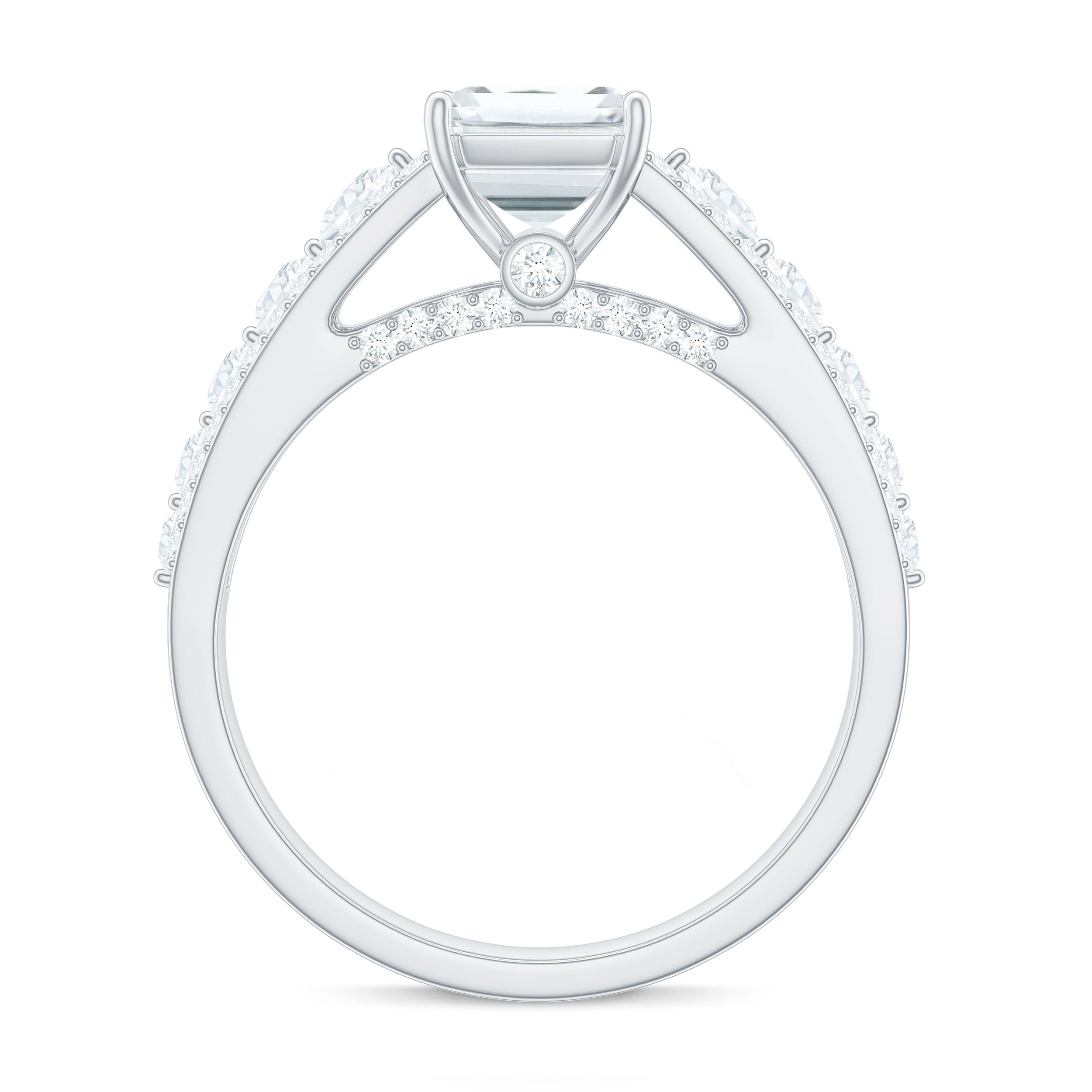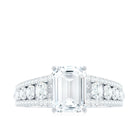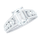 Certified Emerald Cut Moissanite Solitaire Engagement Ring with Side Stones