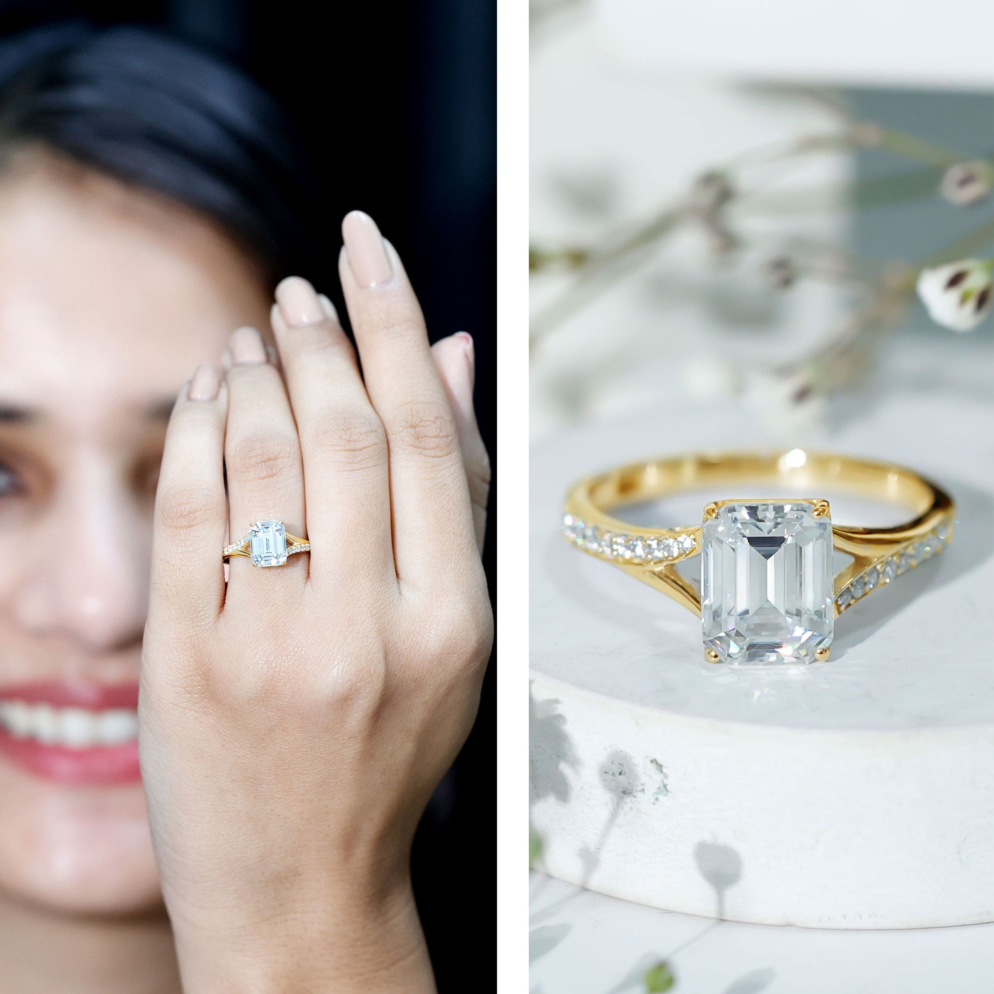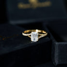 Emerald Cut Moissanite Solitaire Engagement Ring with Split Shank