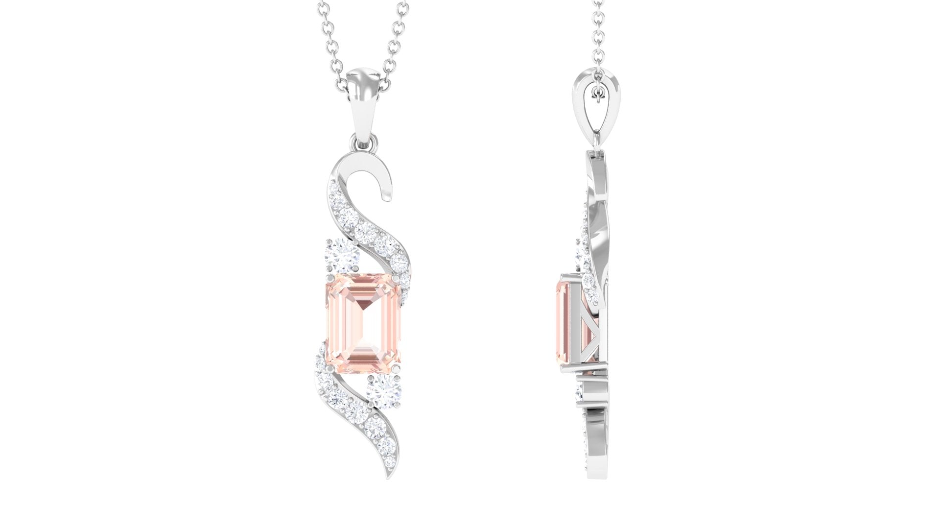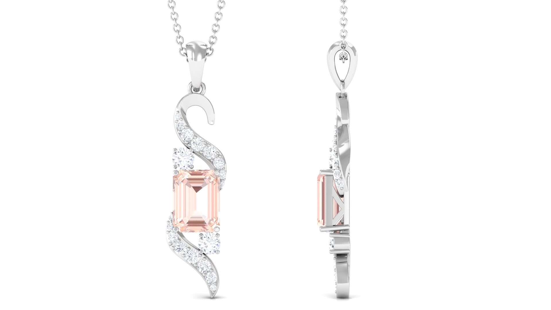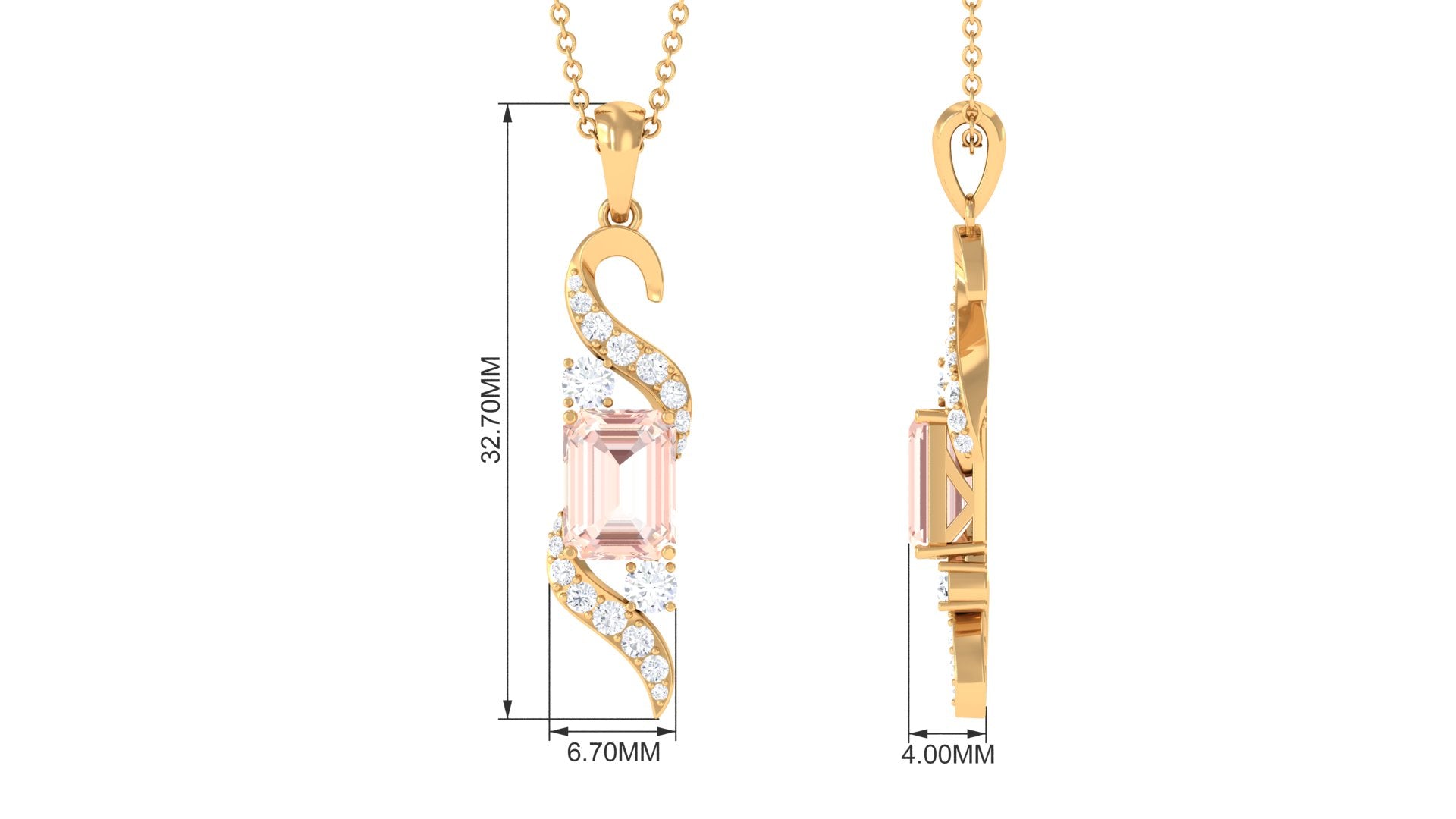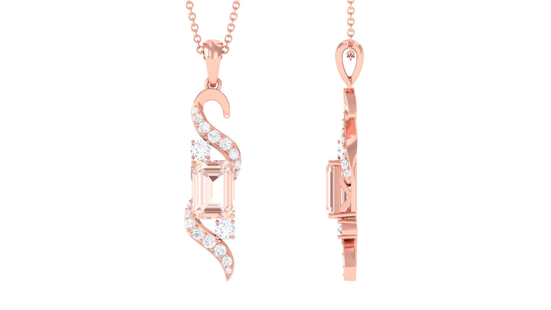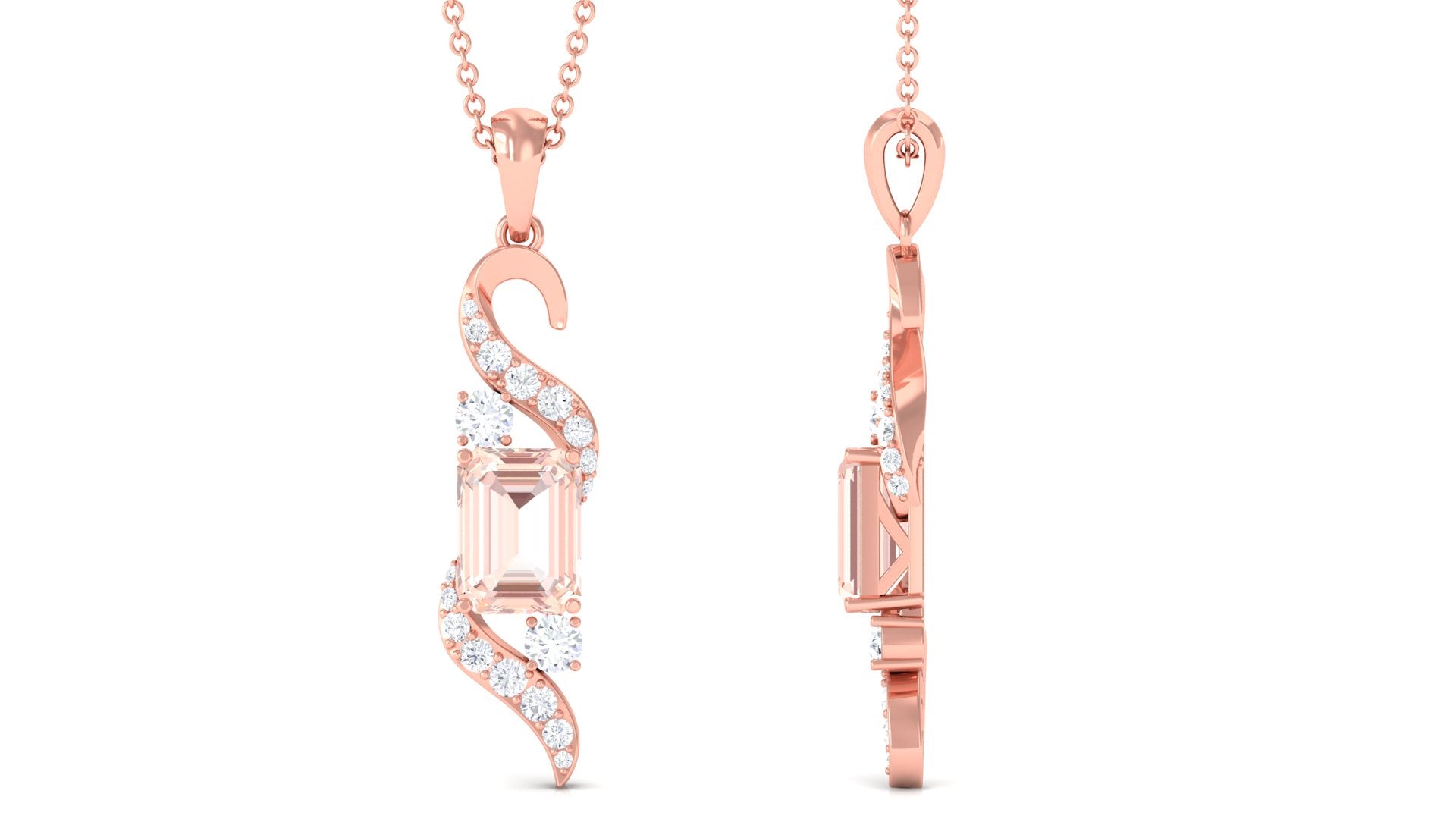 Emerald Cut Morganite and Diamond Drop Pendant Necklace