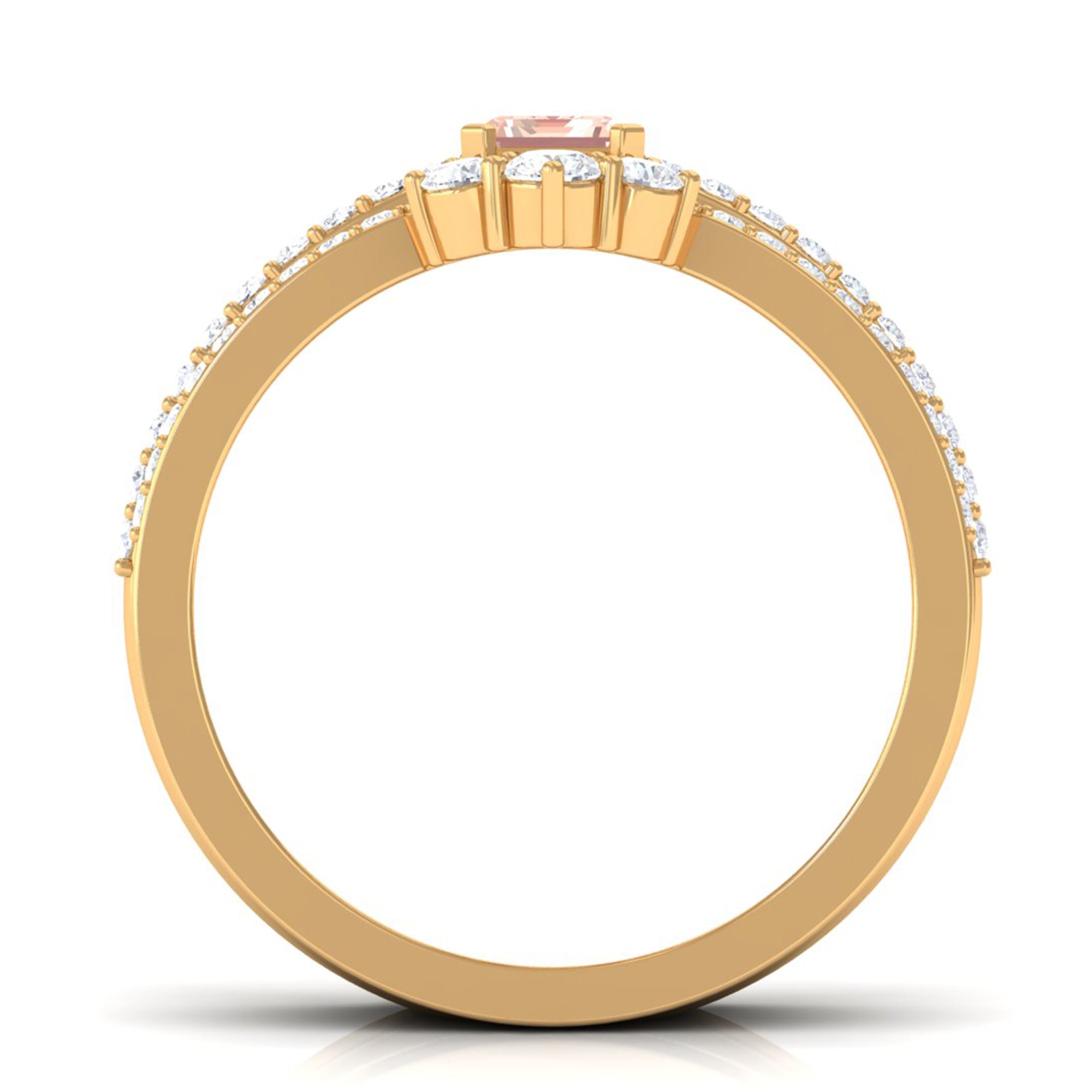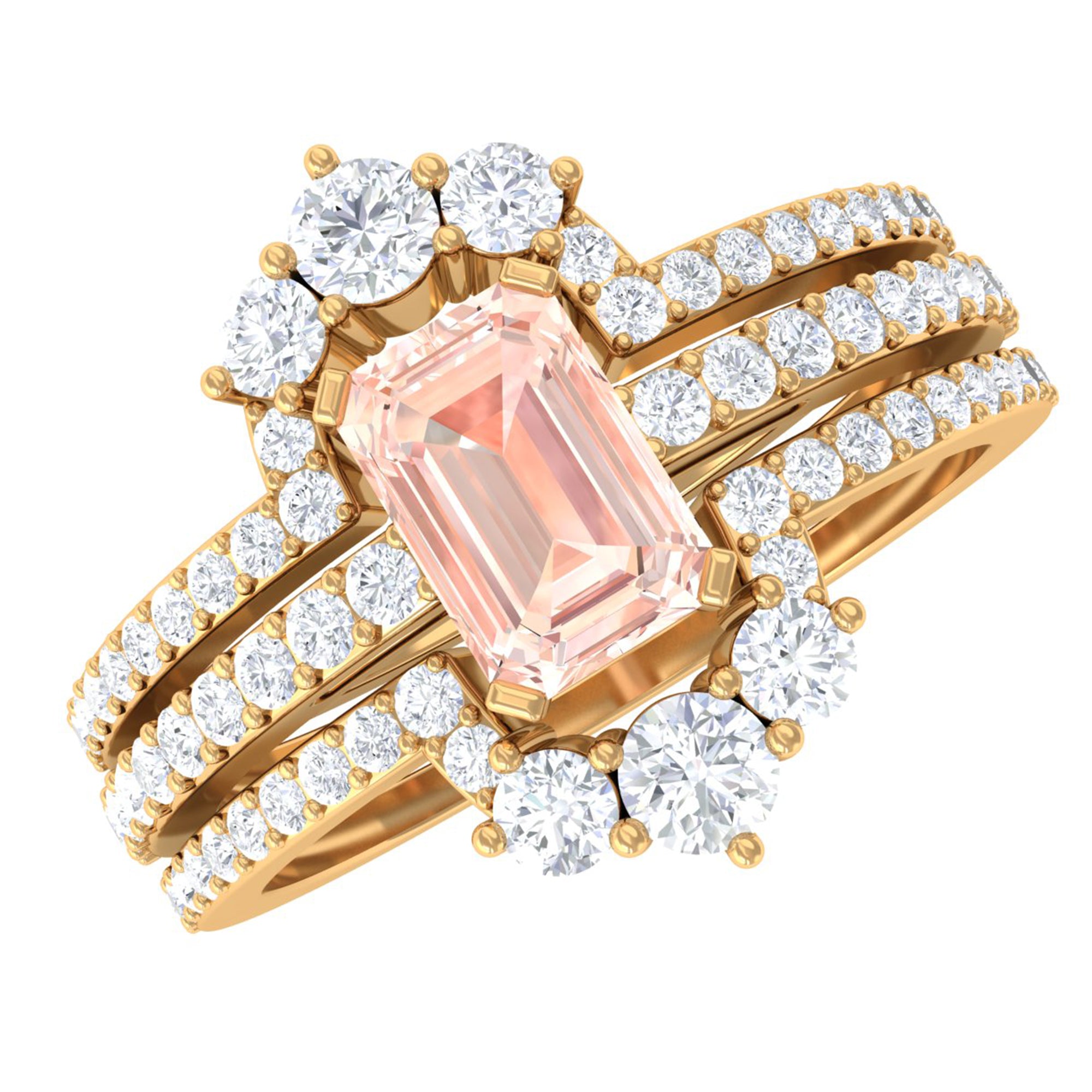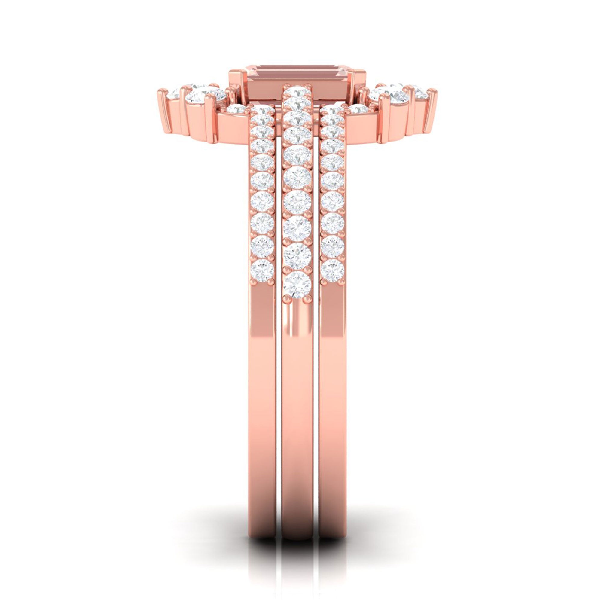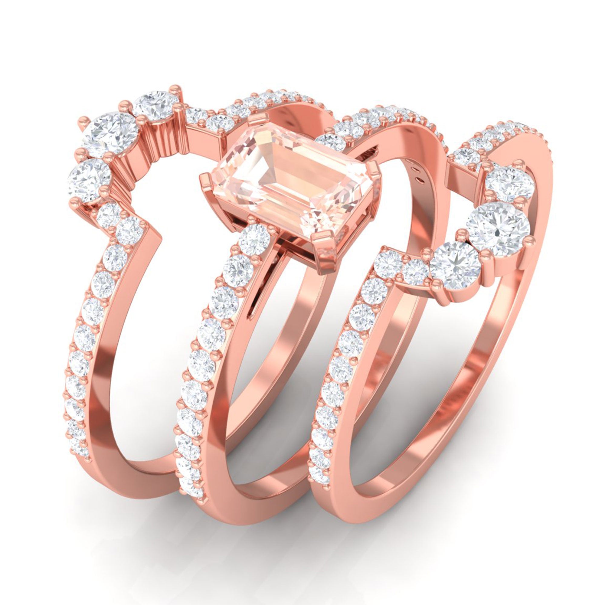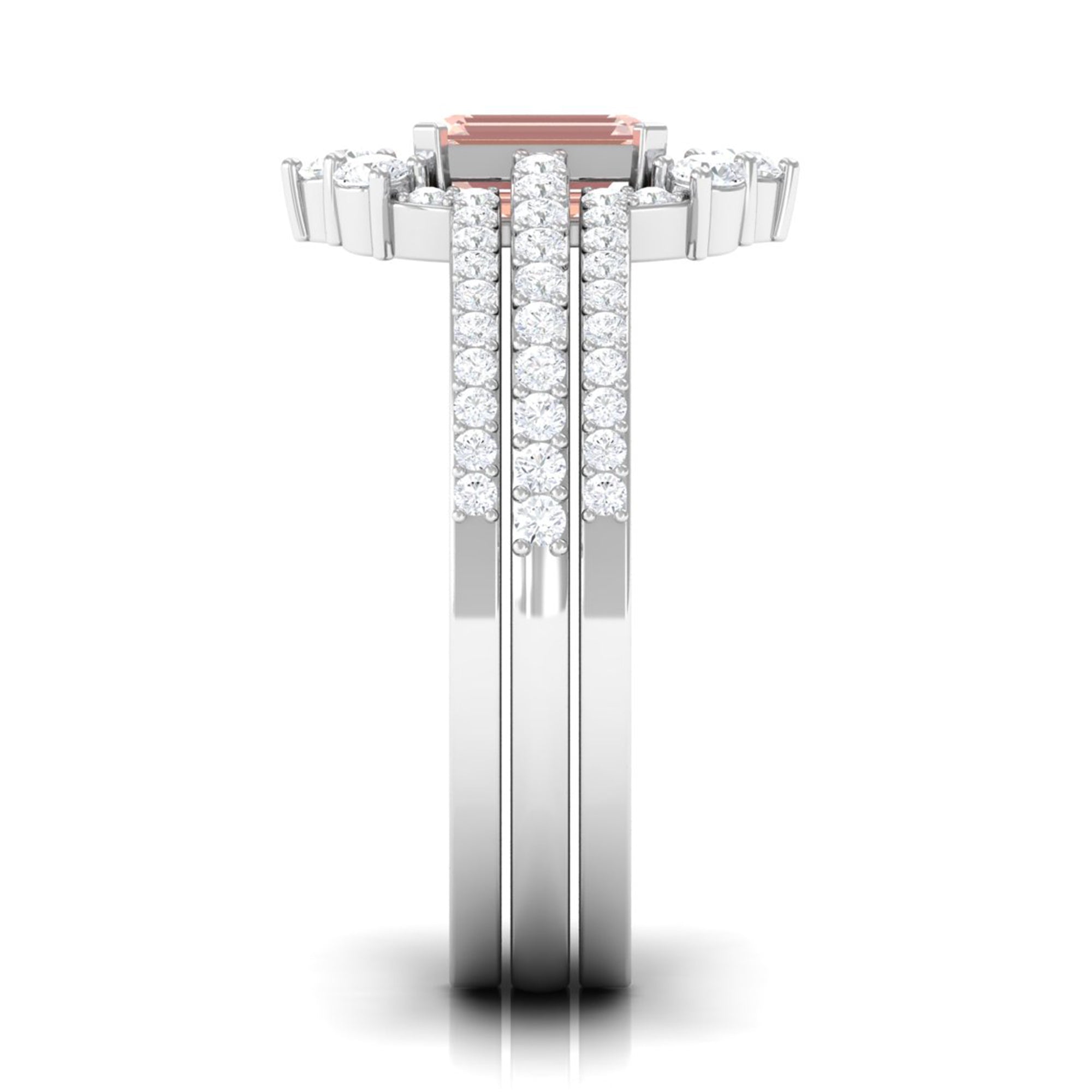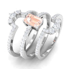 Emerald Cut Morganite Solitaire Trio Ring Set with Diamond