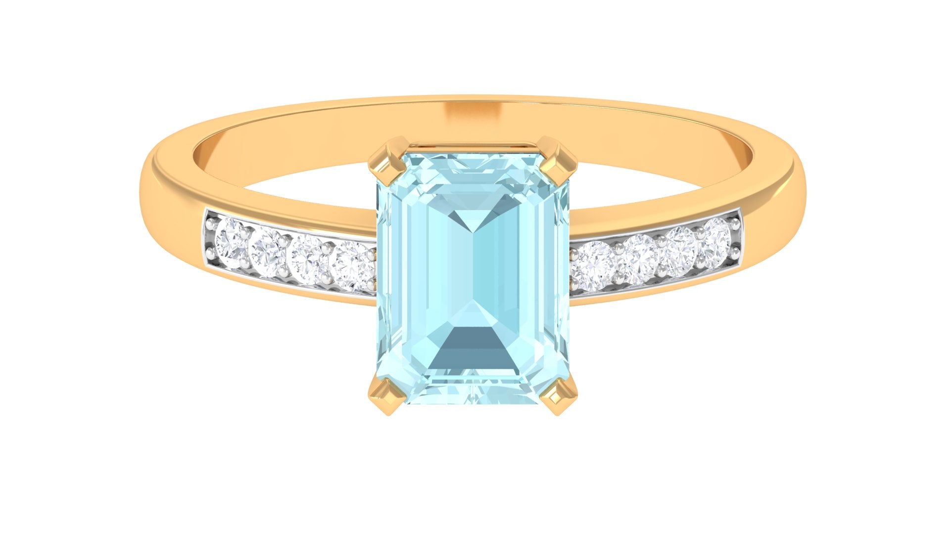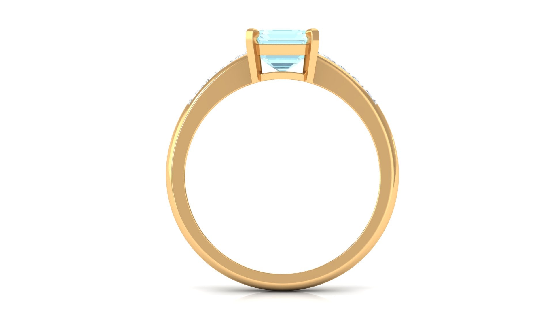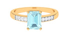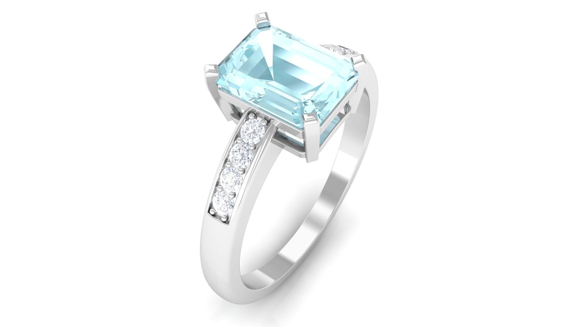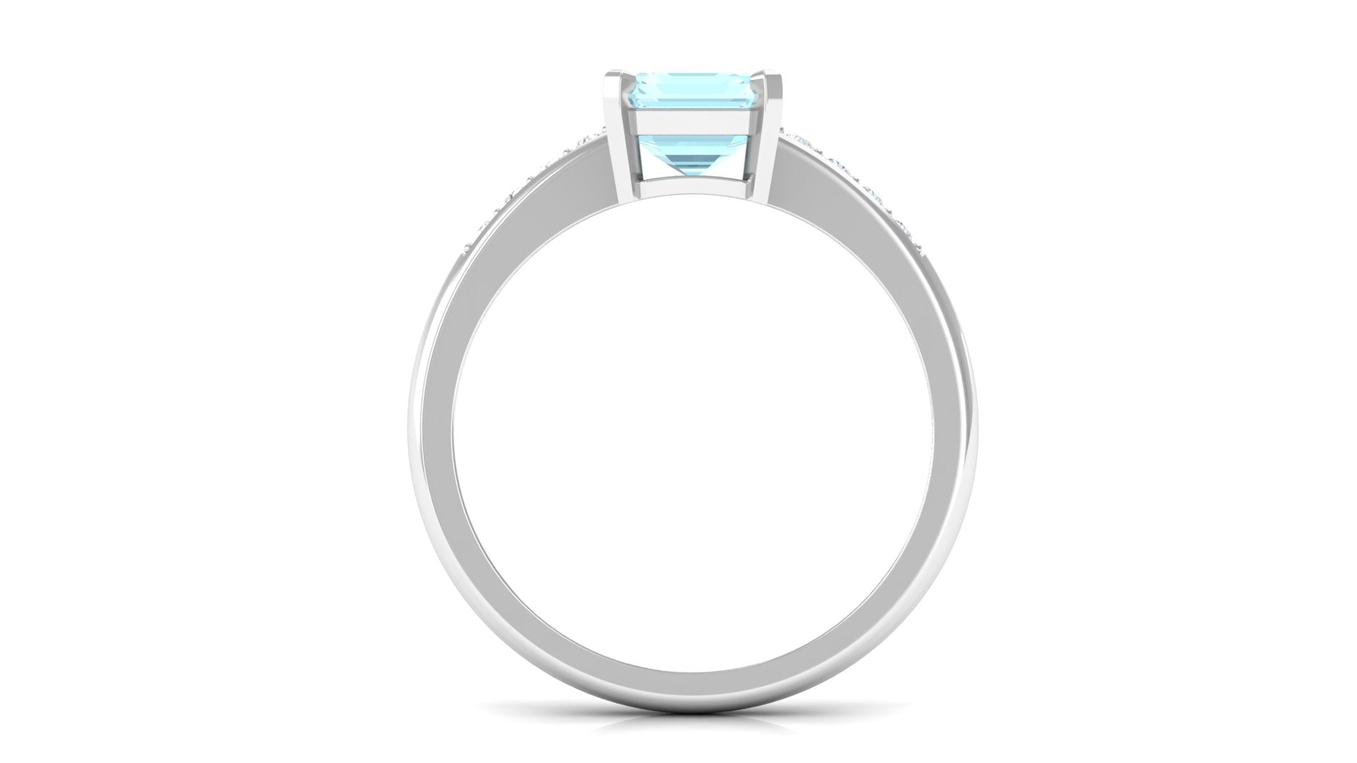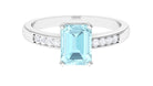 Emerald Cut Shape Sky Blue Topaz Solitaire Engagement Ring with Diamond Side Stones