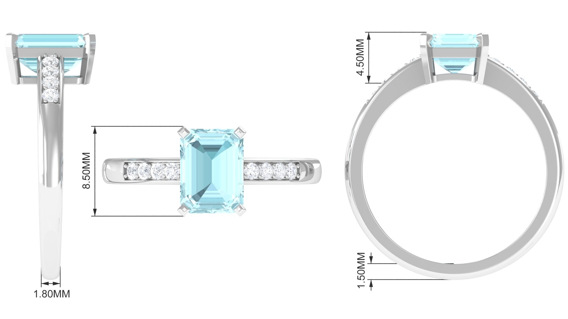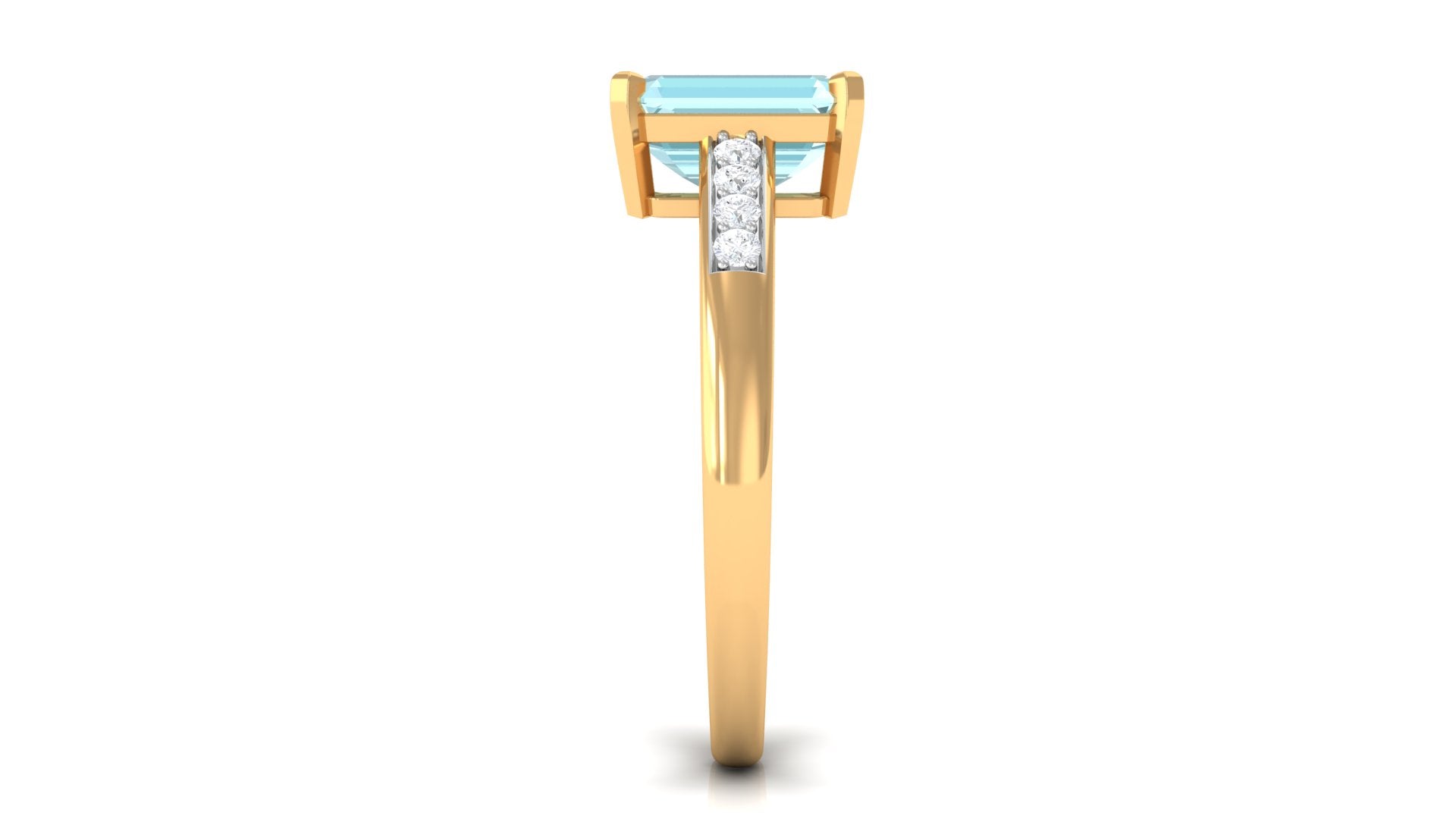 Make a statement with this stunning Sky Blue Topaz Ring. Featuring a 6X8 MM Emerald Cut Shape Sky Blue Topaz in a Prong Setting and Diamond Side Stones on a Solitaire Ring, this piece is sure to turn heads. This Ring can also be the perfect Engagement Ring for your loved one. With a total weight of 2 Carat and AAA Clarity, you can trust that all our certified gemstones undergo rigorous quality checks to ensure their exceptional quality.