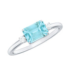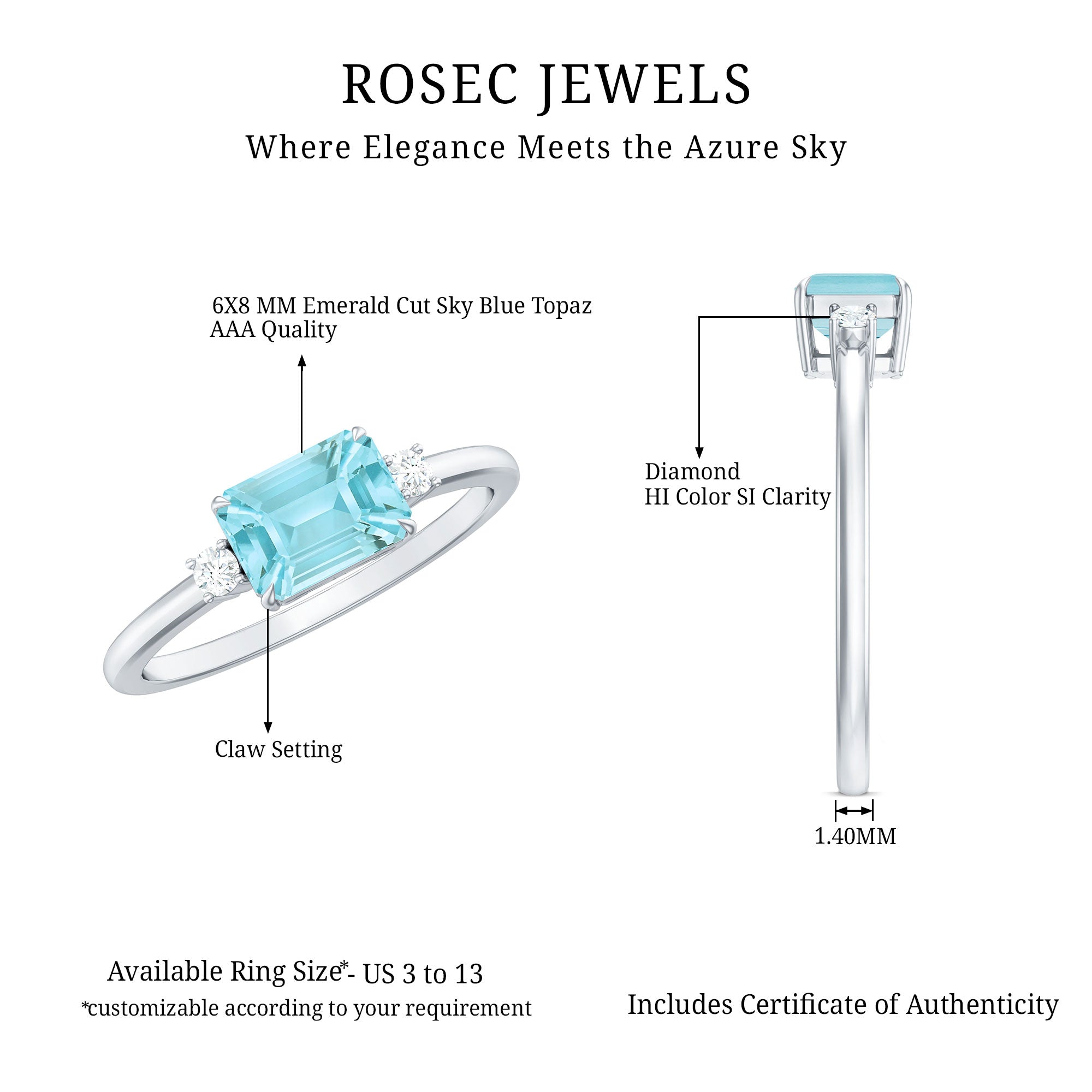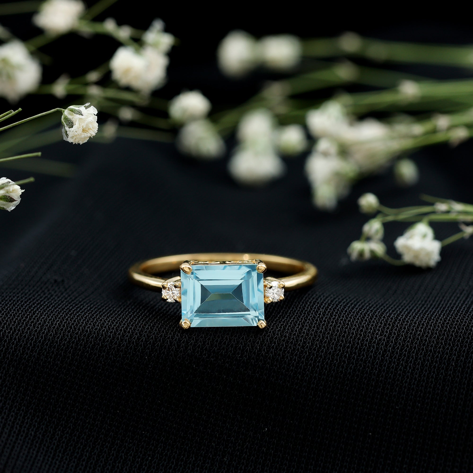 Emerald Cut Sky Blue Topaz East West Engagement Ring with Diamond