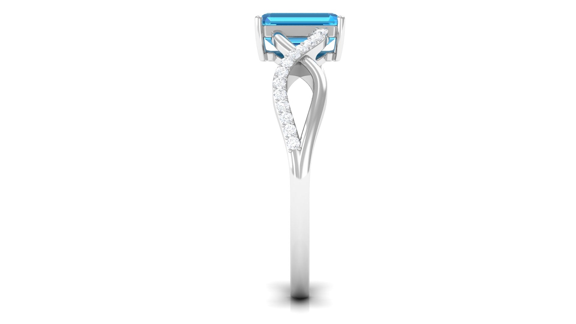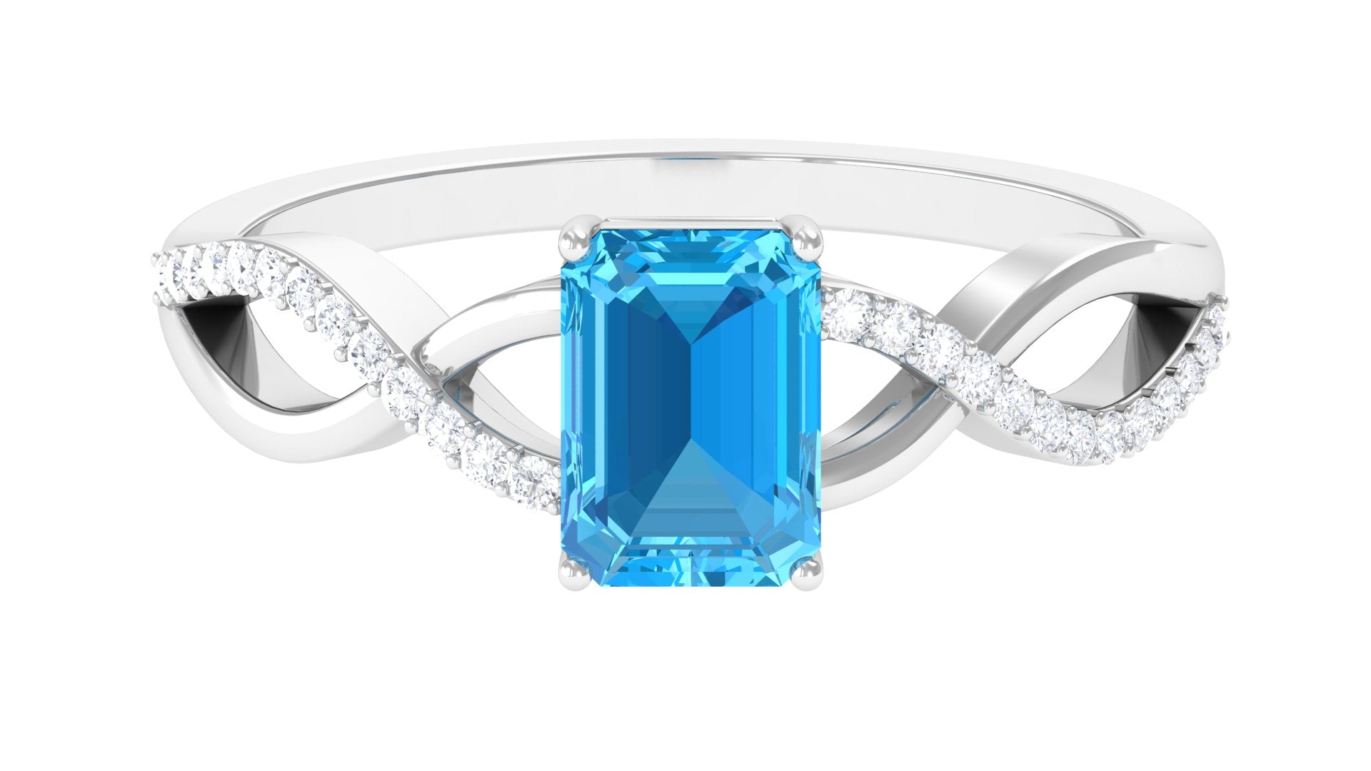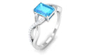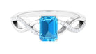 Emerald Cut Swiss Blue Topaz and Diamond Crossover Engagement Ring