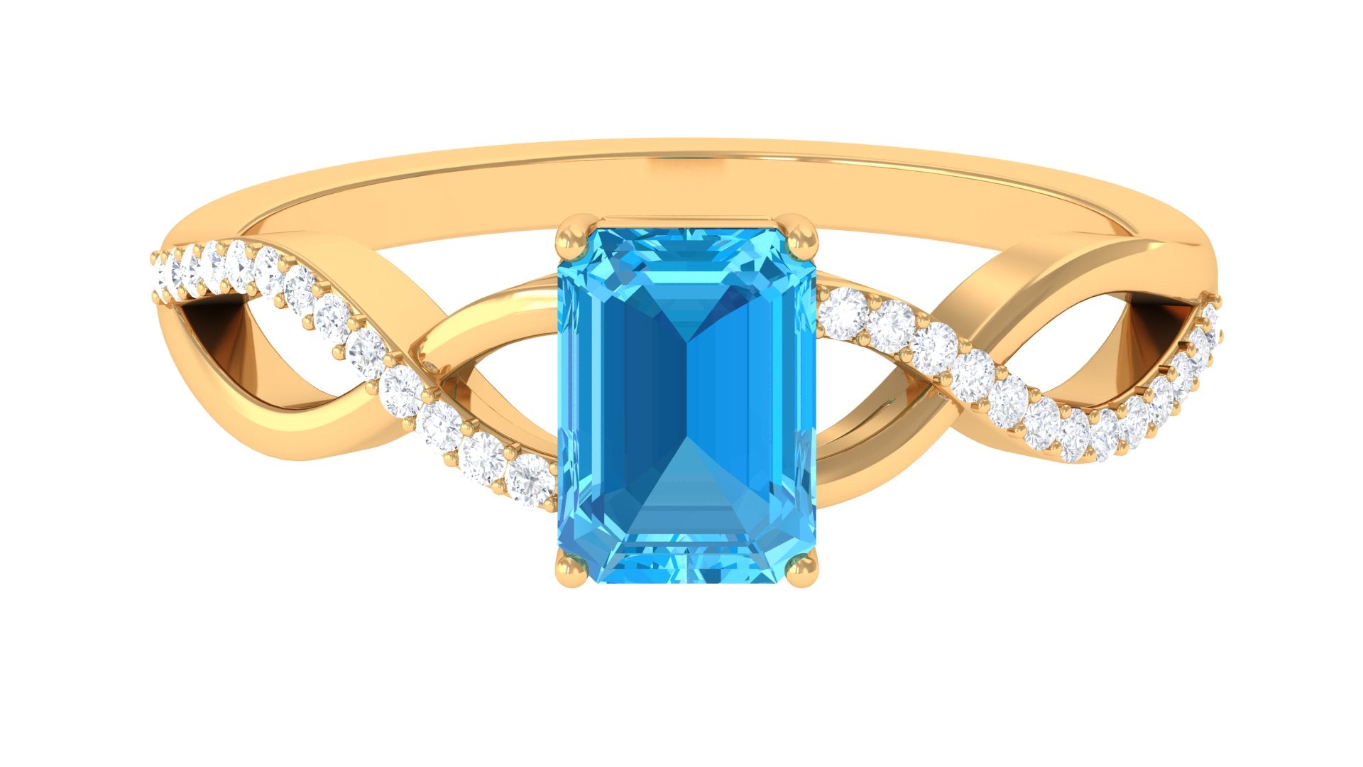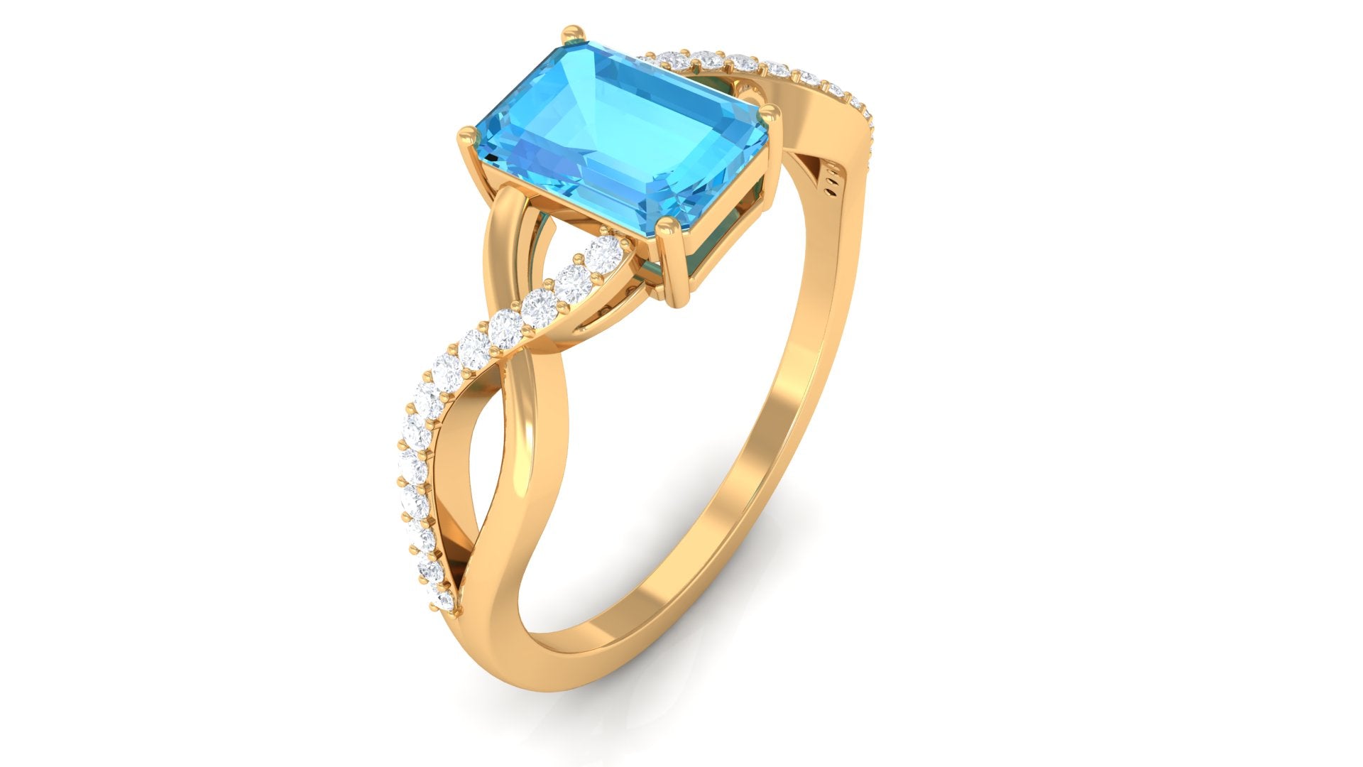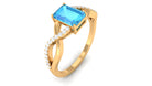 Discover your soul in the form of the perfect Engagement Ring. The Swiss Blue Topaz Engagement Ring has an intricate design of a crossover gold shank, embellished with an Emerald Cut Swiss Blue Topaz in the center as solitaire and Round Diamond accent, creating a romantic look that has a timeless beauty. This Swiss Blue Topaz Ring is crafted in gold for a sumptuous appeal.