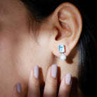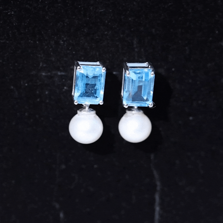 Indulge in the captivating beauty of our Two Stone Drop Earrings. At the top, youll find alluring Emerald Cut Swiss Blue Topaz gemstones, securely nestled in a delicate prong setting. Under, a lustrous Round Freshwater Pearl gracefully hangs, adding a touch of timeless charm. The best part? These exquisite earrings are fully customizable with a range of metal options, allowing you to craft a pair thats as unique as you are.