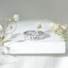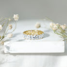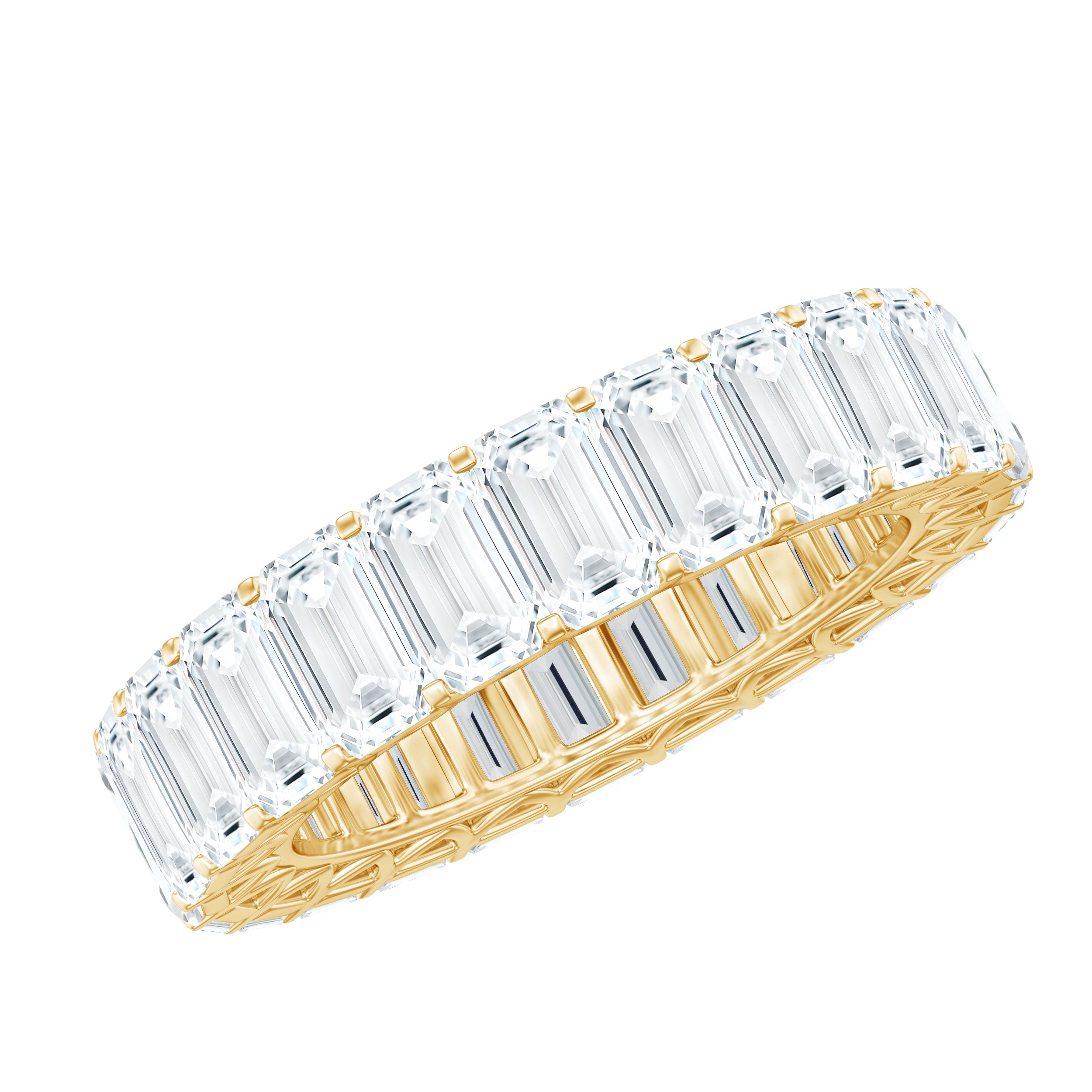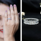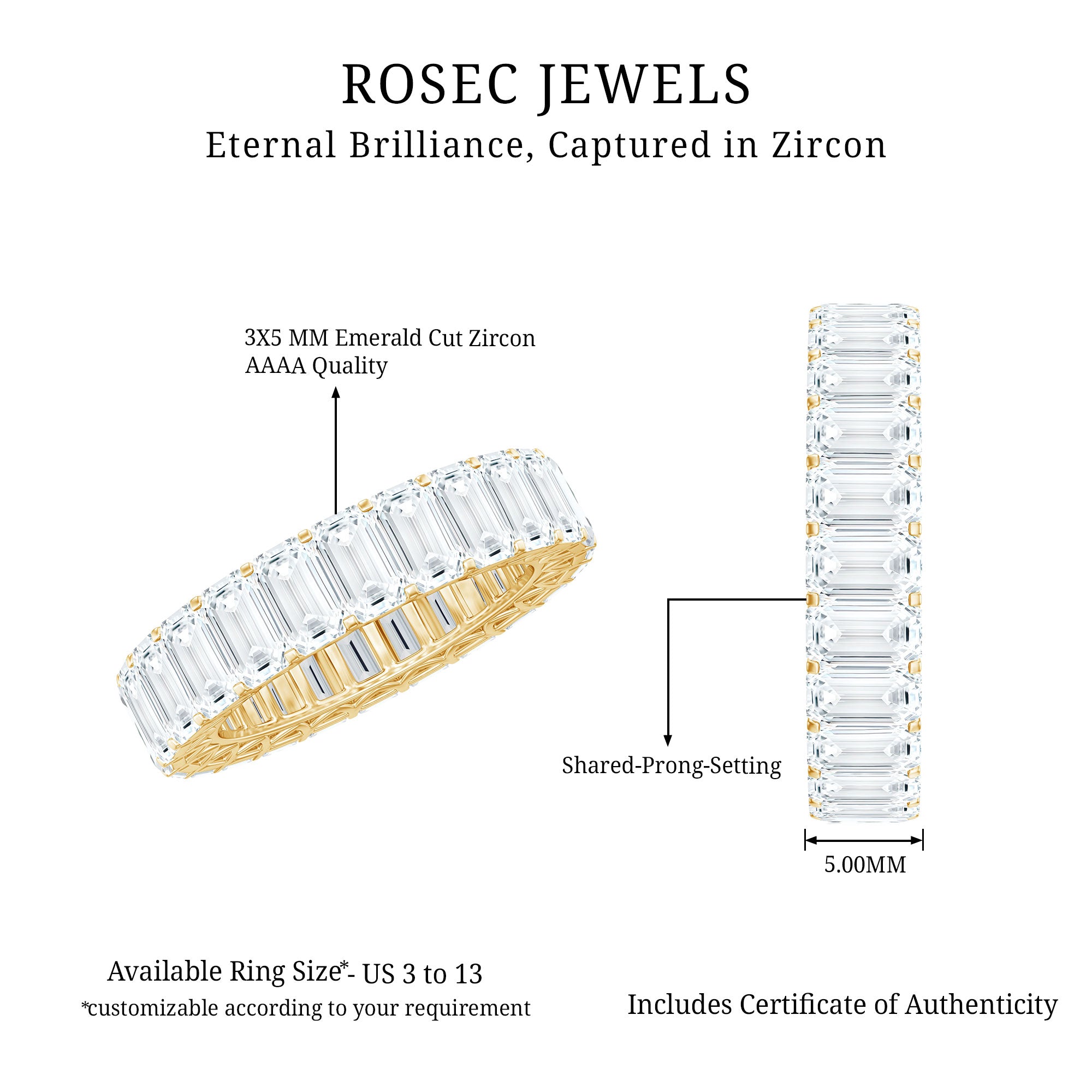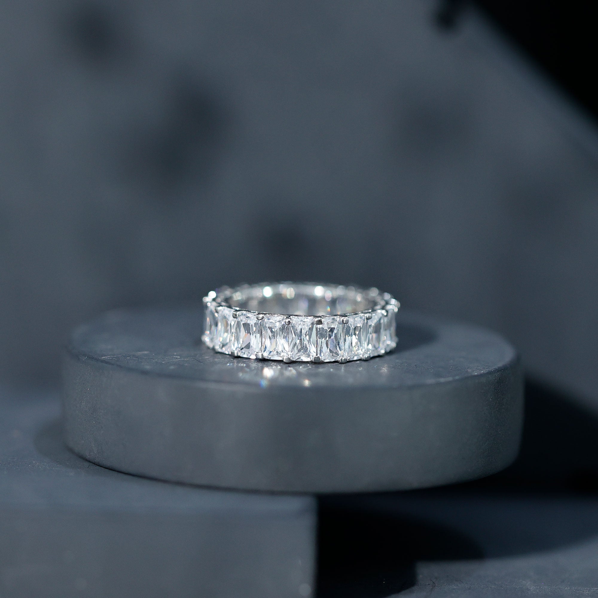 Make a statement when you flaunt this Iconic Zircon Band Ring, a true gem that exudes elegance and sparkle. The mesmerizing Emerald Cut Zircon stones, delicately cradled in Shared Prong Setting, enhance the allure of this exquisite piece. Whether youre seeking to elevate your own style or surprise a loved one, this alluring and finely crafted eternity band ring will undoubtedly leave a lasting impression, symbolizing the depth of your affection and appreciation.
