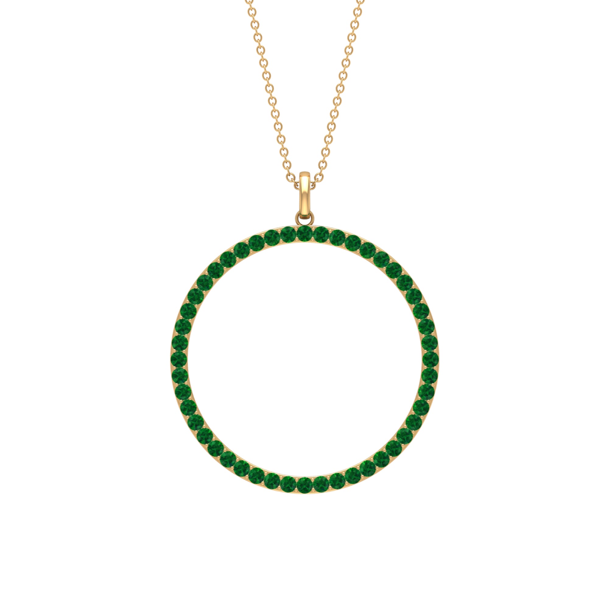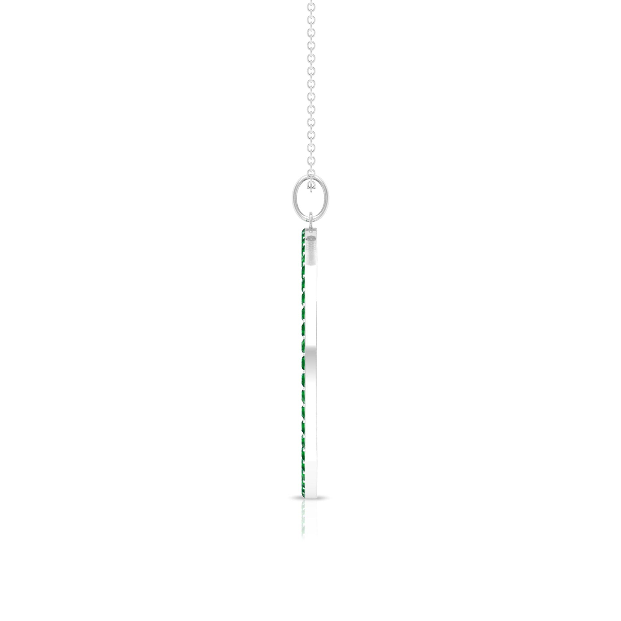 Indulge in the eternal beauty of our Eternity Pendant, adorned with lustrous Round Shape Emerald Gemstones meticulously set in a dazzling Pave Setting.