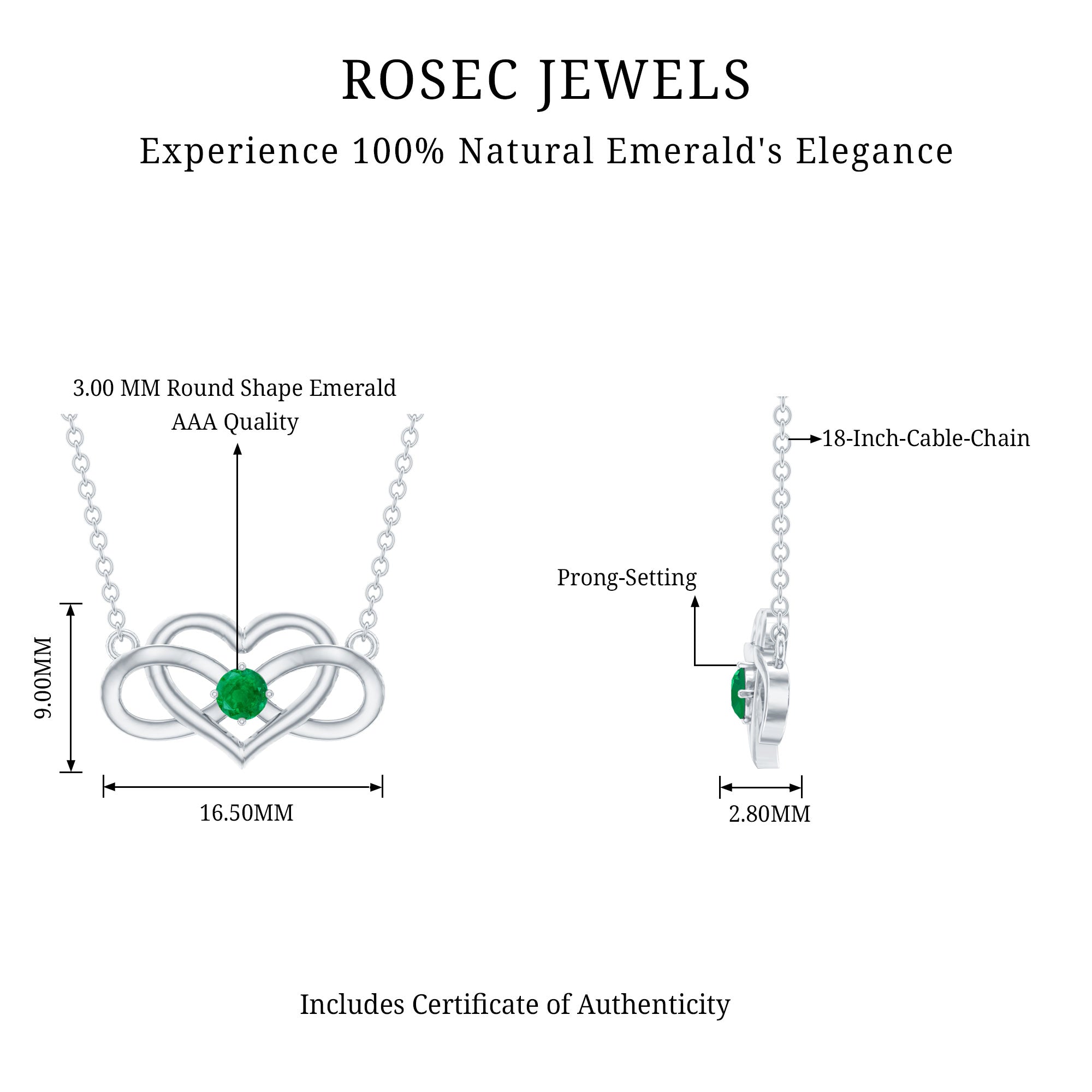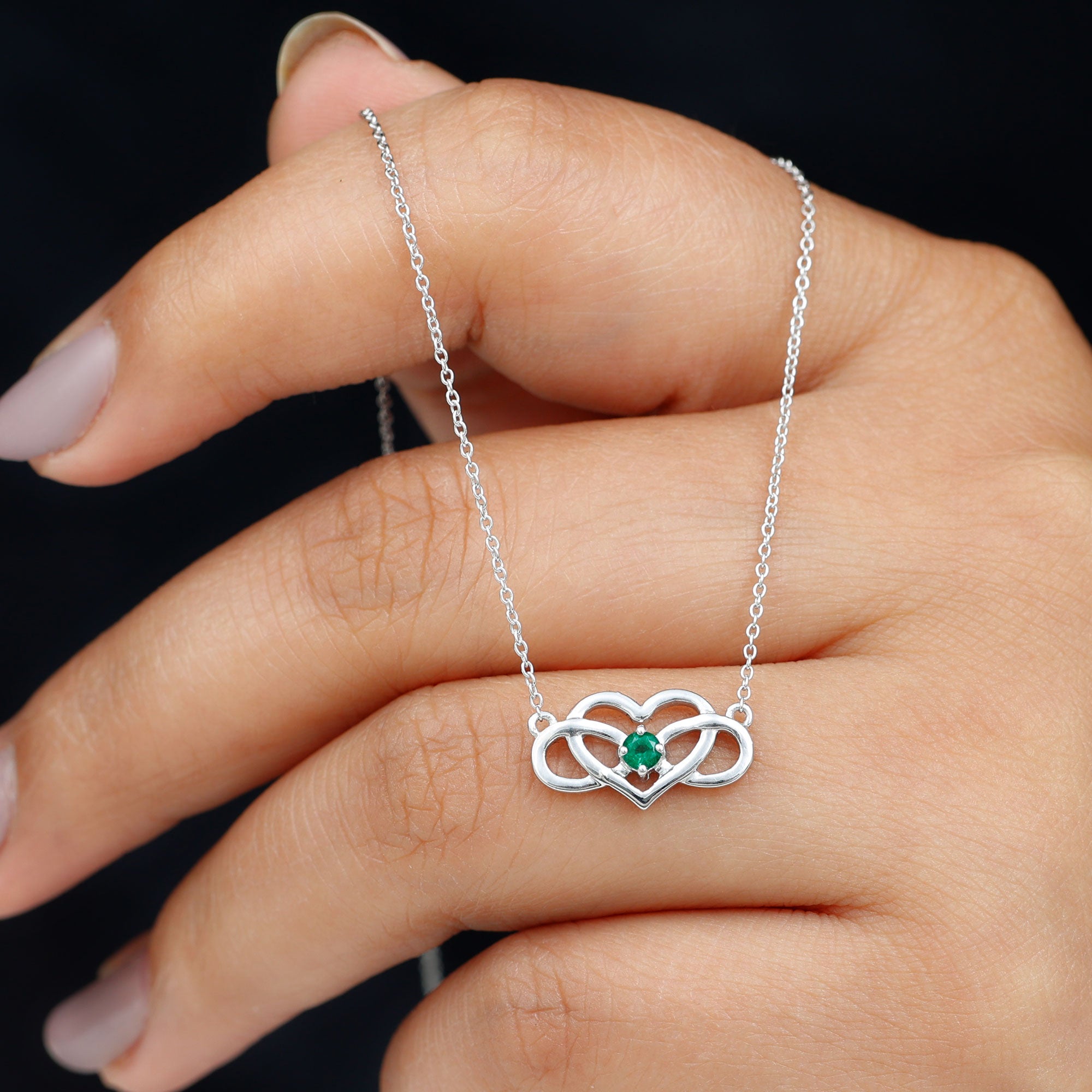 Emerald Heart and Infinity Chain Necklace for Women