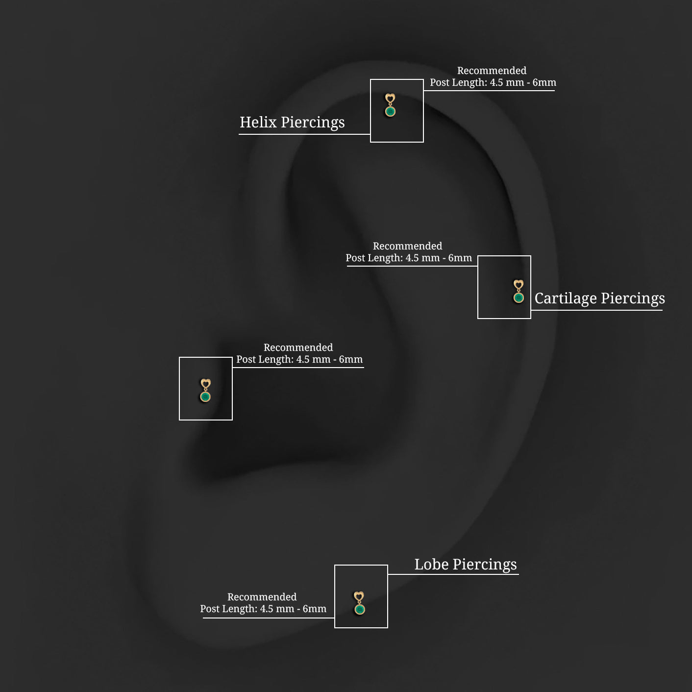 Emerald Heart Drop Earring for Tragus Piercing
