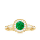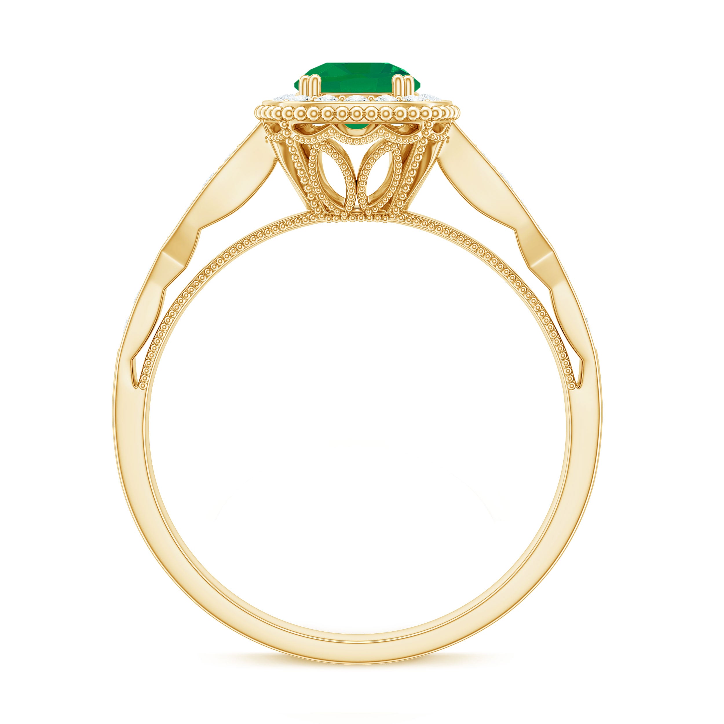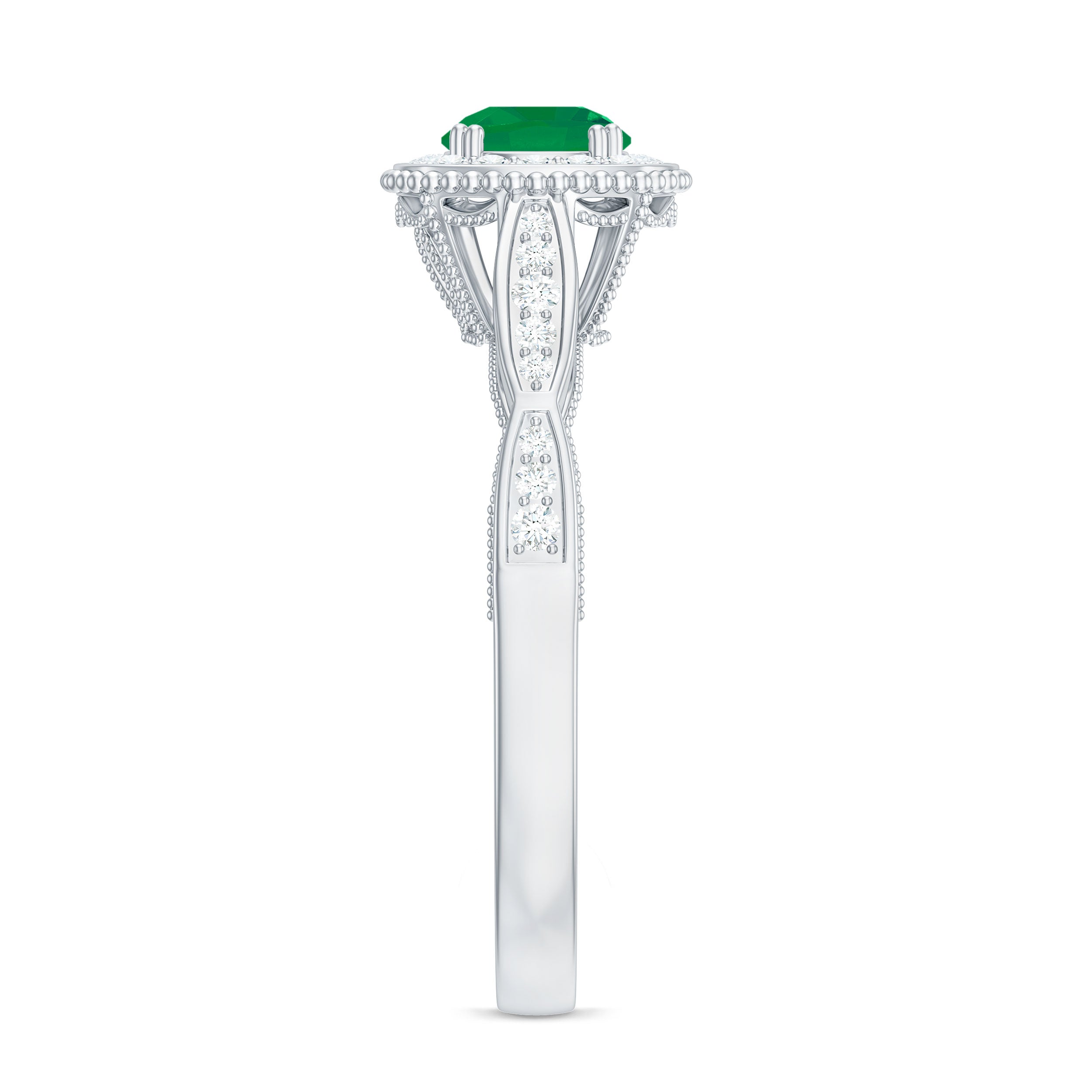 Emerald Vintage Looking Engagement Ring with Diamond Halo