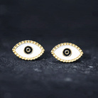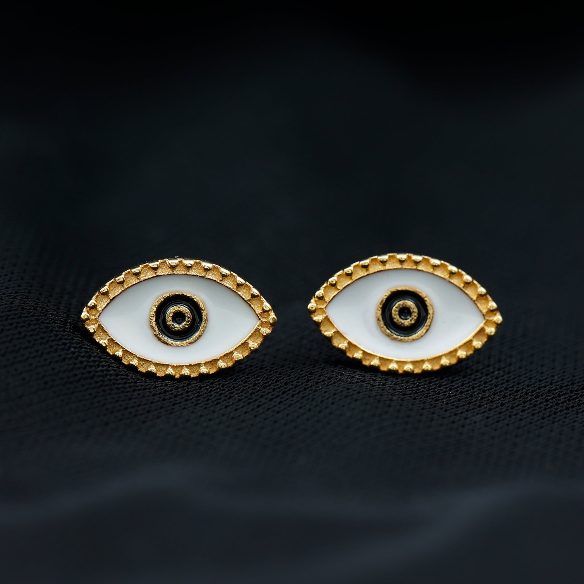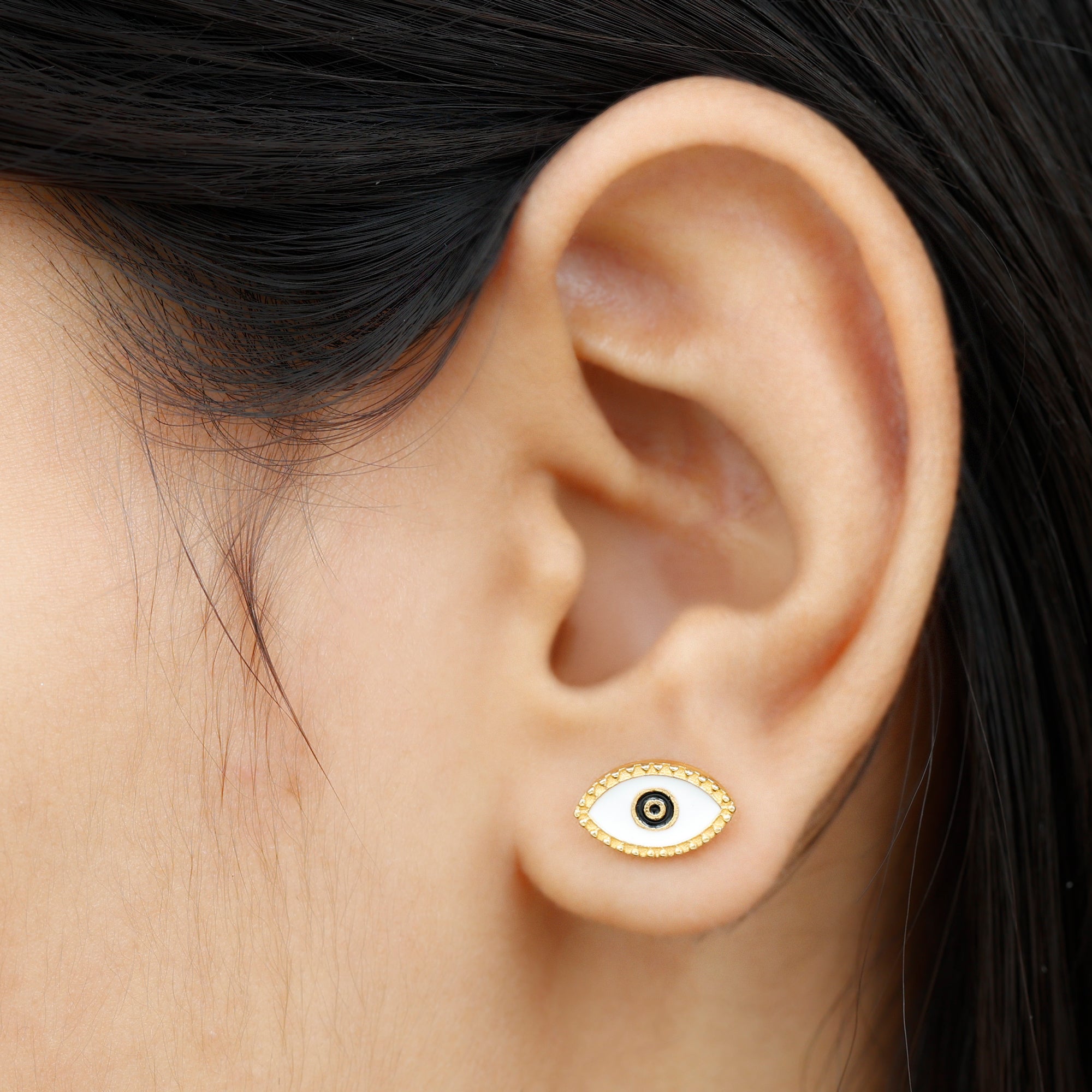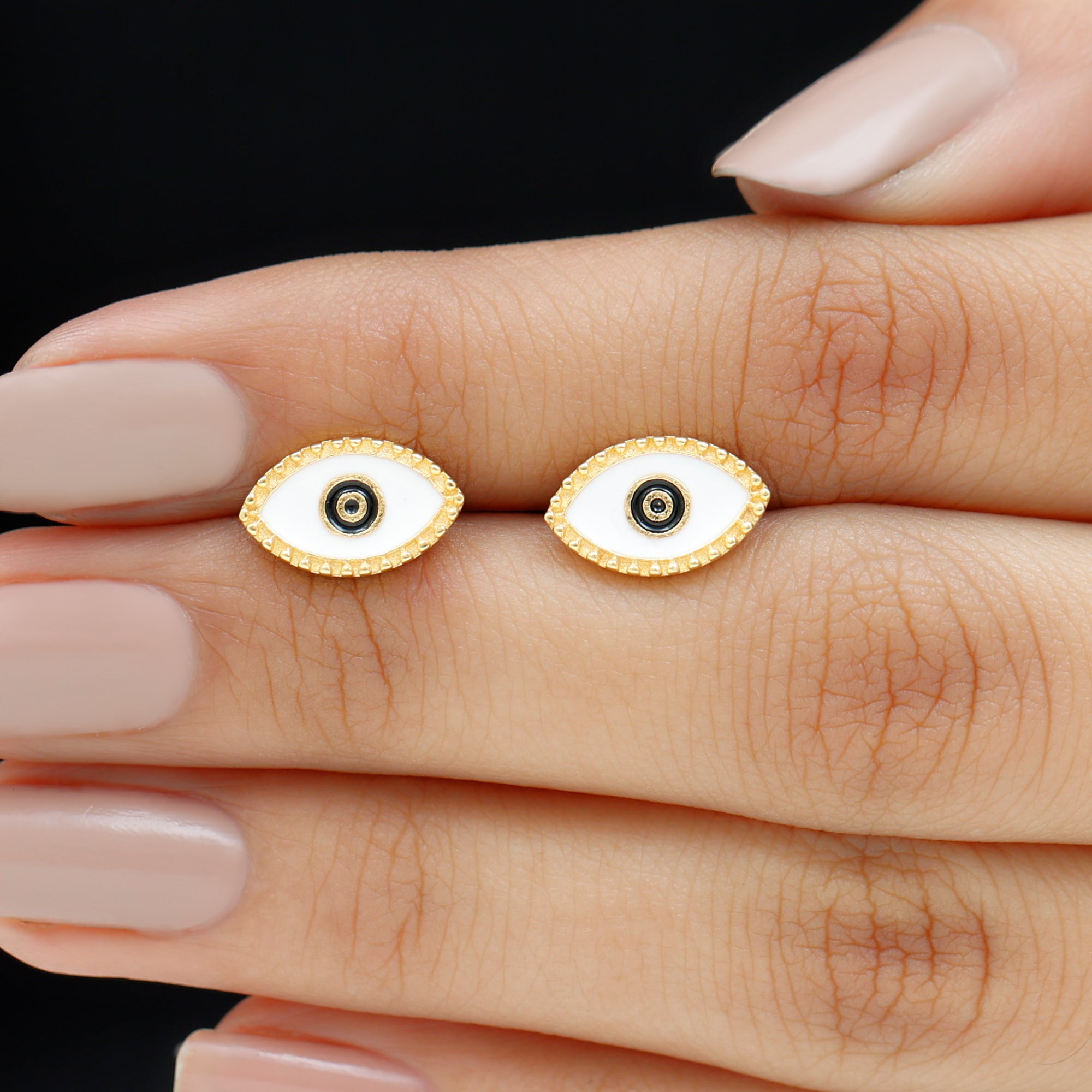 Enamel Evil Eye Gold Stud Earrings with Milgrains