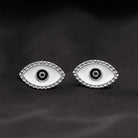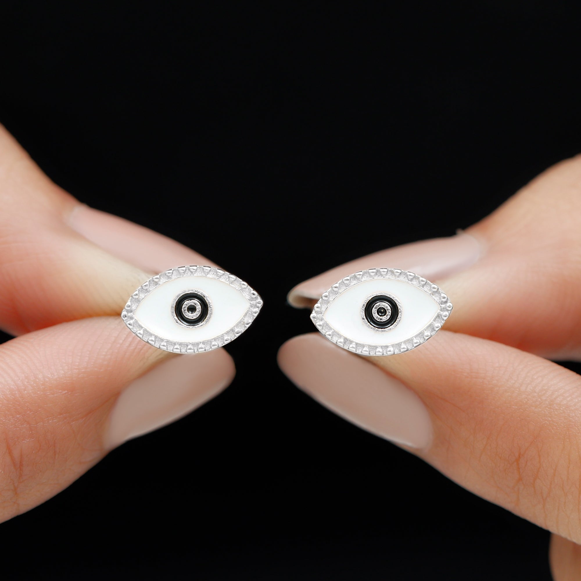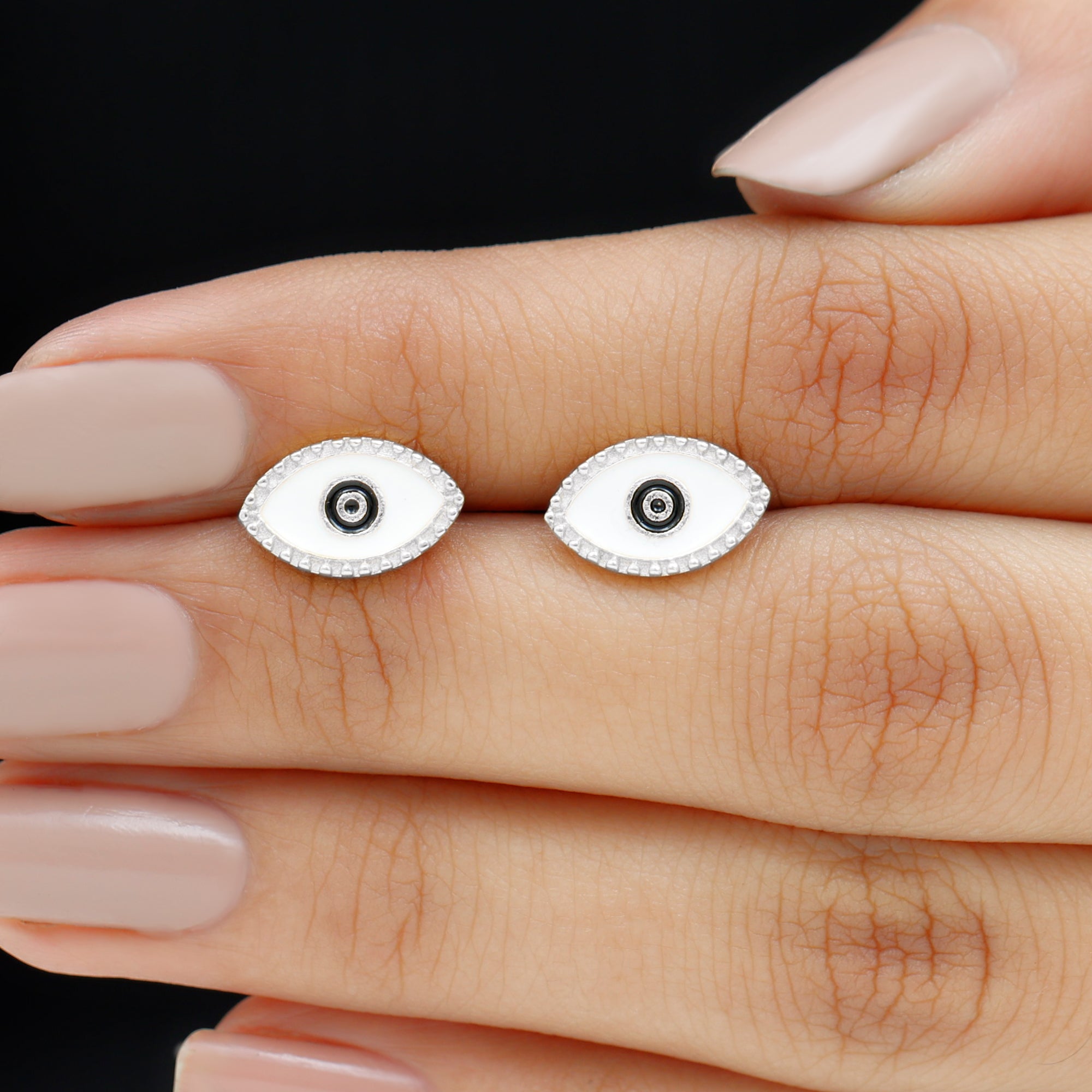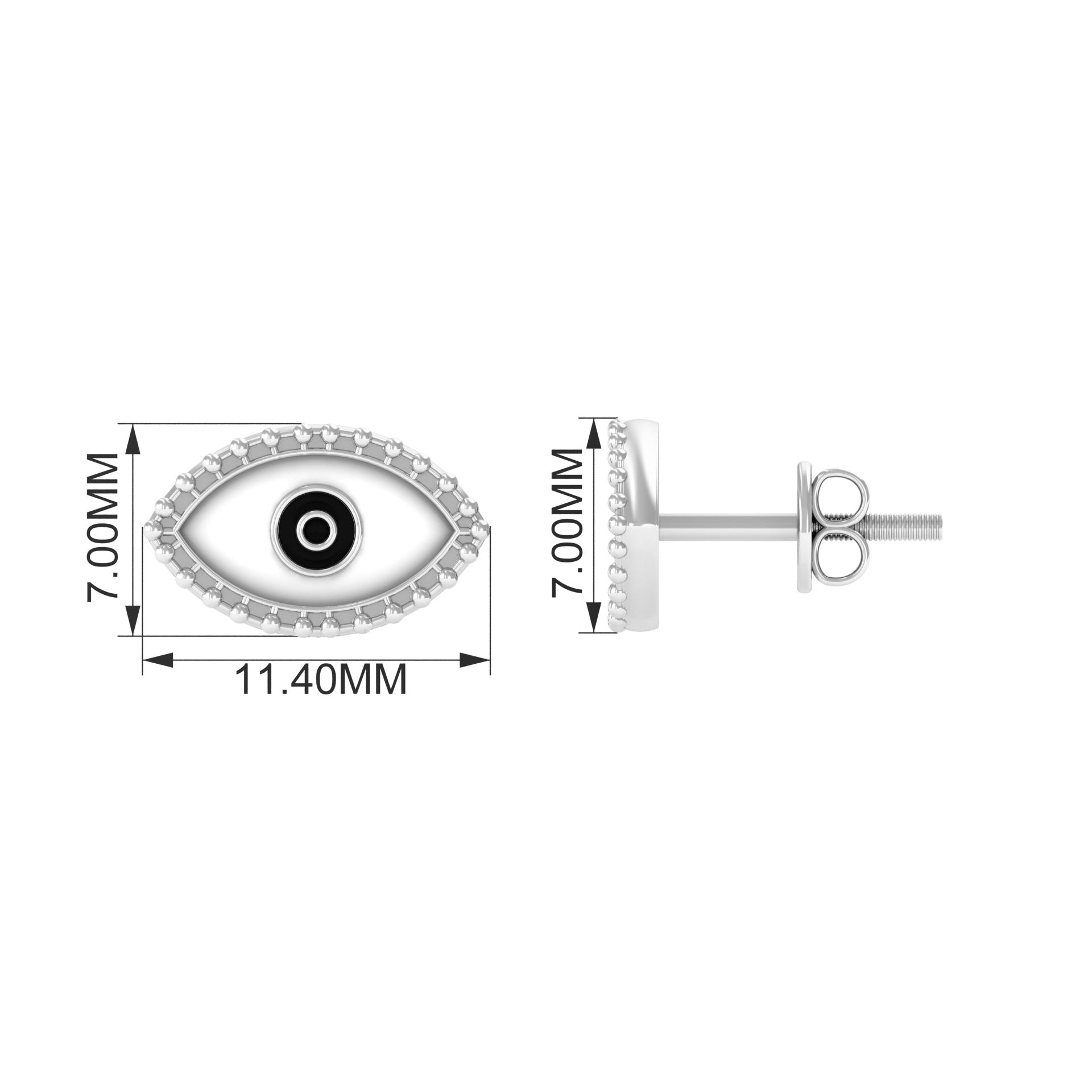 Enamel Evil Eye Gold Stud Earrings with Milgrains
