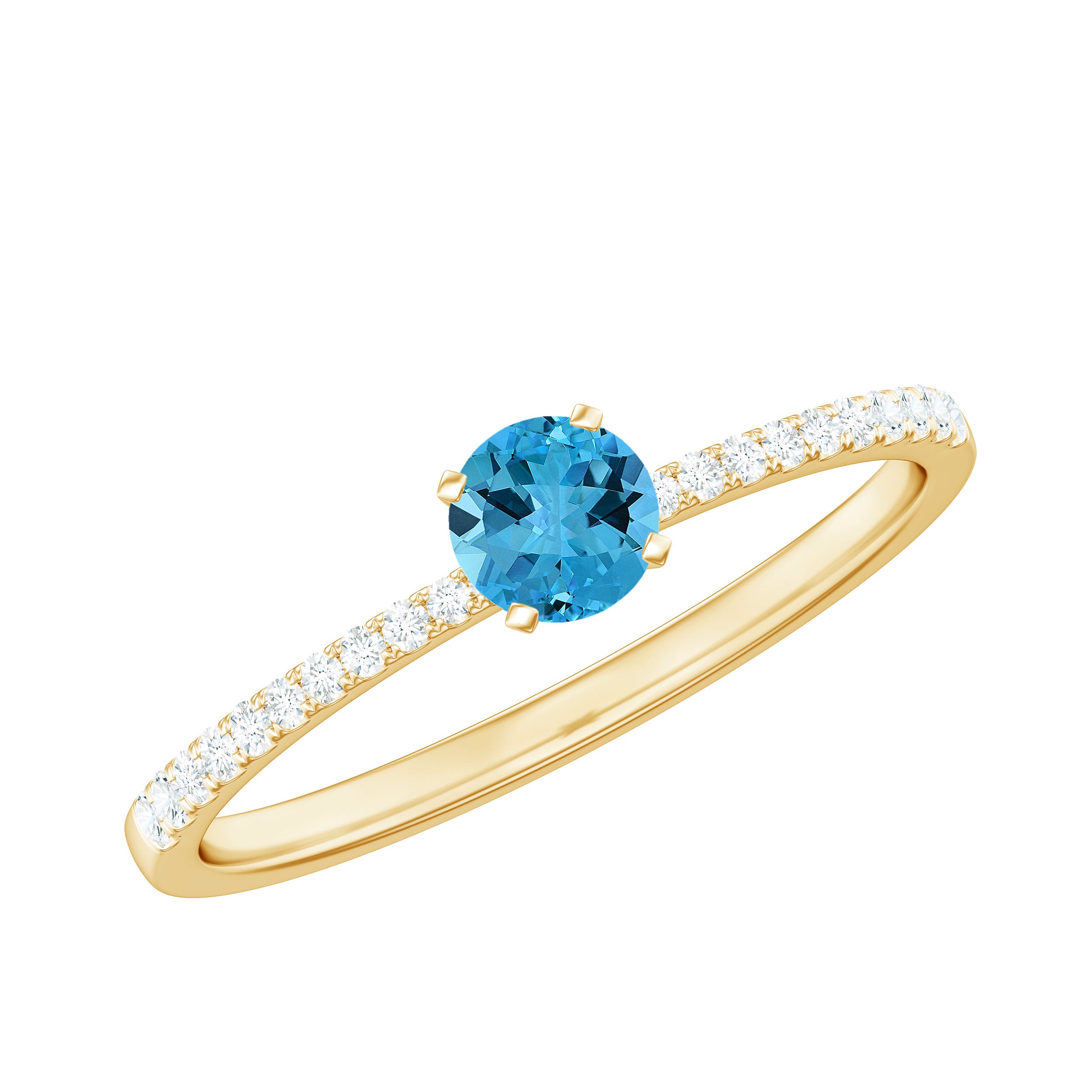 Engagement Ring with Swiss Blue Topaz Solitaire and Diamond